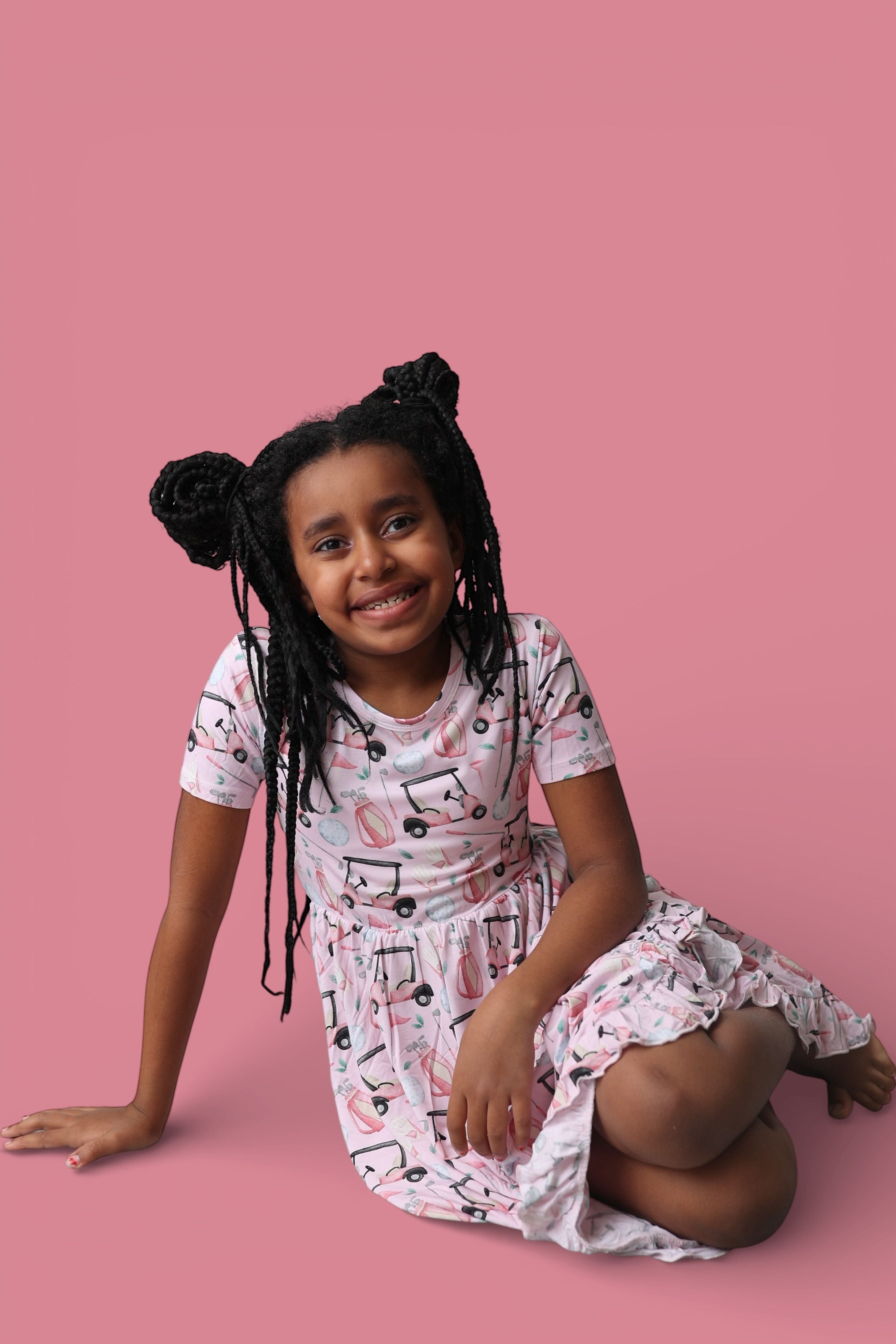 The Pretty and Par Dream Ruffle Dress adds playful charm to everyday wear with its adorable golf-inspired print and sweet ruffle details. Crafted from our signature buttery-soft bamboo fabric, this dress is breathable, gentle, and comfy enough for all-day play—while still being cute enough for special moments.