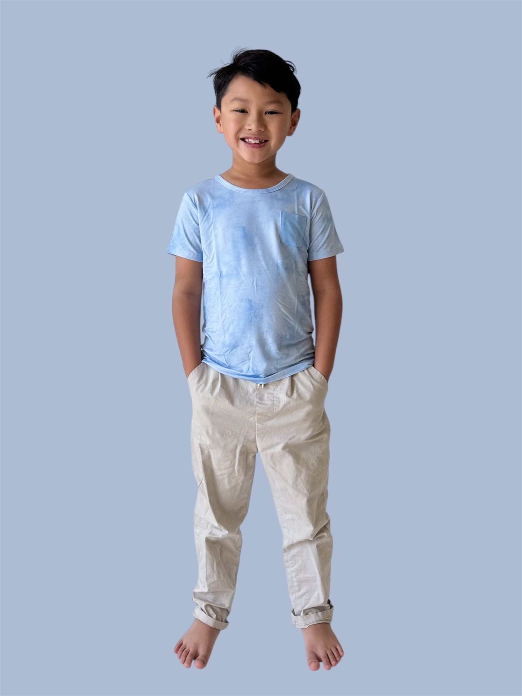 The Blue Haze Dream Pocket Tee is a timeless staple designed for effortless comfort and easy styling. Featuring a clean, solid blue haze hue and a classic chest pocket, this tee is made from our signature buttery-soft bamboo fabric for a breathable, gentle feel that’s perfect for all-day adventures.