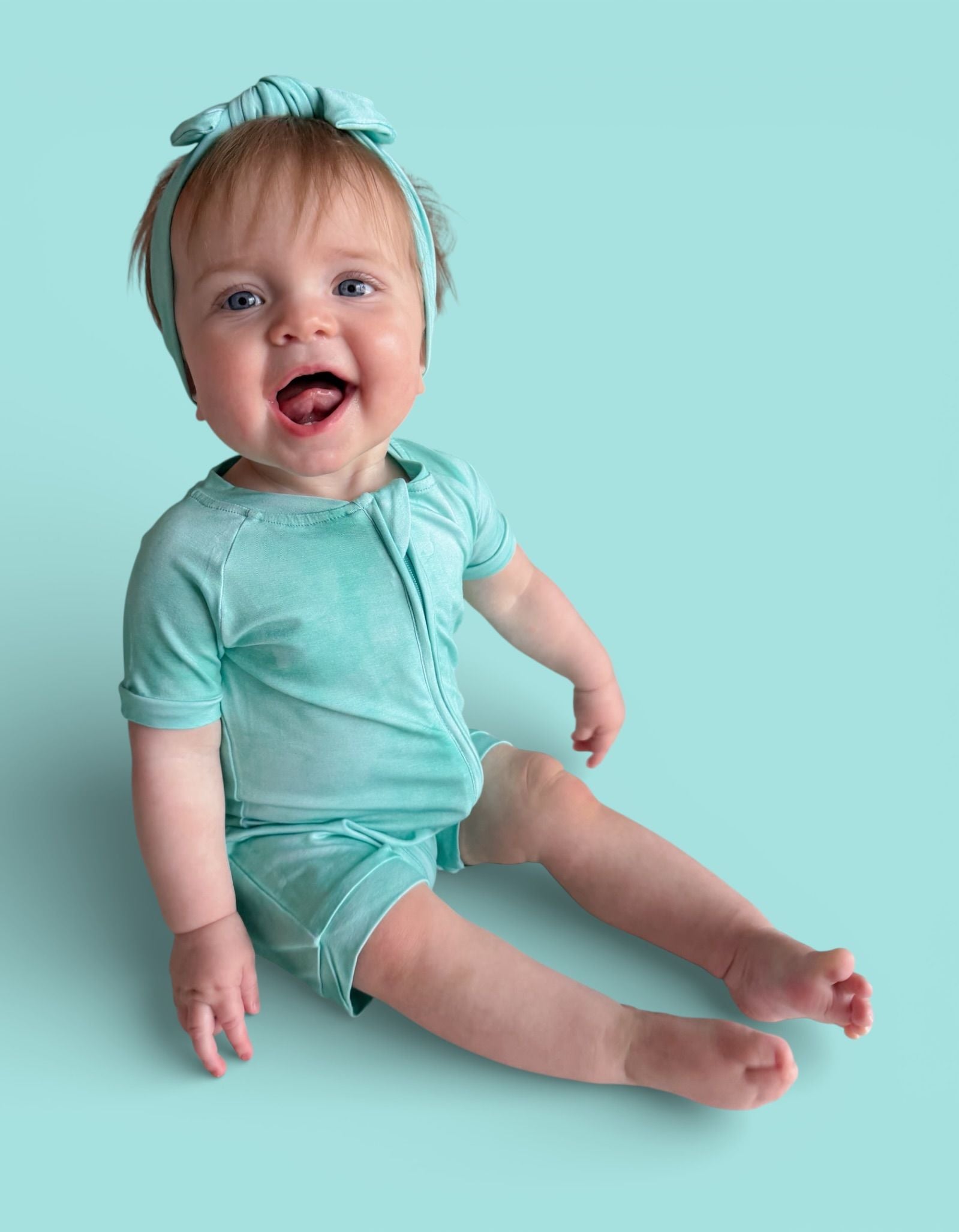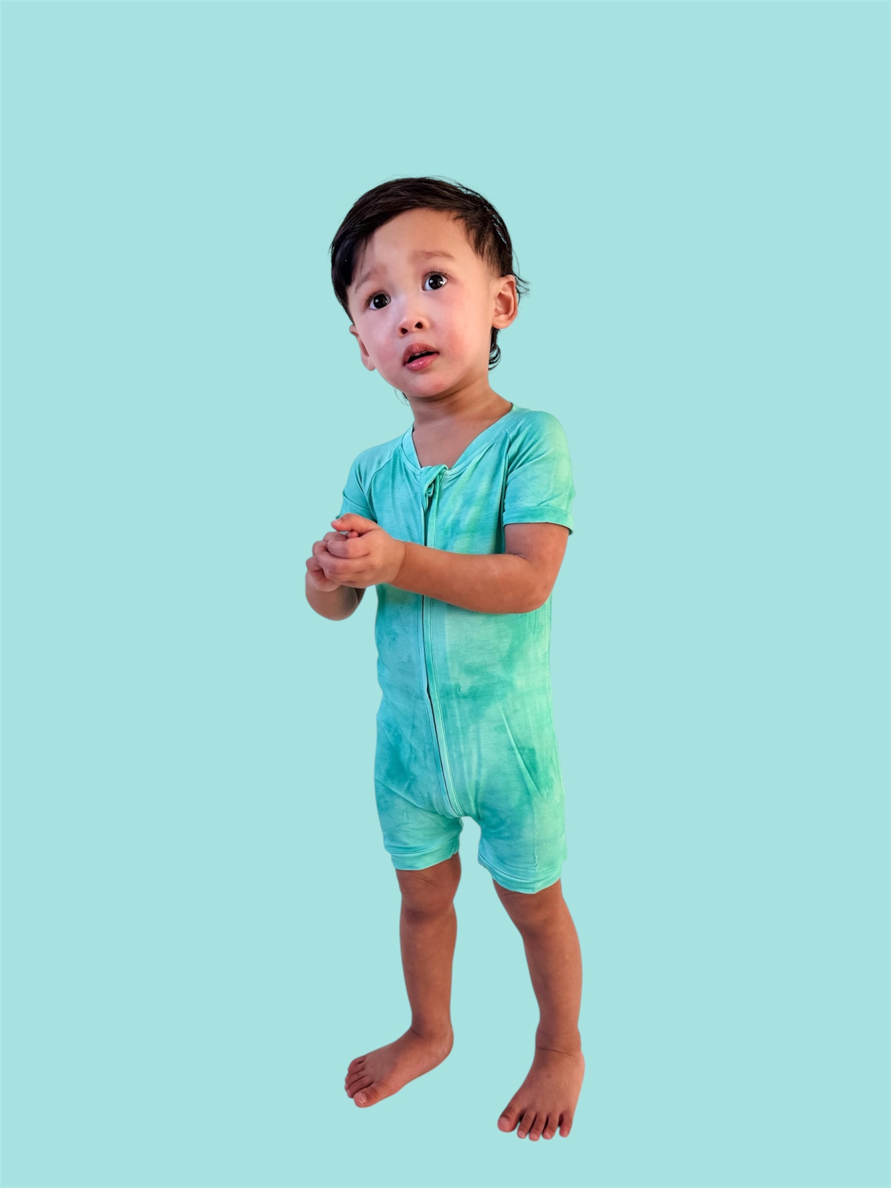 The Jade Mist Dream Shortie is a warm-weather must-have designed for easy movement and cozy comfort. With its soft jade mist tone and breathable bamboo fabric, this one-piece keeps little ones cool, comfy, and cute from playtime through bedtime.