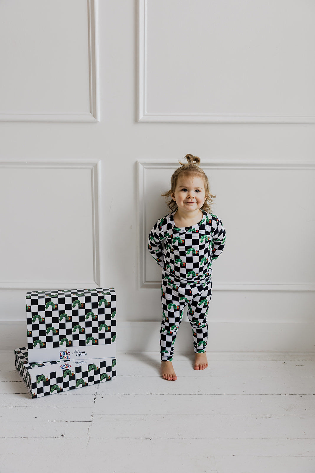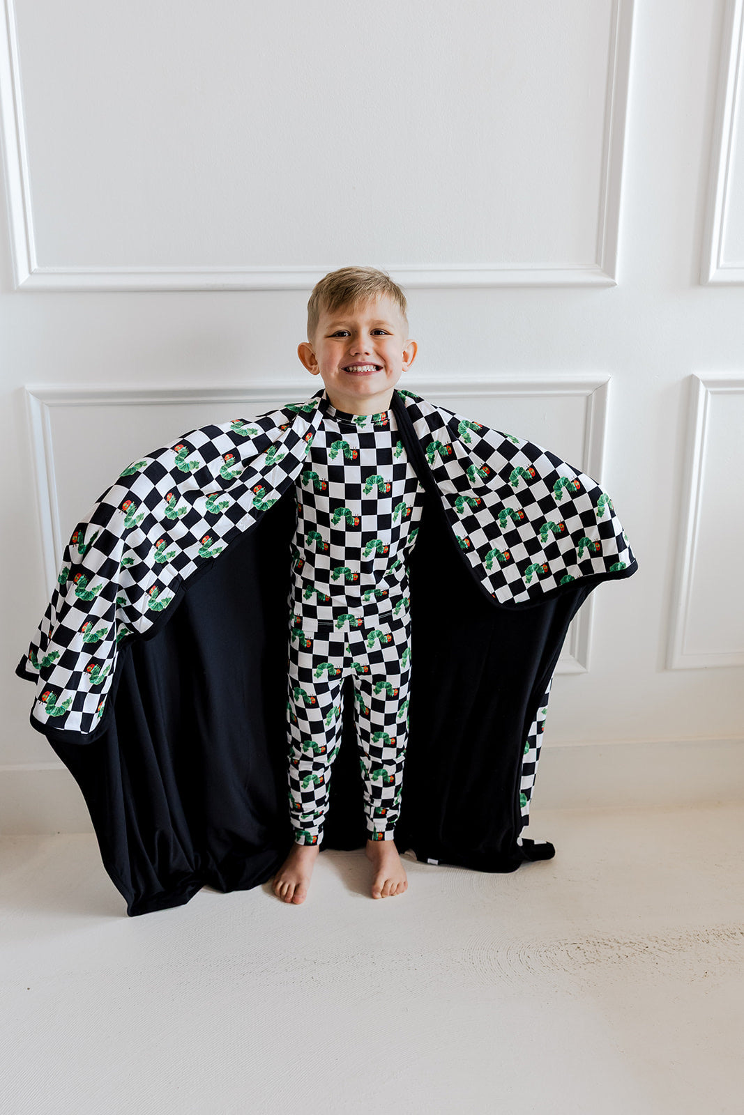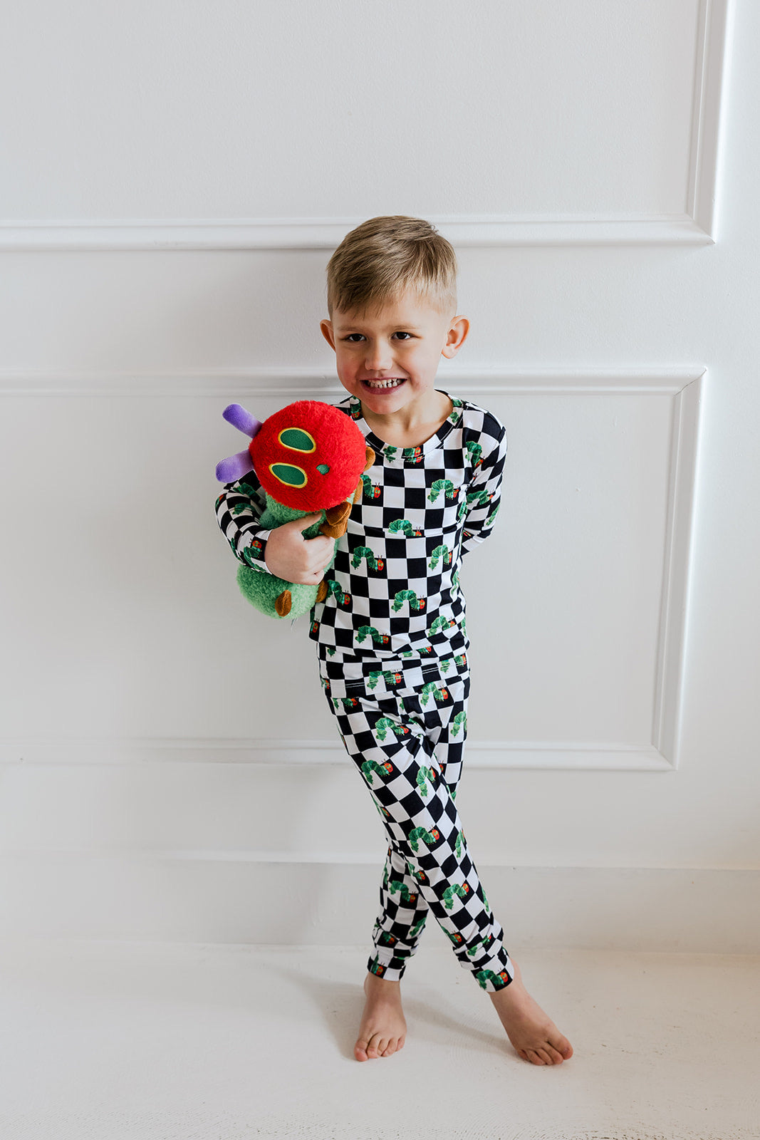 Bring classic storytime charm to bedtime with the Caterpillar Check Dream Set. Part of our exclusive DBLC x World of Eric Carle collaboration, this two-piece set features a striking black-and-white check paired with the beloved hungry caterpillar. Made from our signature buttery-soft bamboo fabric, it’s designed for cozy nights, comfy lounging, and all-day play.