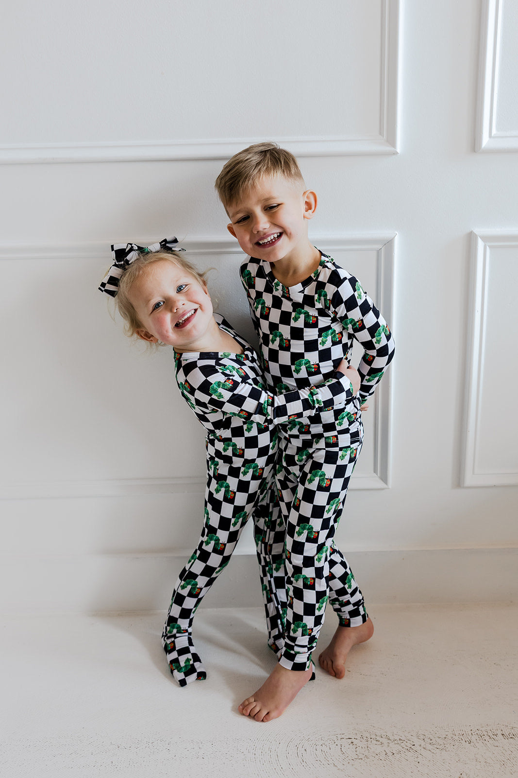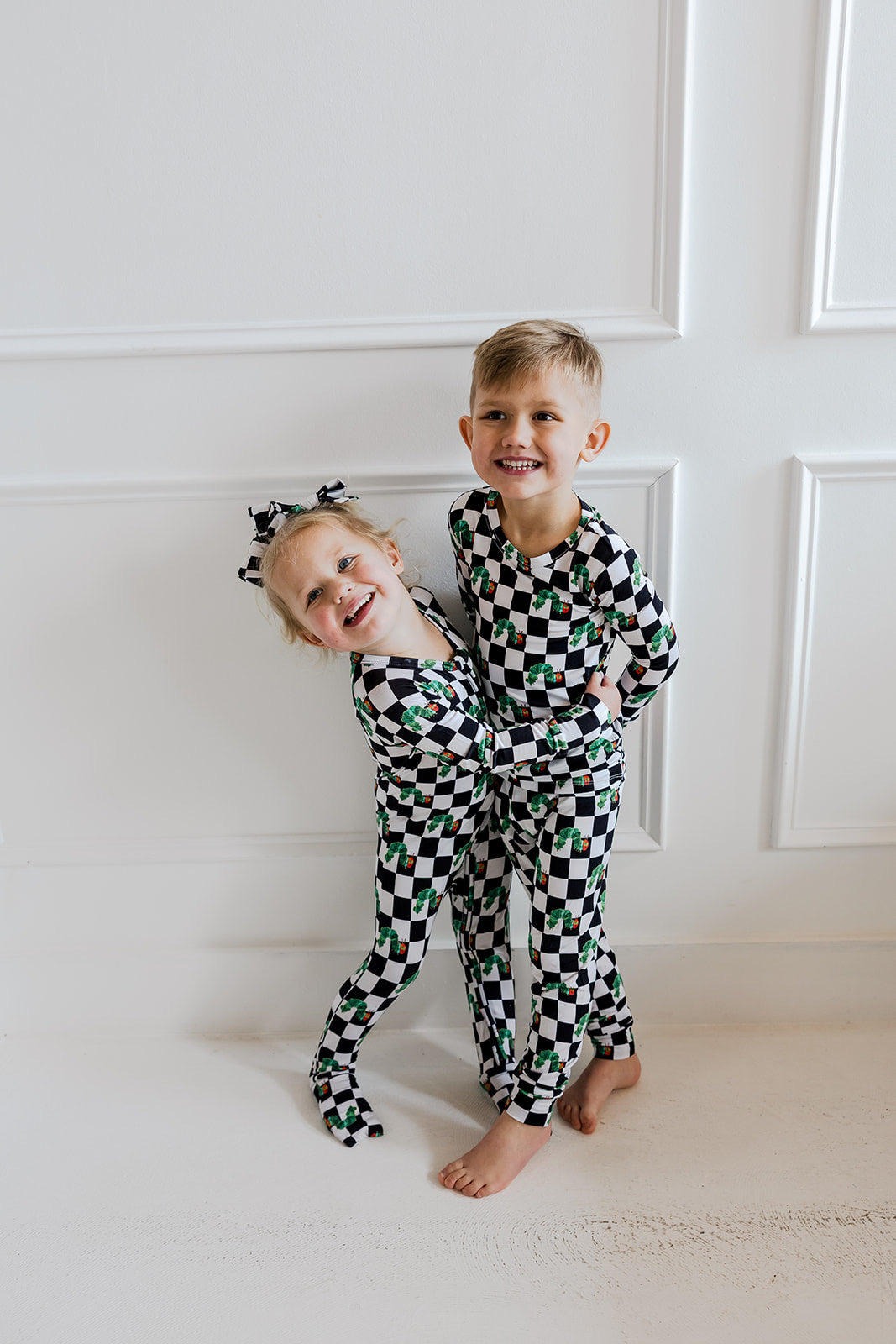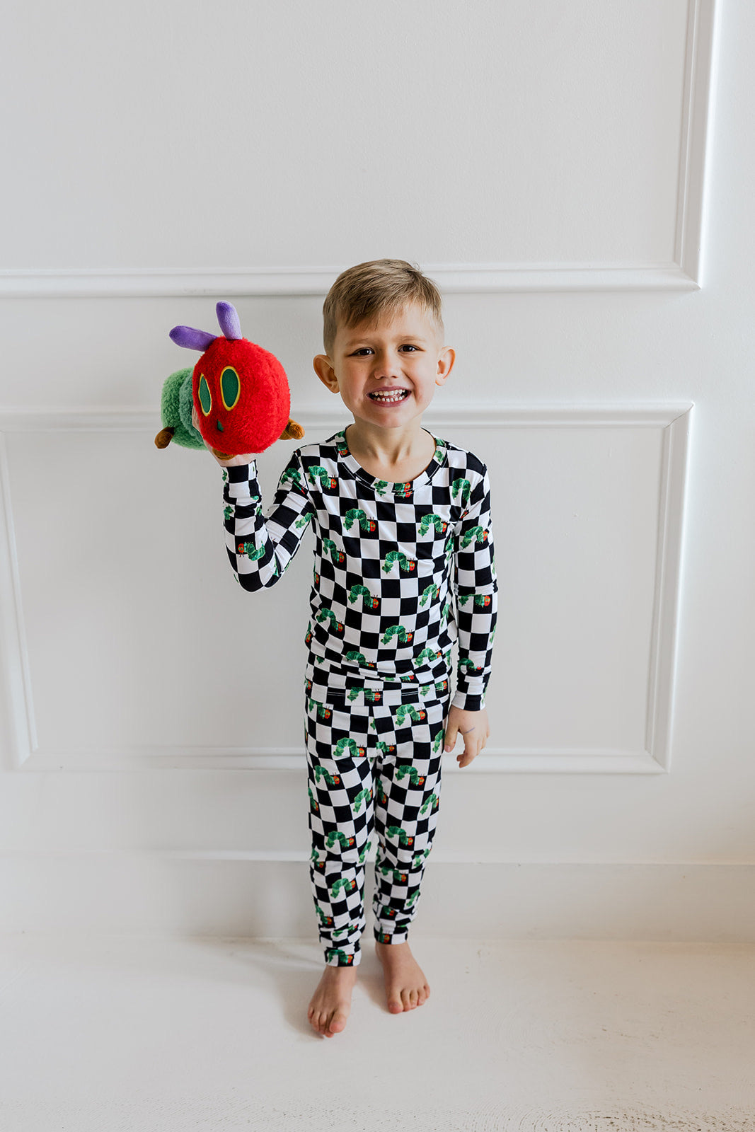 Bring classic storytime charm to bedtime with the Caterpillar Check Dream Set. Part of our exclusive DBLC x World of Eric Carle collaboration, this two-piece set features a striking black-and-white check paired with the beloved hungry caterpillar. Made from our signature buttery-soft bamboo fabric, it’s designed for cozy nights, comfy lounging, and all-day play.
