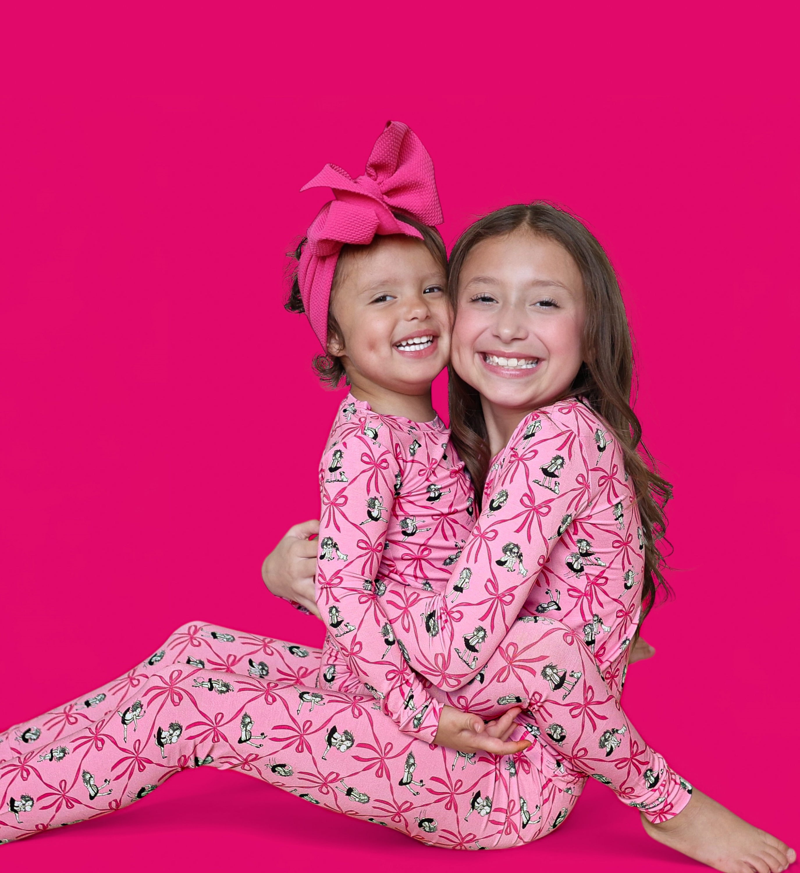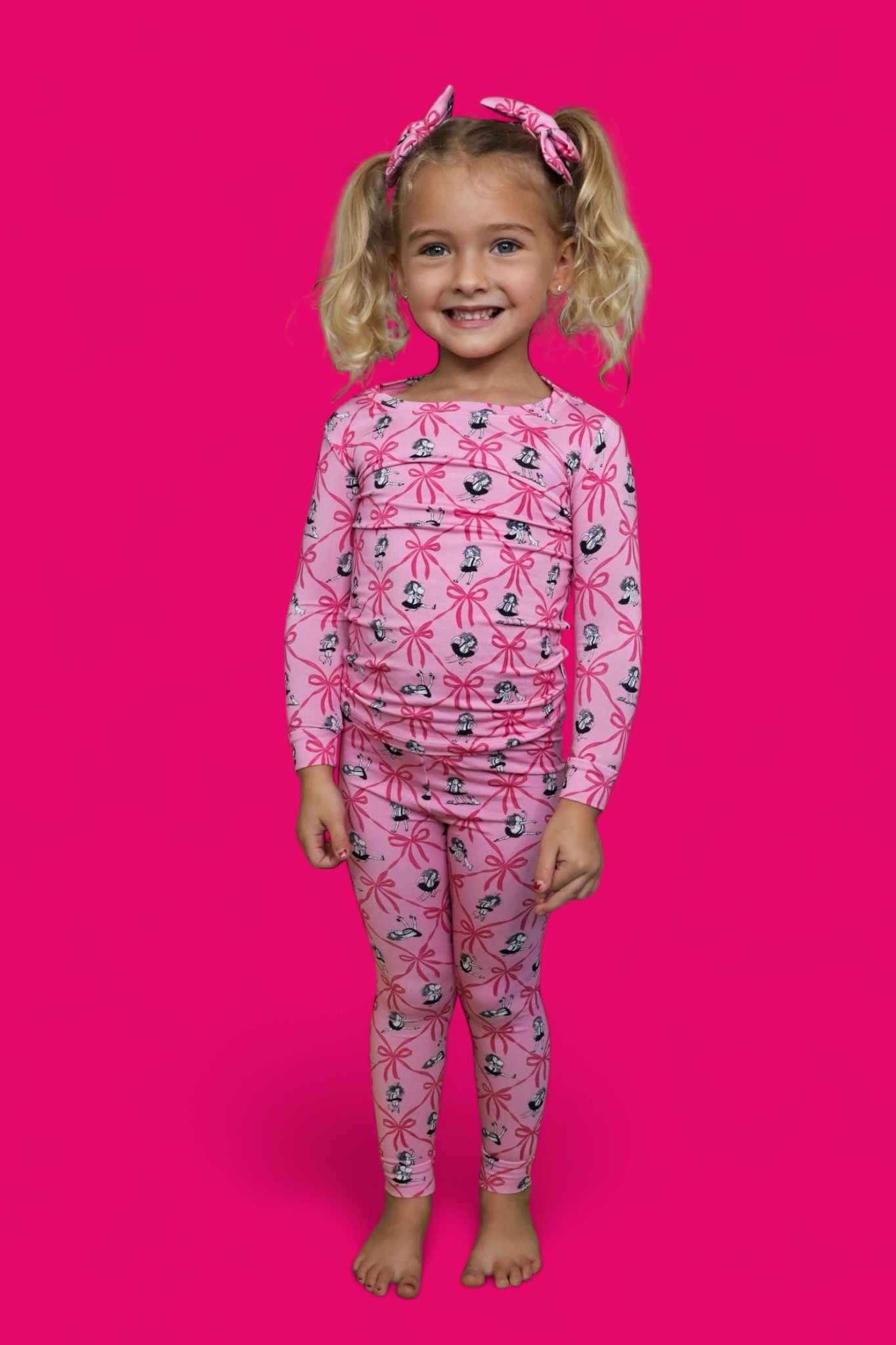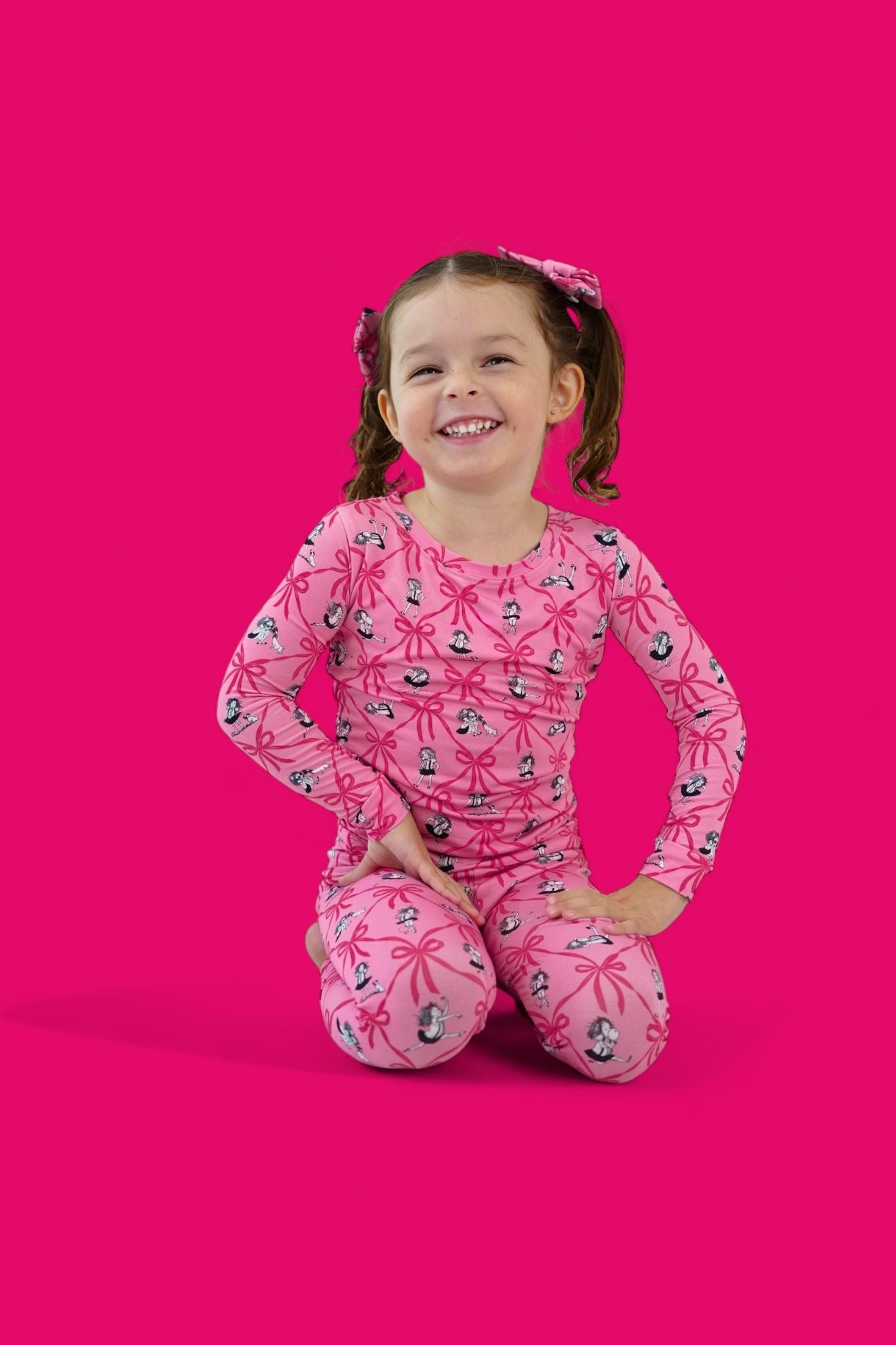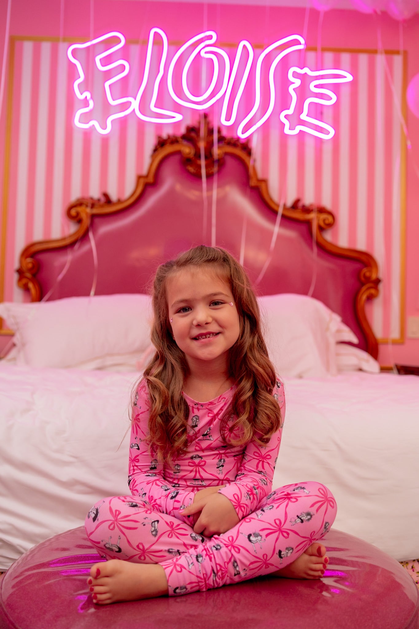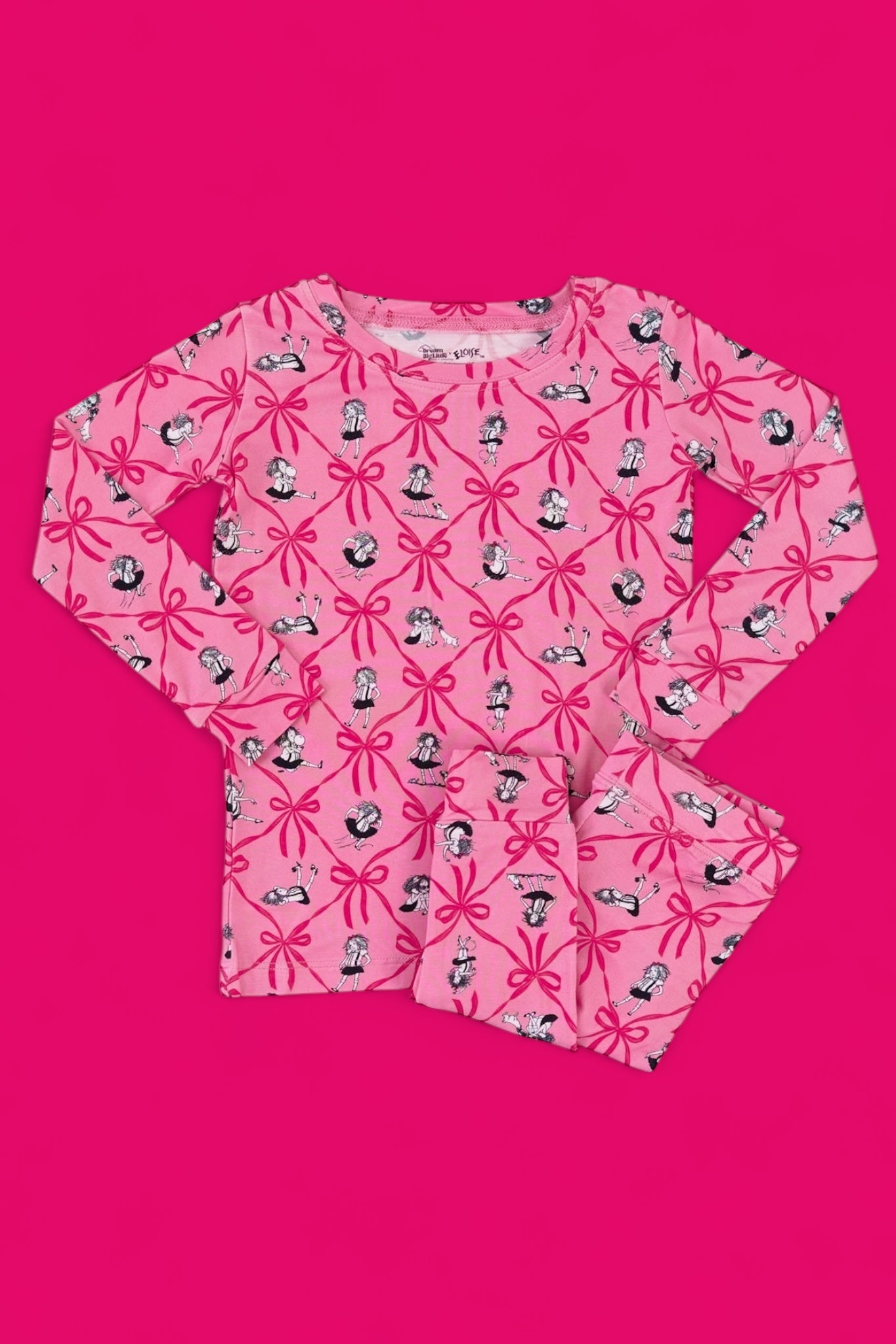 Say bonjour to bedtime with the Eloise Royal Ribbons Dream Set! Featuring the beloved Eloise in all her sassy, stylish glory—skipping, twirling, and lounging among oversized hot pink bows—this buttery-soft pajama set is fit for a Plaza princess. With a long sleeve top and matching pants, it’s the perfect mix of cozy and couture for your little fashionista-in-training.