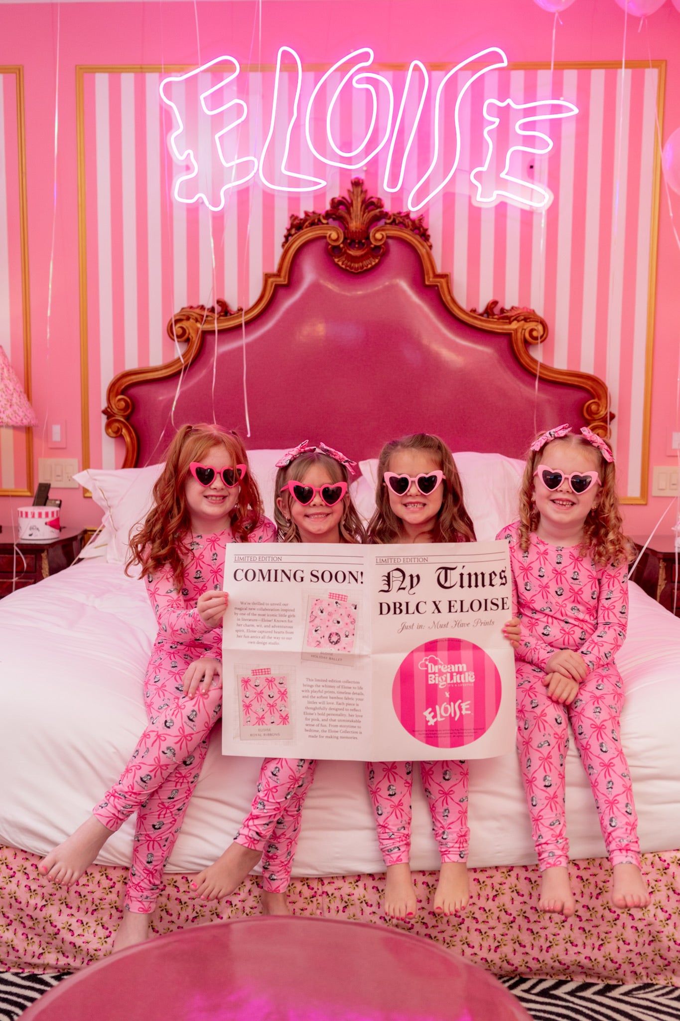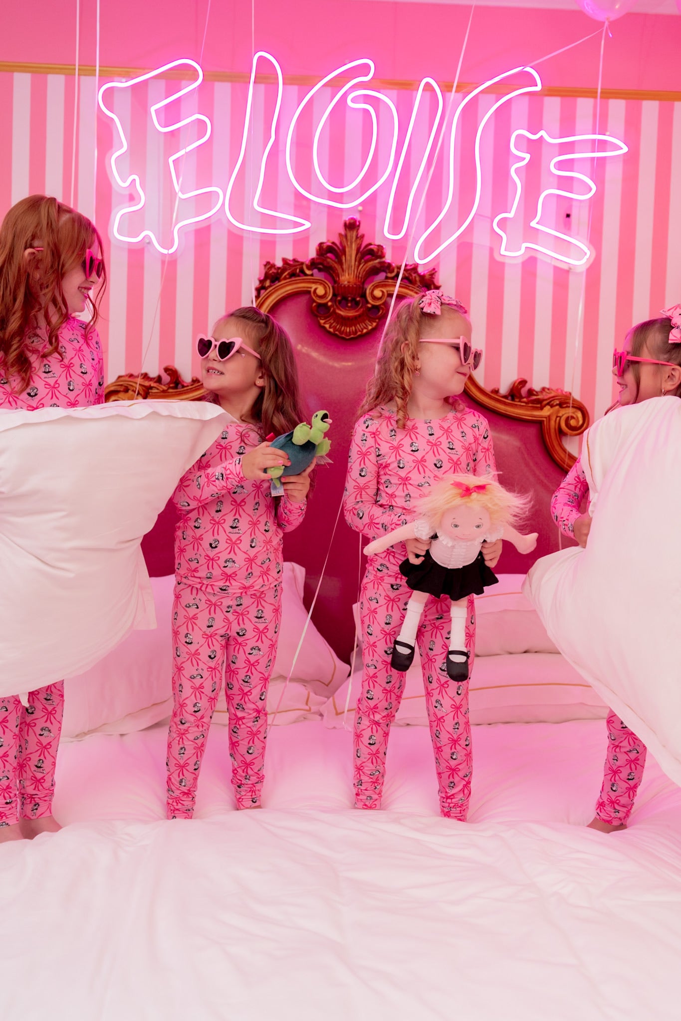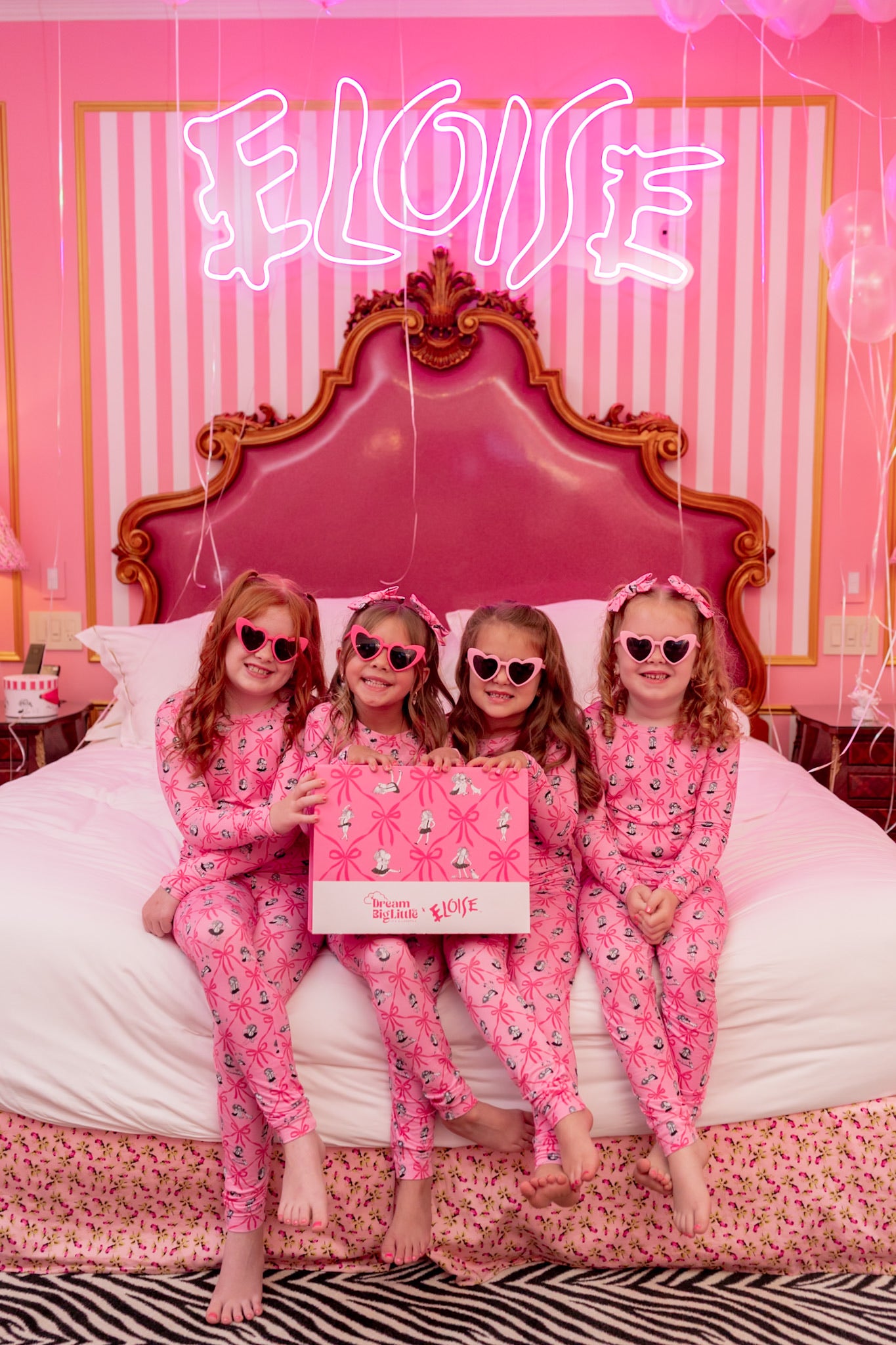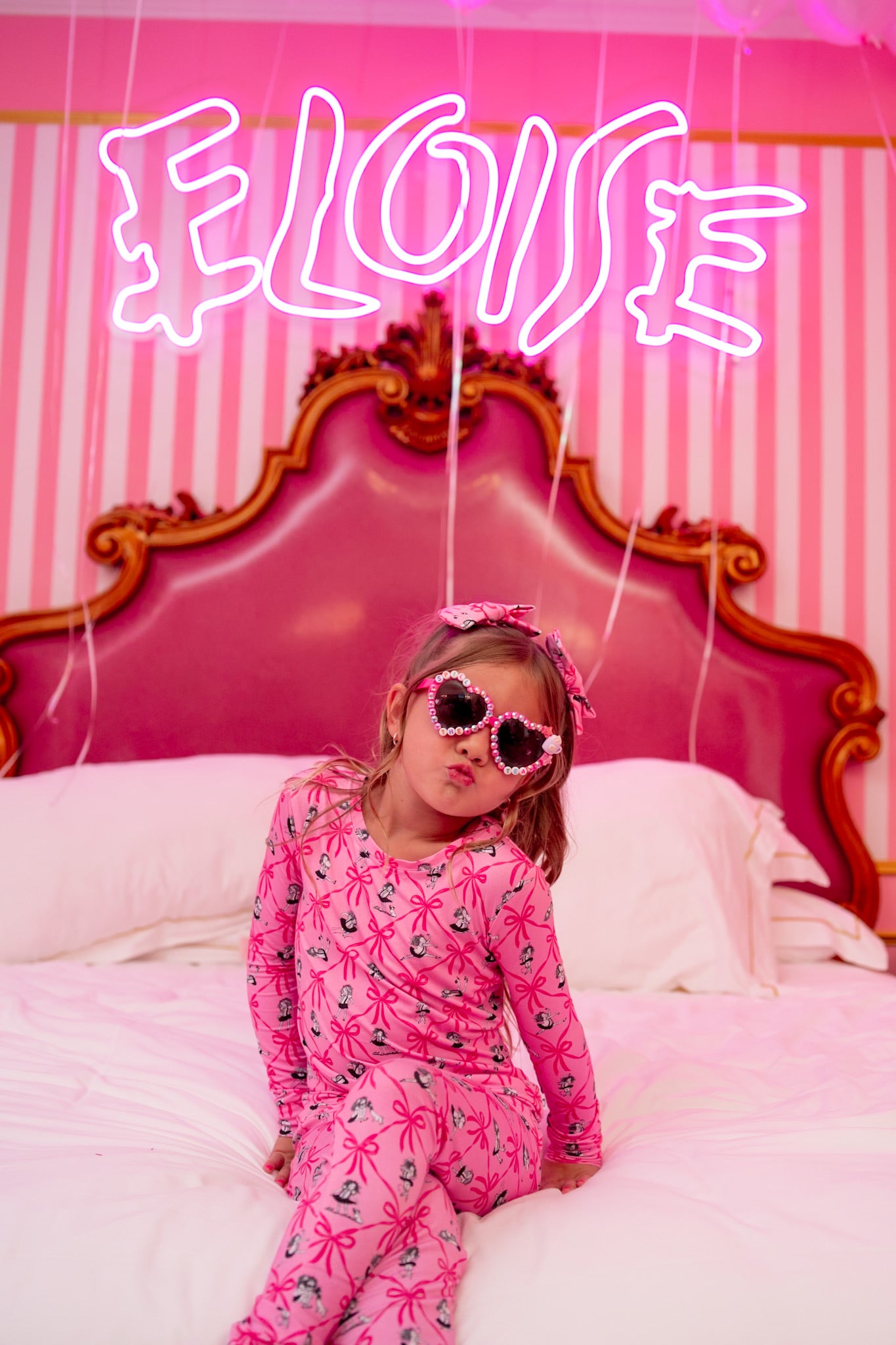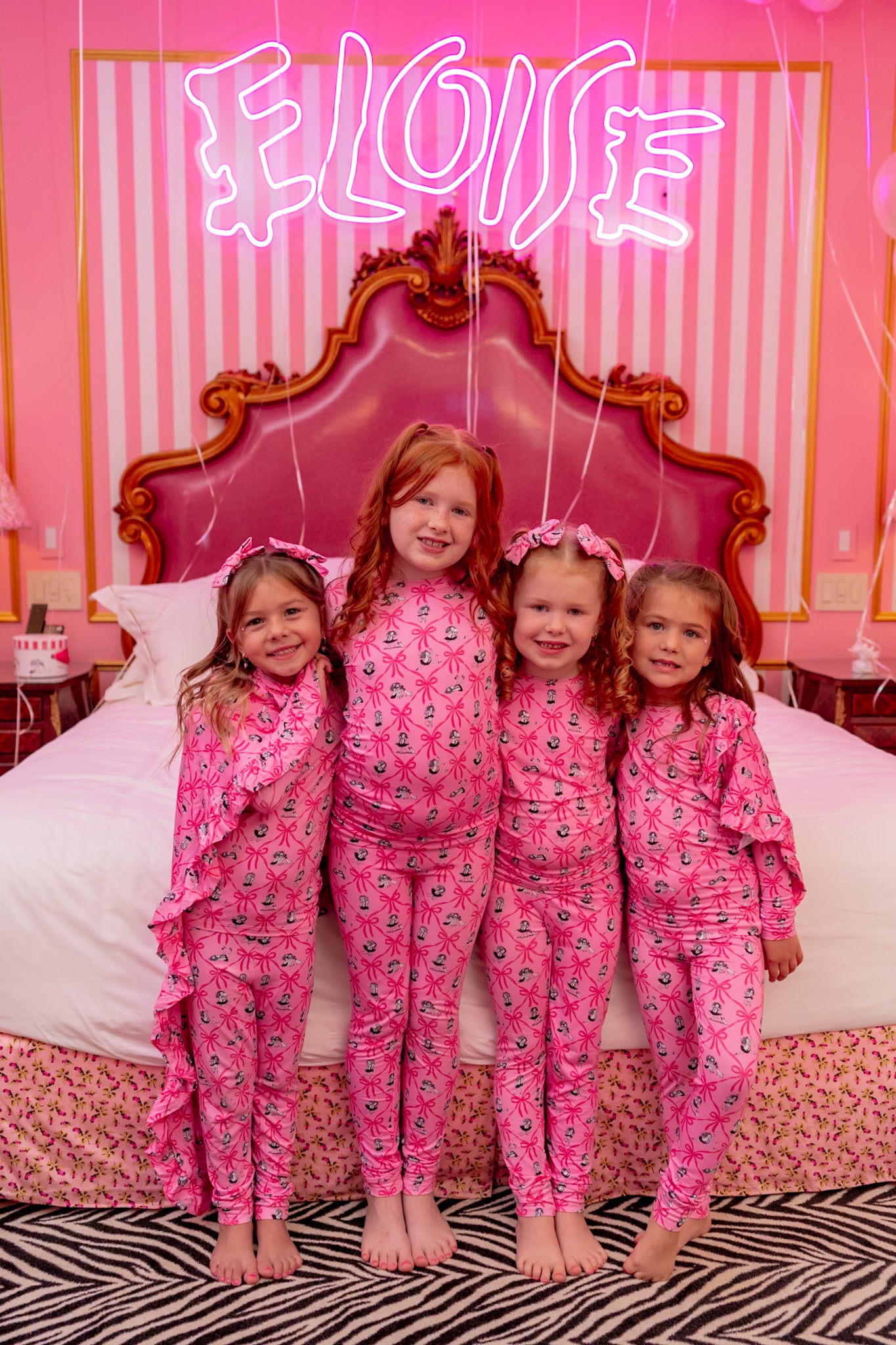 💗 Iconic Eloise illustrations framed by bold pink bows