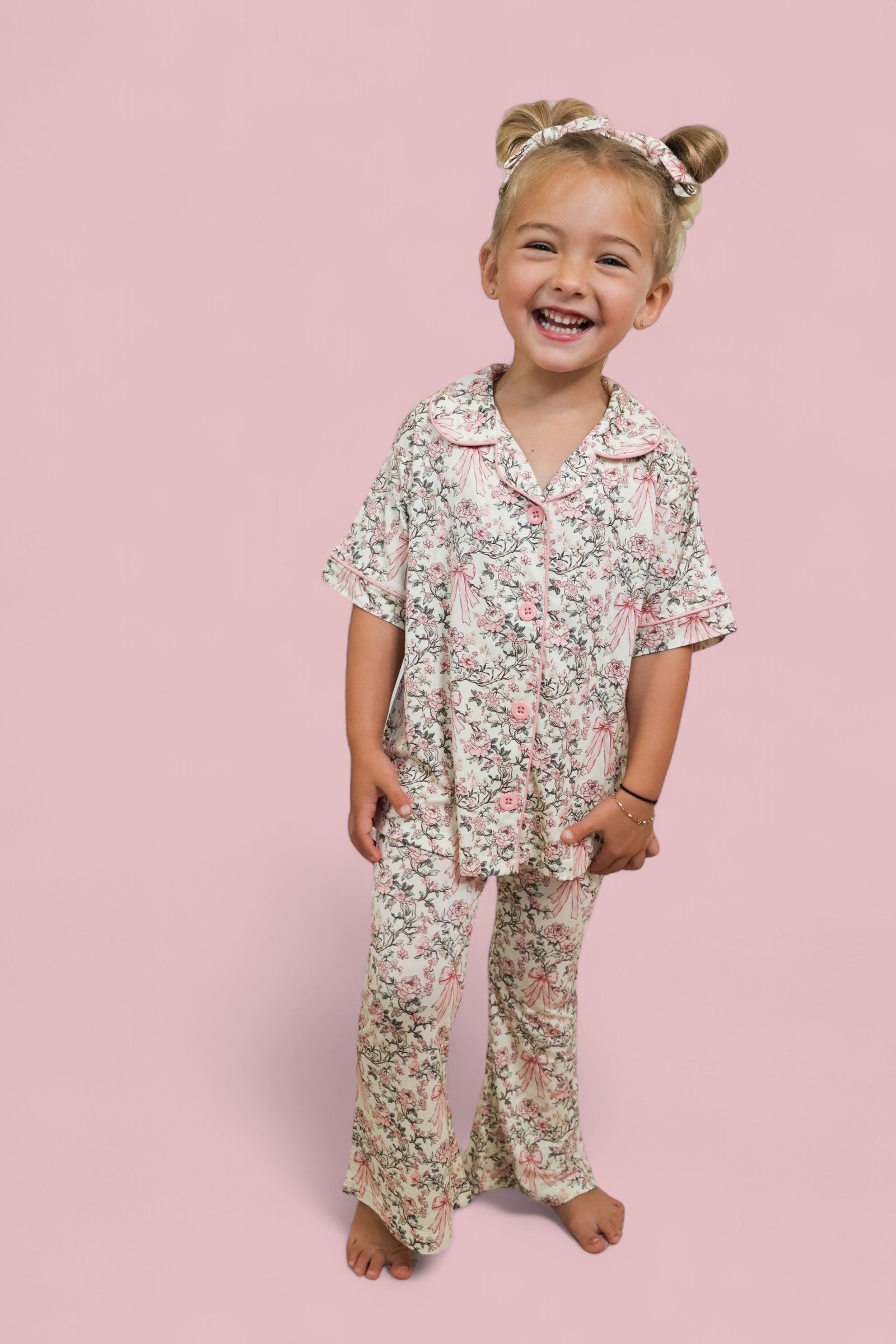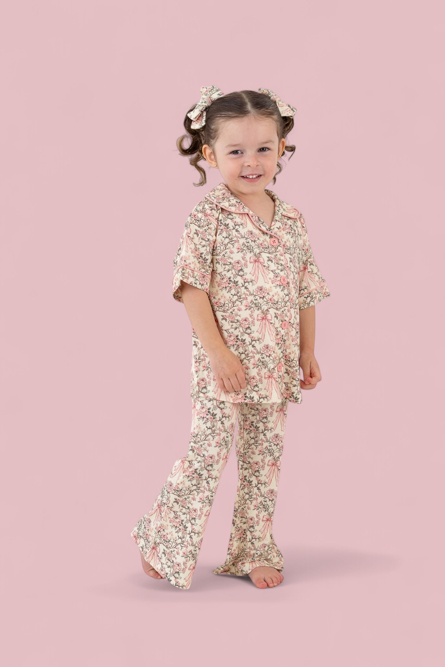 Sweet, stylish, and oh-so-soft—our Victorian Bloom Dream Girl’s Flare Set is made for twirls, playdates, and cozy snuggles. Crafted from breathable, buttery-soft seasonal bamboo viscose, this two-piece set features a comfy top and flared bottoms with extra stretch and room to grow.