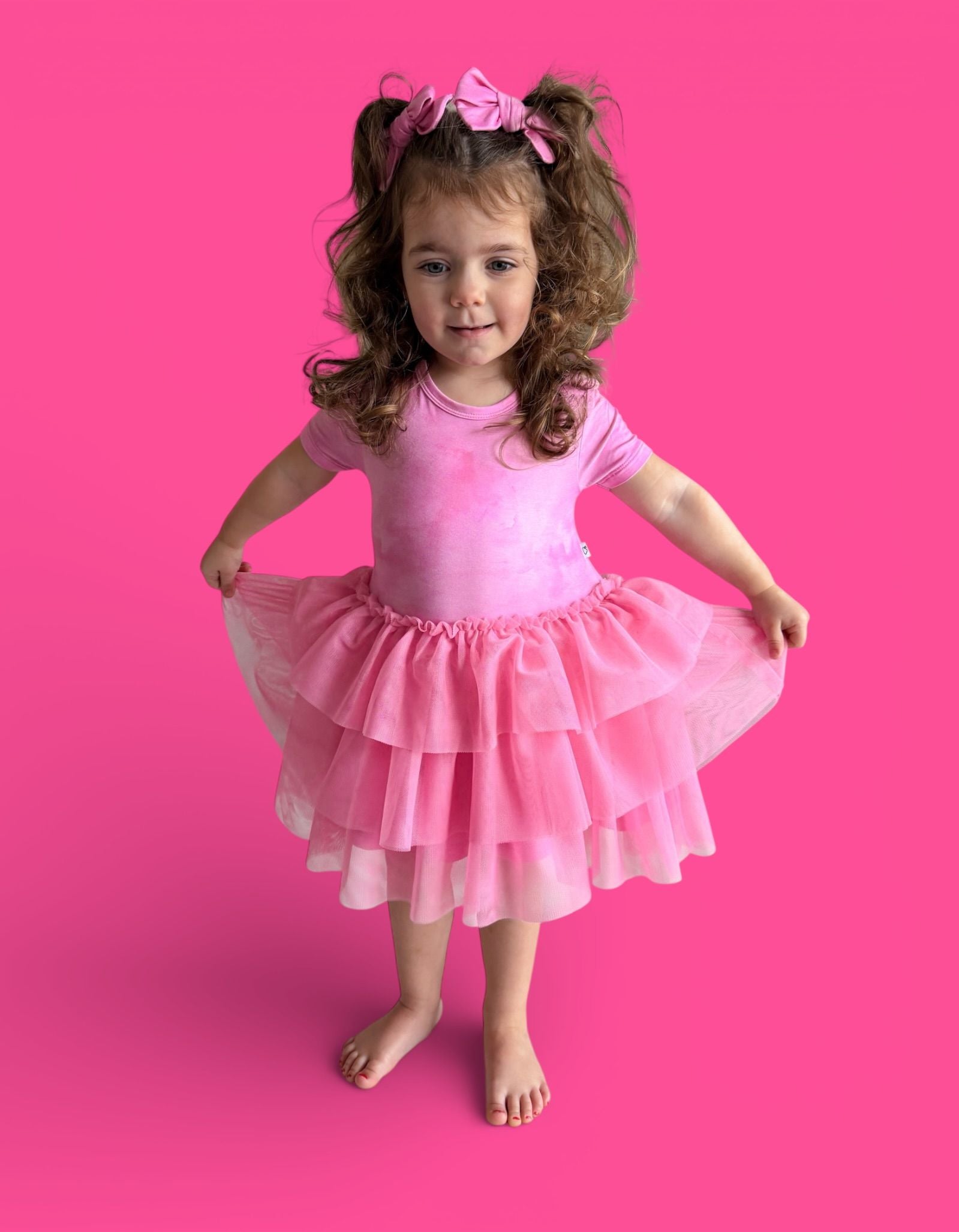 The Pink Daydream Dream Tutu Dress is made for magical moments and picture-perfect twirls. Featuring a soft pink watercolor-inspired bodice paired with a fluffy tutu skirt, this dress blends playful charm with cozy comfort. Crafted with our signature buttery-soft bamboo fabric, it’s as comfortable as it is adorable.