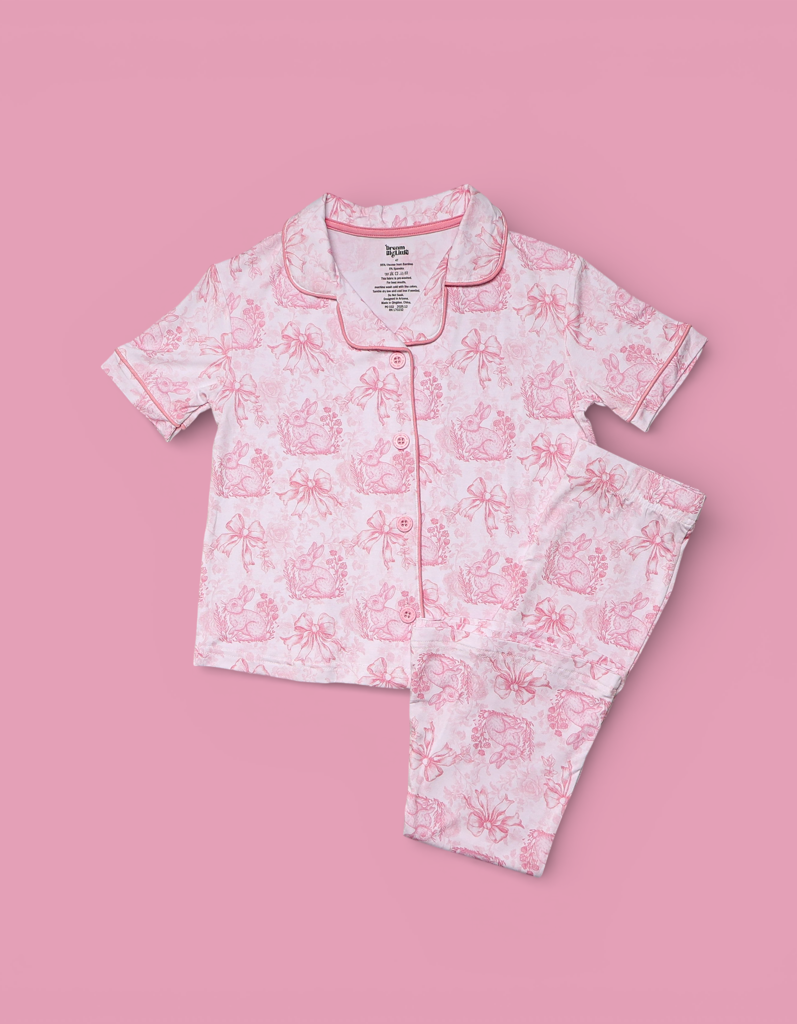 Blush Bunny Toile Dream Girl’s Flare Set 🎀🐰