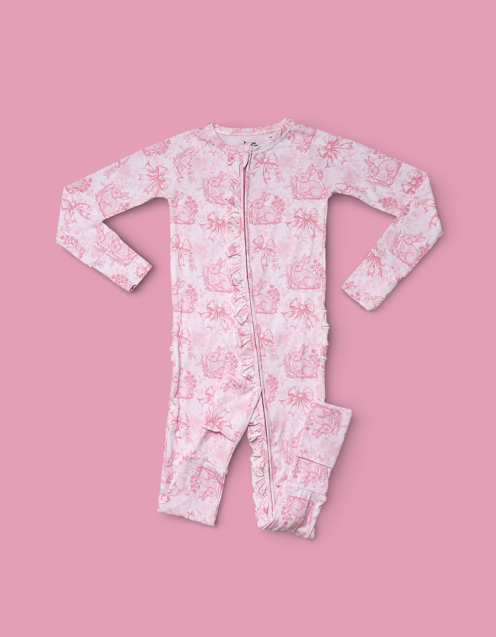 Blush Bunny Toile Dream Ruffle Romper 🎀🐰