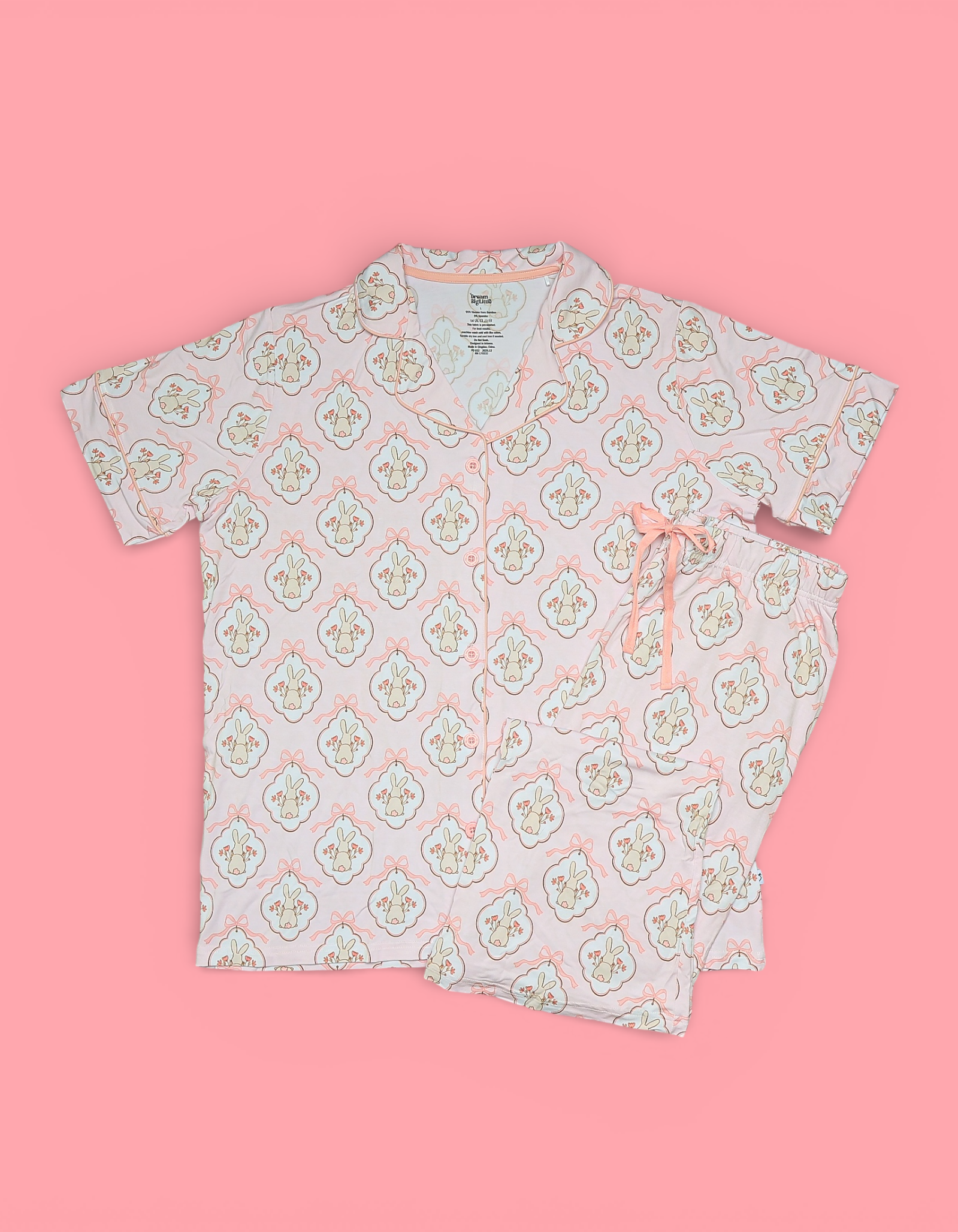 Sweet florals, pastel bows, and feminine comfort all in one. Our Bunny Bow Blossoms Women’s Dream Flare Set brings cozy elegance to springtime lounging with a soft, playful print that pairs perfectly with Easter mornings, matching moments, and slow days spent with your little bunnies. 🌿✨