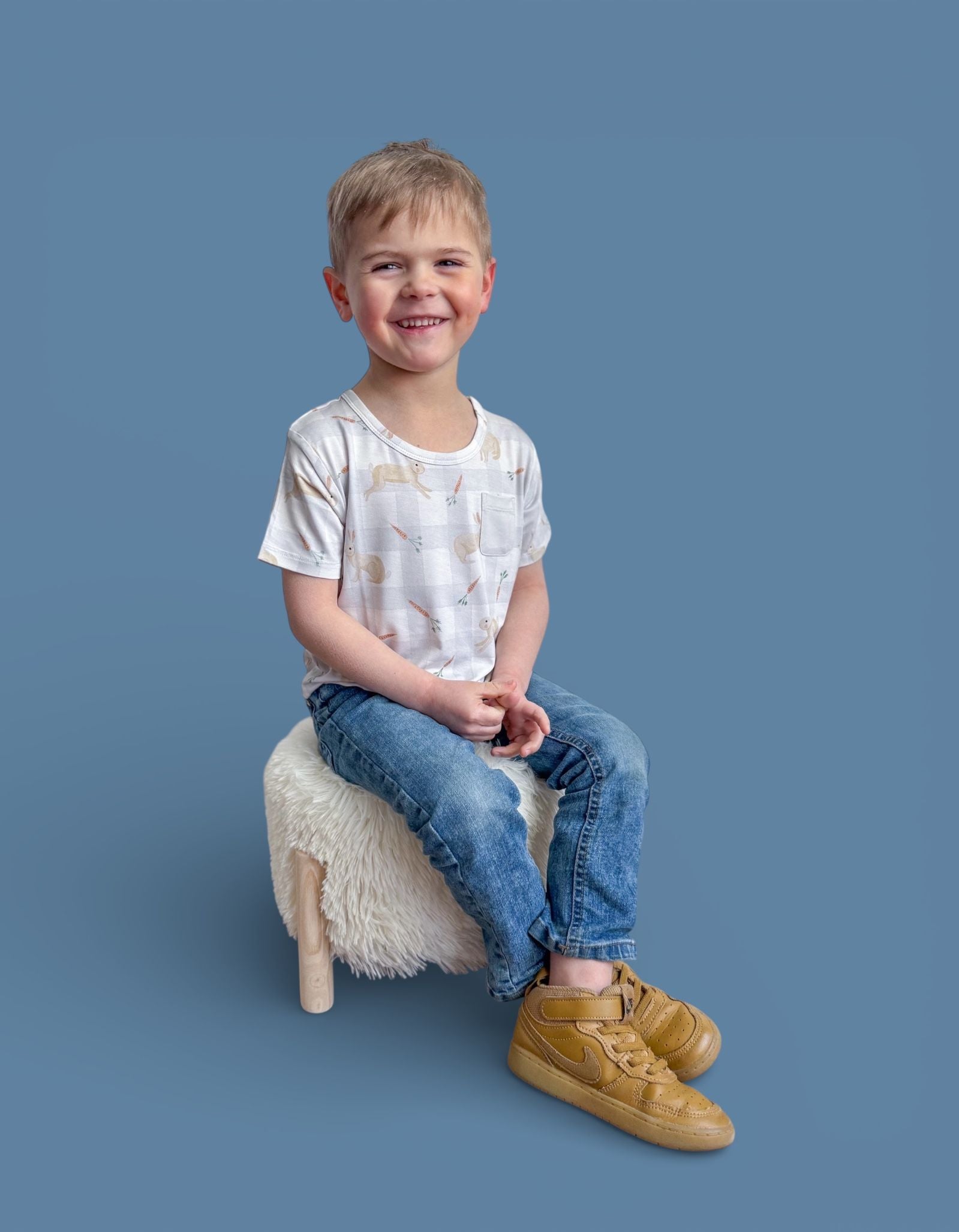 Made with our signature Dream fabric — buttery soft, breathable, and ultra-stretchy — this tee keeps little ones comfy through every hop, skip, and cuddle. The easy pull-on fit makes getting dressed simple, while the pocket detail adds a touch of playful spring magic. ☁️🤍