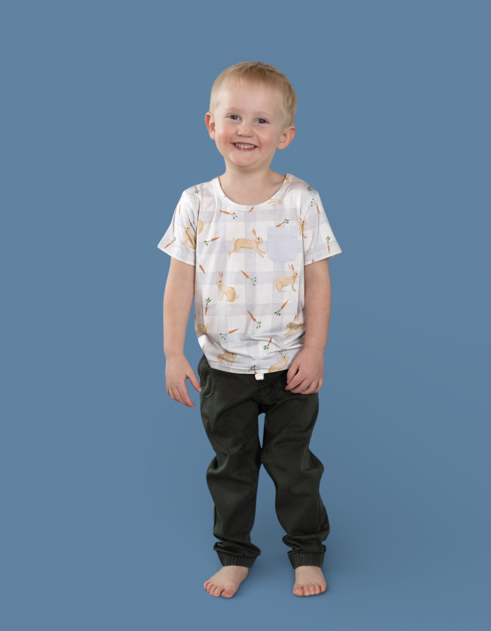 A hop into spring never looked so cute! Our Meadow Hop Dream Pocket Tee features watercolor bunnies and tiny carrots on a soft meadow gingham, complete with an adorable matching pocket for extra charm. Perfect for Easter baskets, sunny strolls, and everyday storybook sweetness. 🌼✨