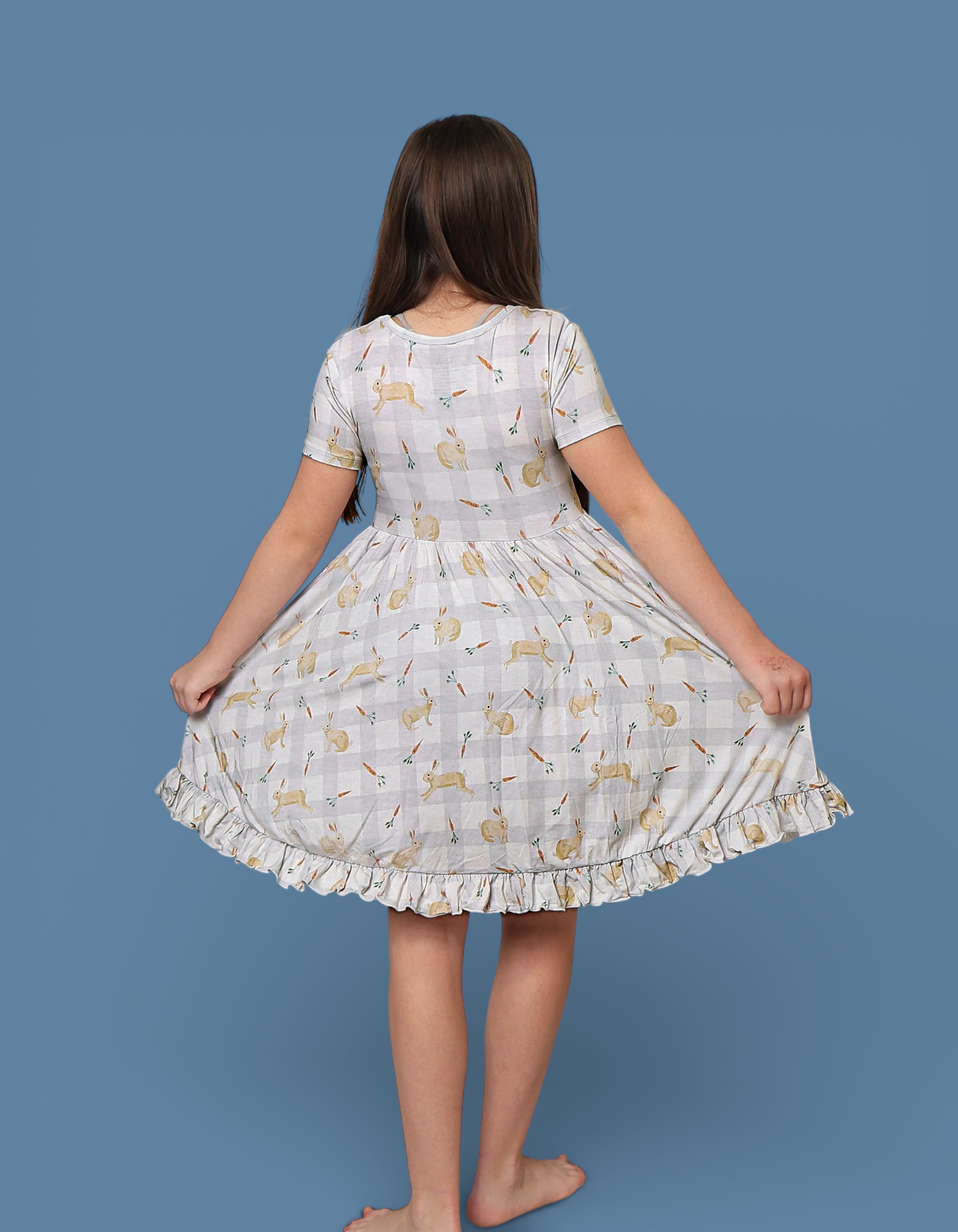 Soft, whimsical, and made for springtime twirls. Our Meadow Hop Dream Ruffle Dress features the sweetest watercolor bunnies and tiny carrots on a gentle meadow gingham — a dreamy choice for Easter celebrations, garden parties, and everyday magic. 🌿✨