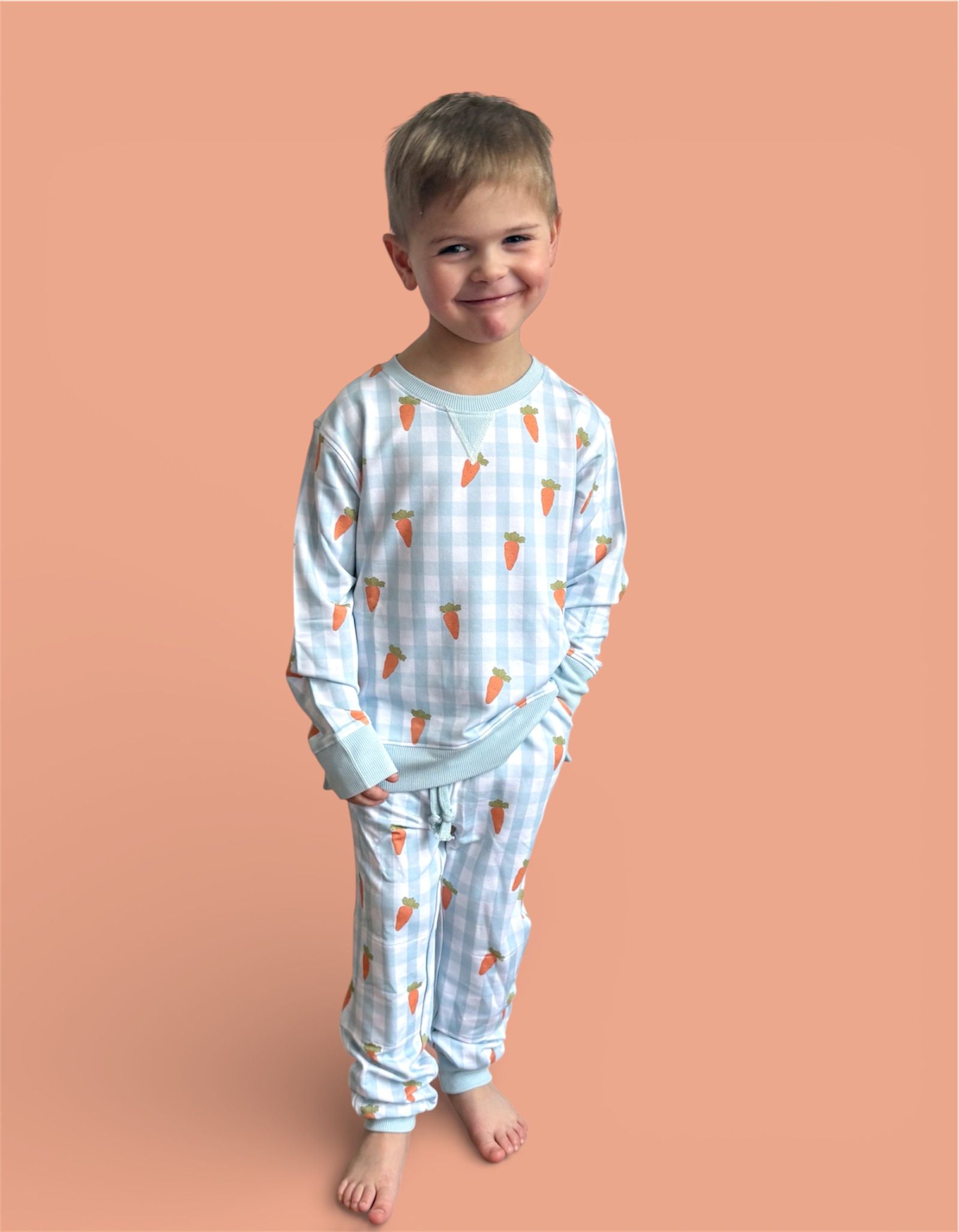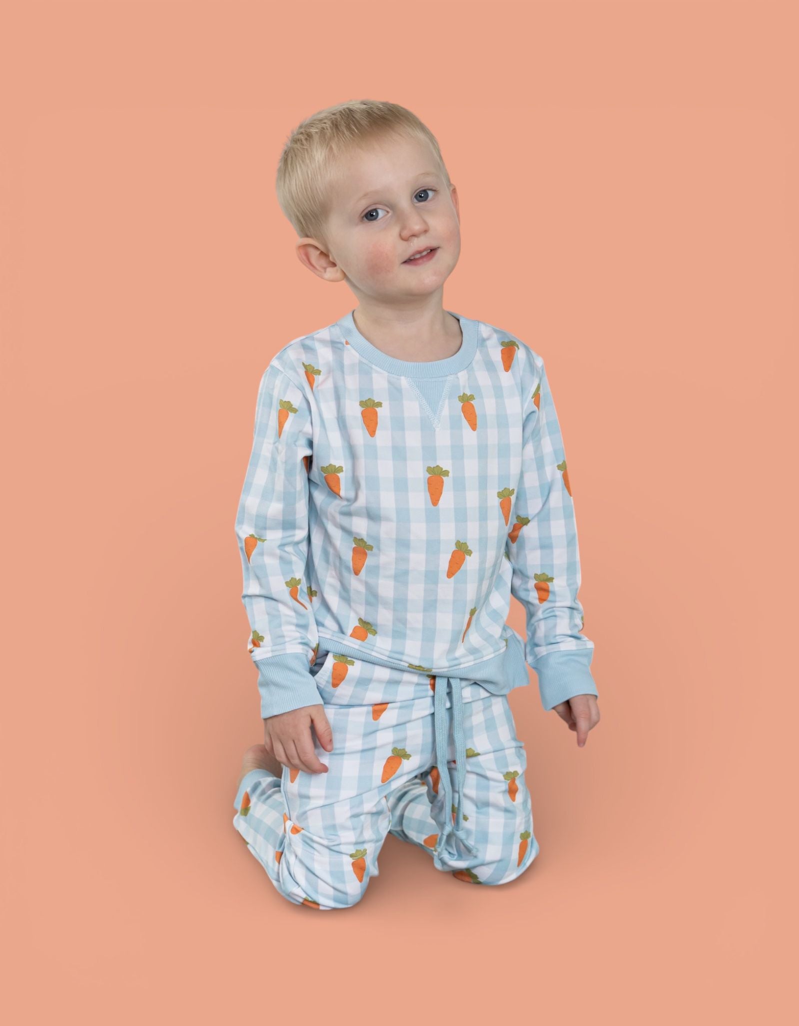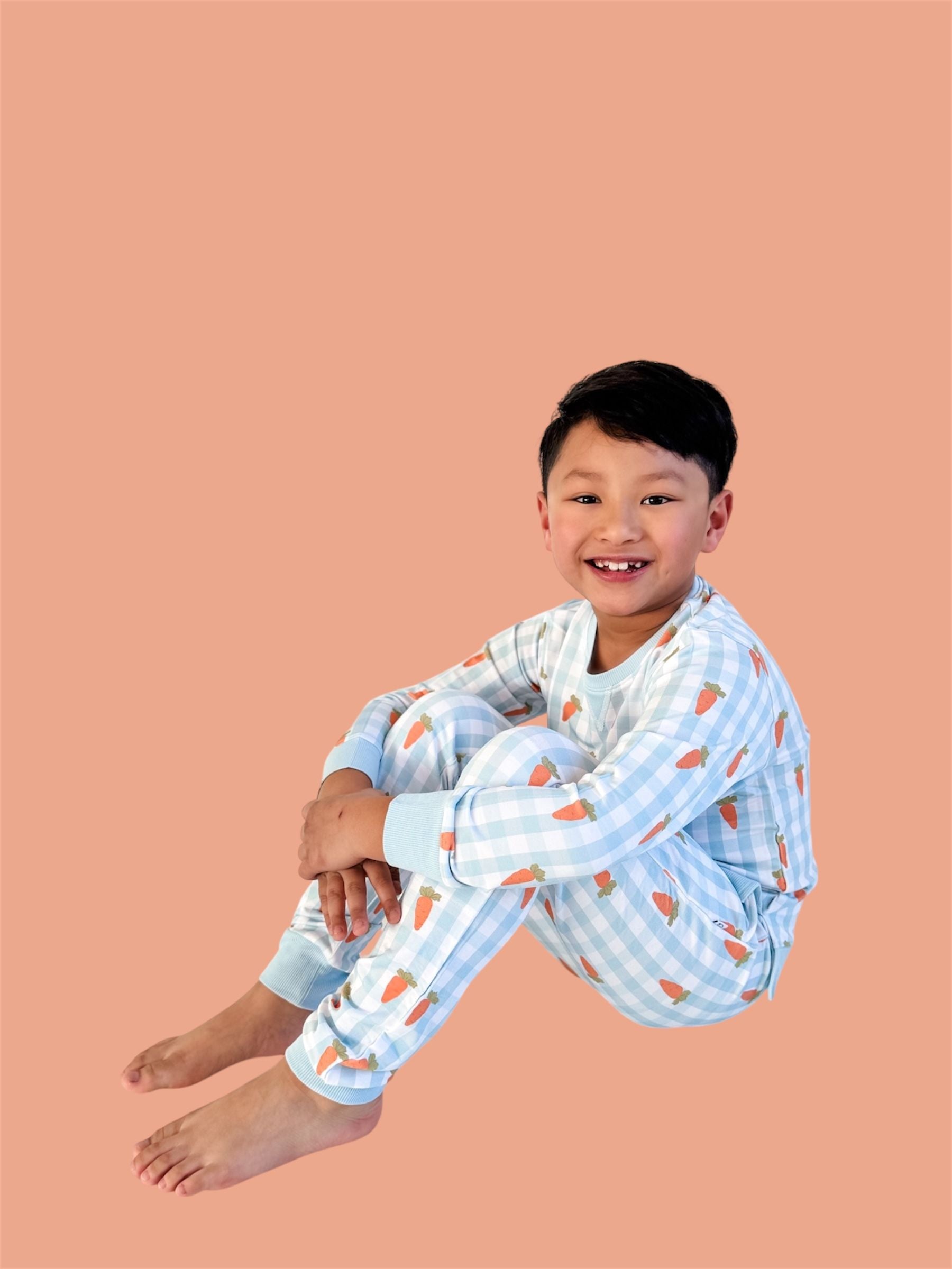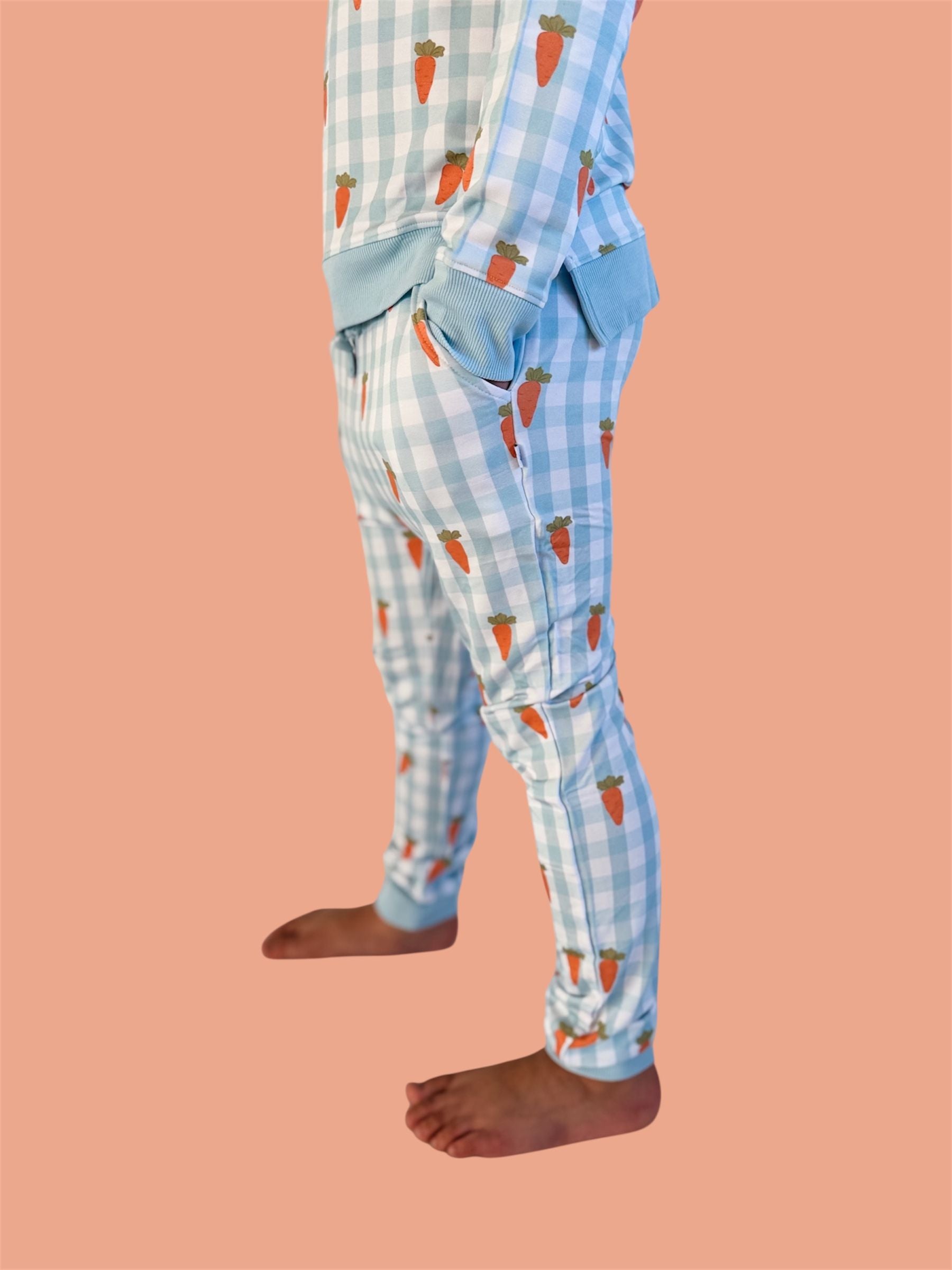 Play, lounge, and hop into spring in comfort! Our Spring Harvest Check Dream Jogger features a cheerful carrot pattern on soft pastel gingham — the cutest seasonal staple for everyday wear. Perfect for Easter festivities, playdates, and cozy days at home. 🌼✨