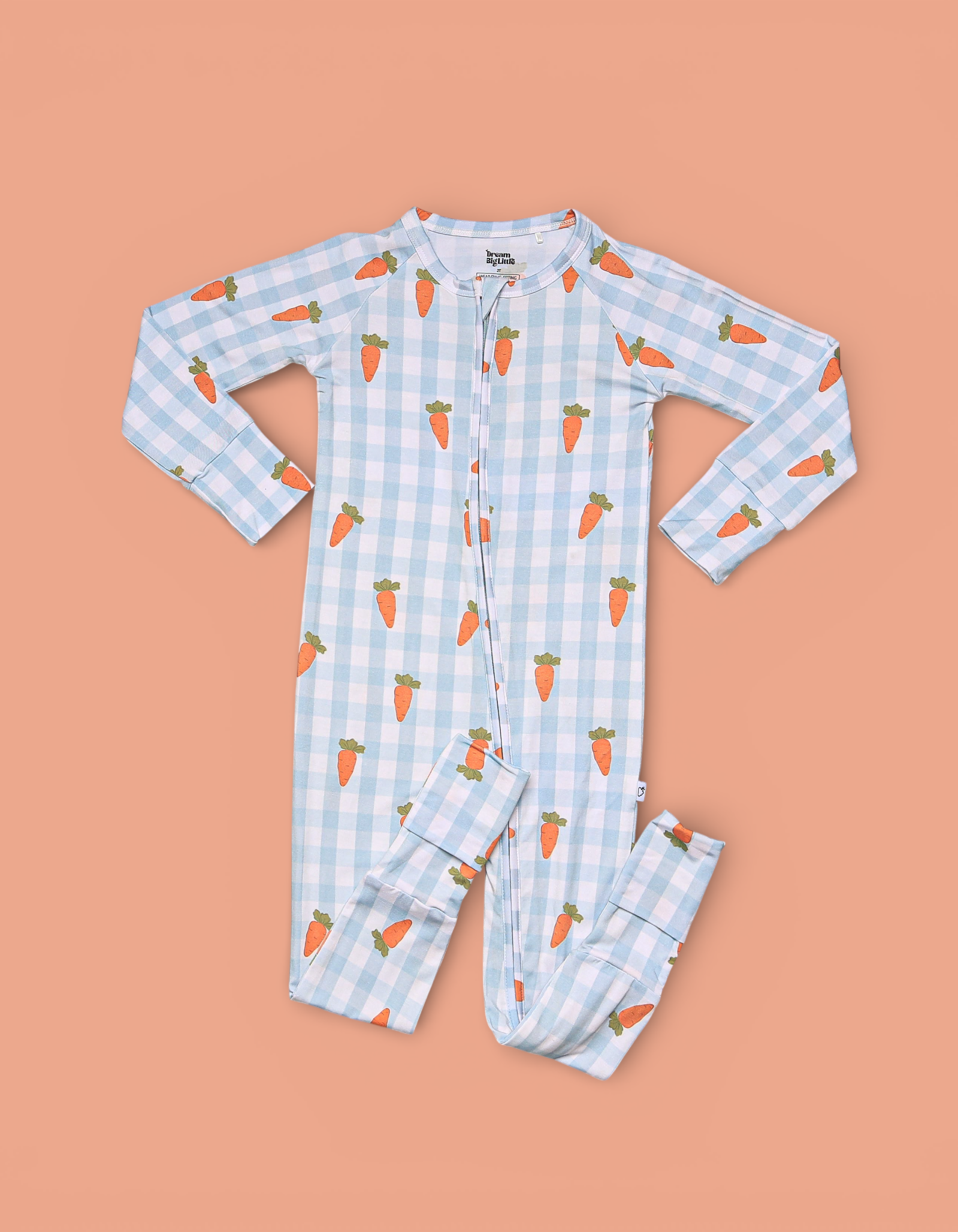 • Sweet carrot print with pastel checks for springtime charm 🥕💛