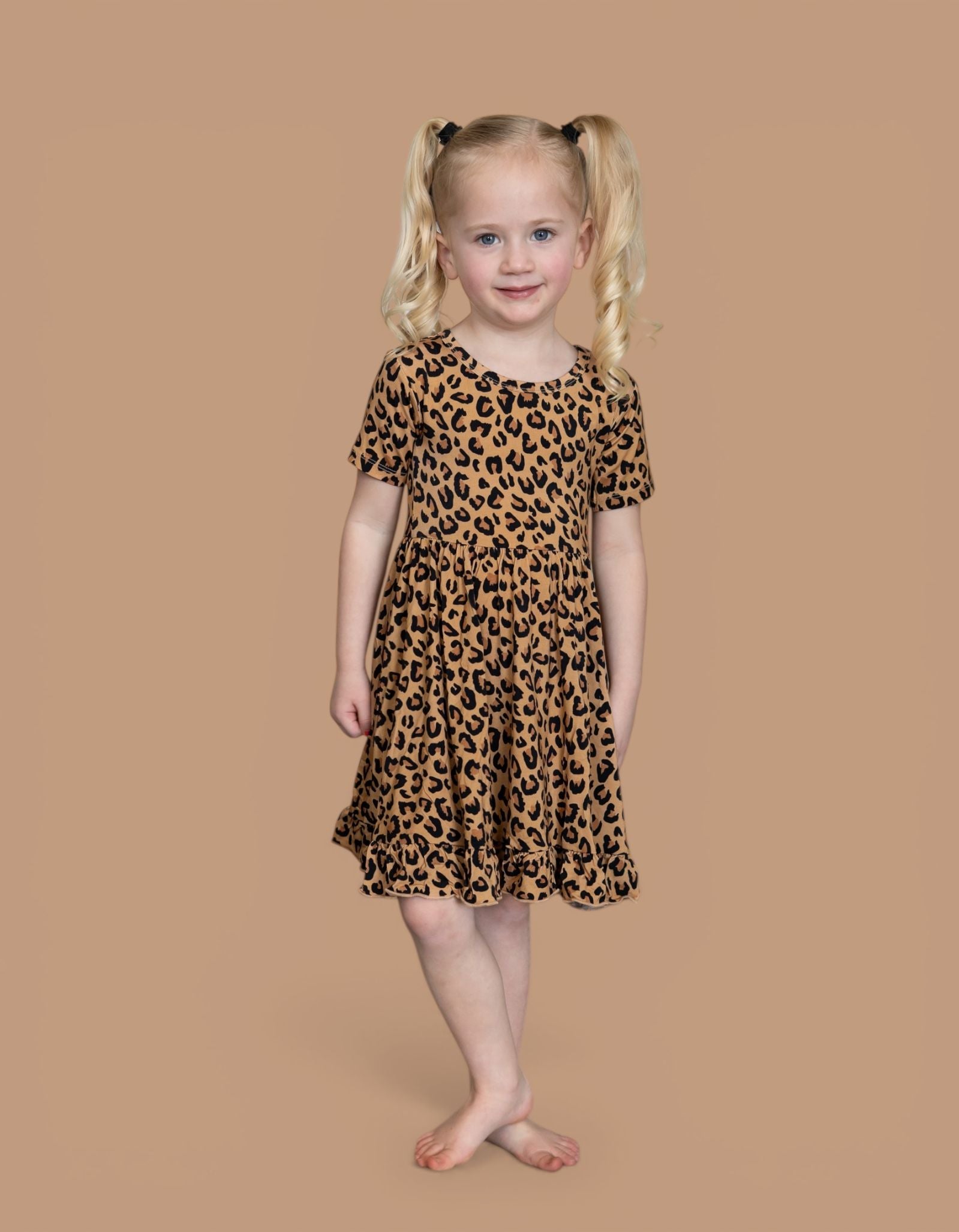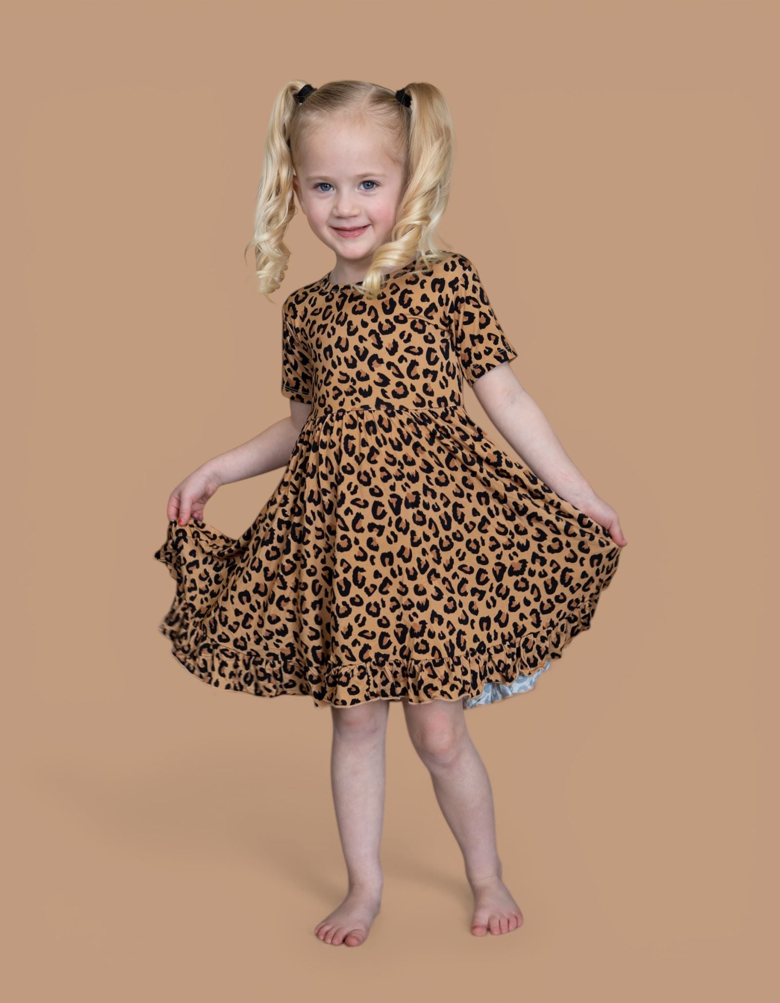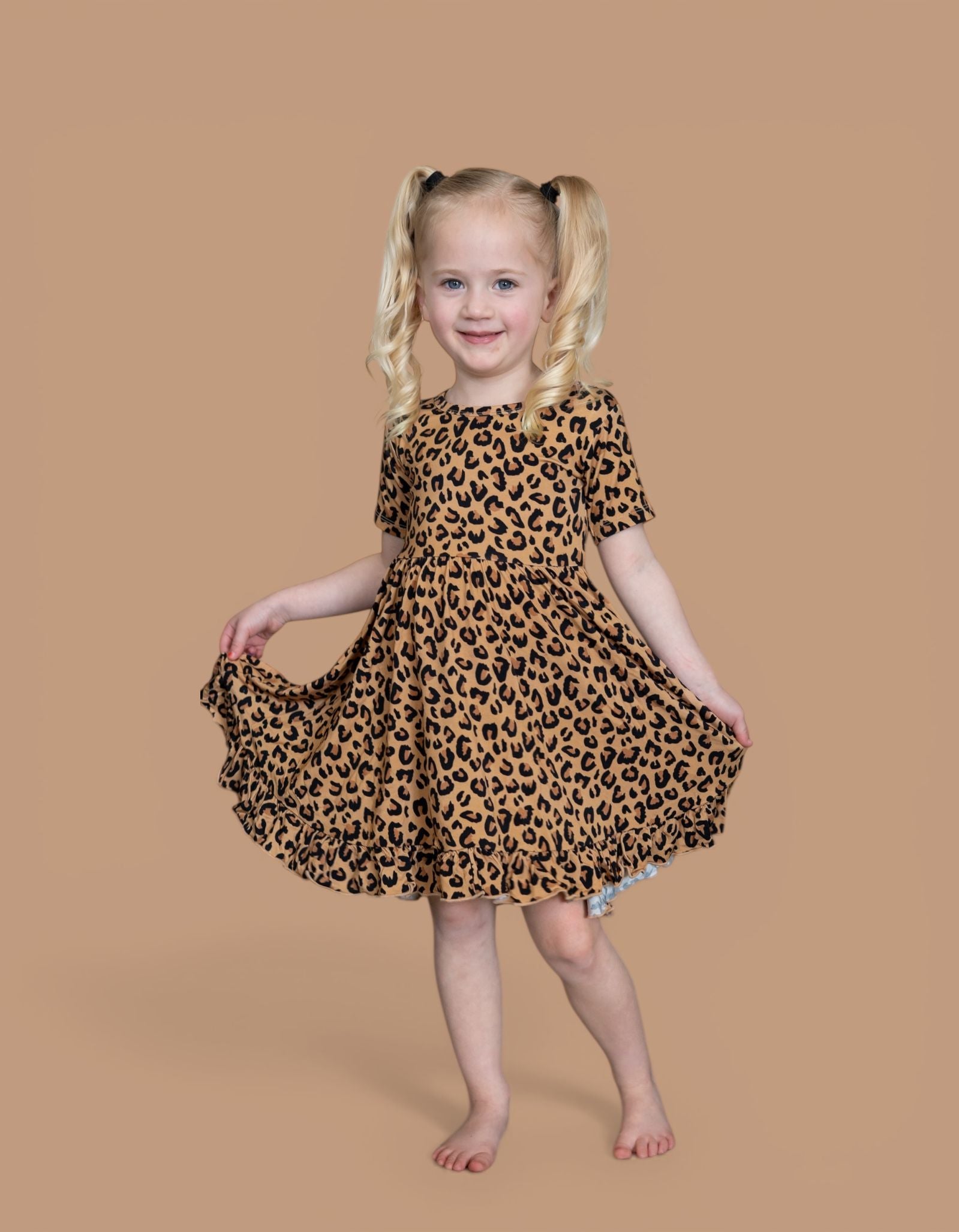 Let your little one prowl in style with the Leopard Dream Ruffle Dress, a fierce yet playful statement piece for every adventure. This stunning dress features a timeless leopard print, with bold black spots and warm brown tones on a soft beige backdrop—just like nature’s own masterpiece. Whether they’re twirling through the jungle (or just the living room), this dress is designed to move, play, and shine.