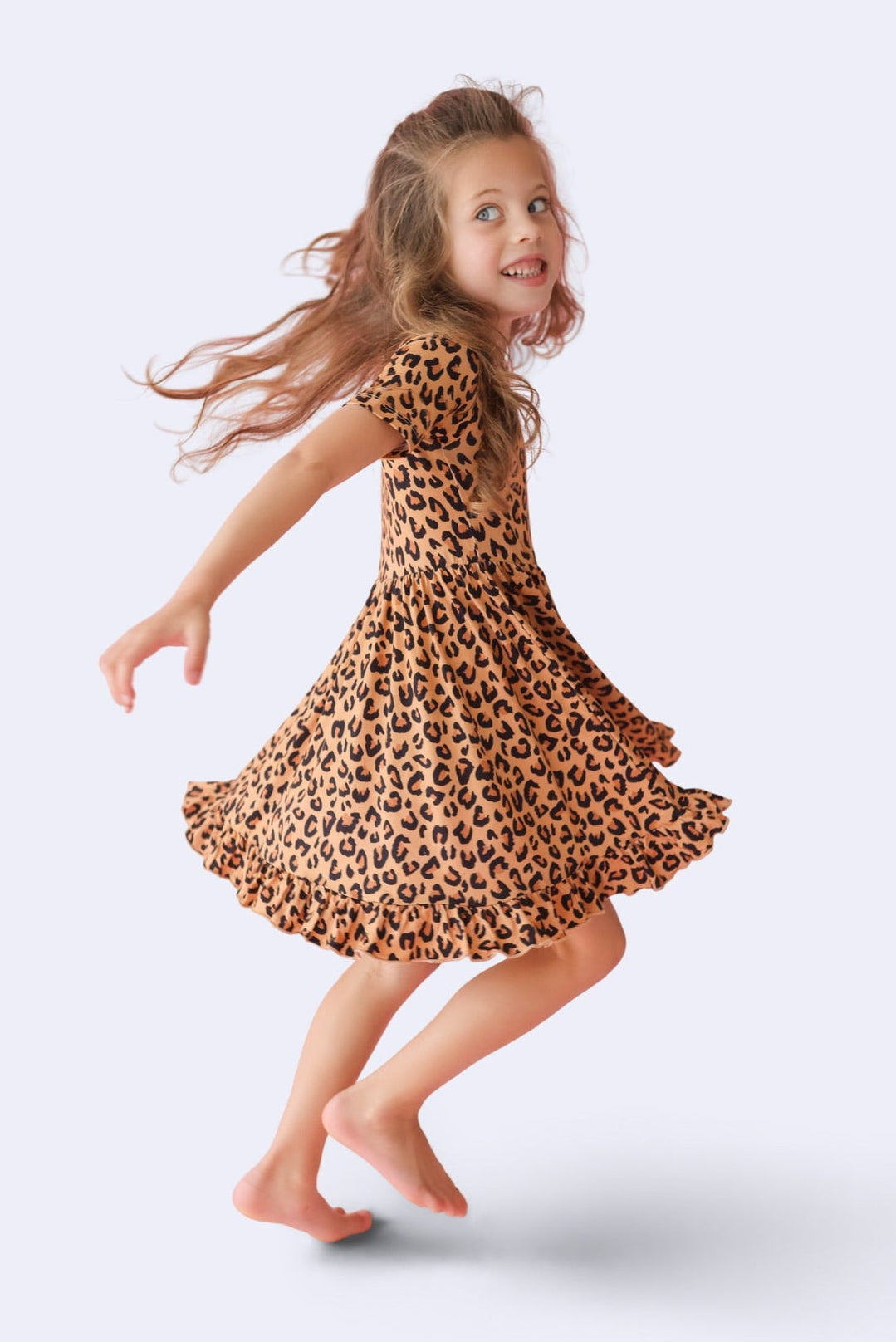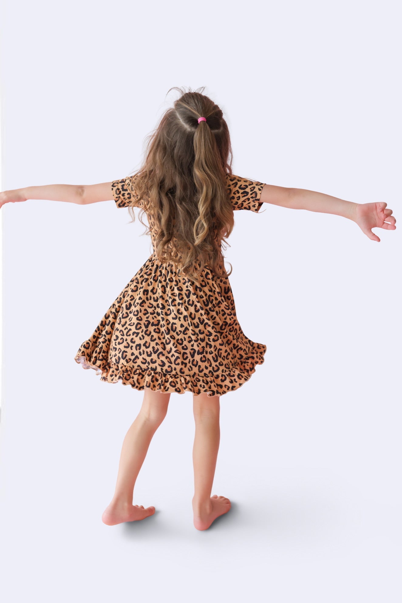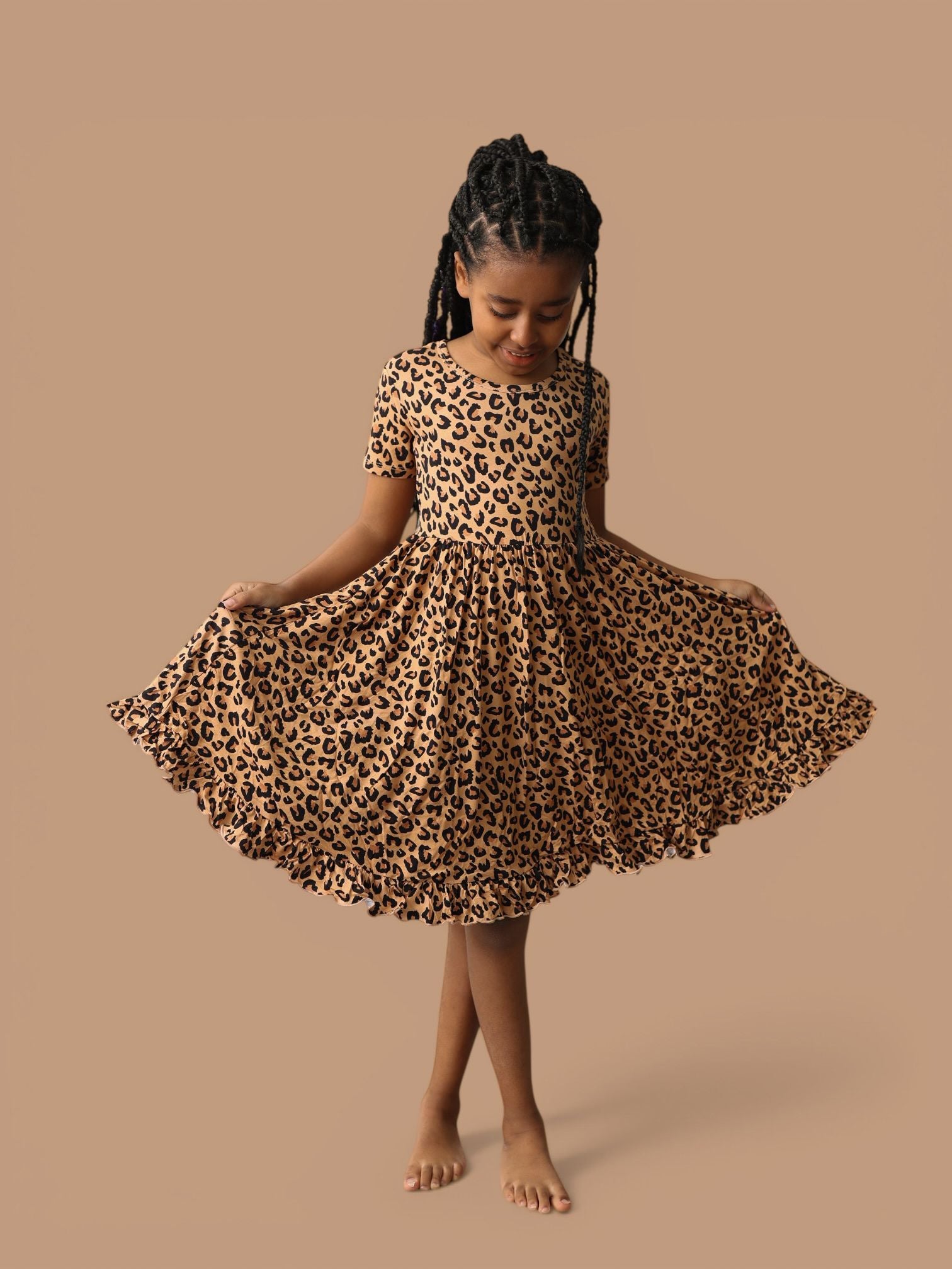 Let your little one prowl in style with the Leopard Dream Ruffle Dress, a fierce yet playful statement piece for every adventure. This stunning dress features a timeless leopard print, with bold black spots and warm brown tones on a soft beige backdrop—just like nature’s own masterpiece. Whether they’re twirling through the jungle (or just the living room), this dress is designed to move, play, and shine.