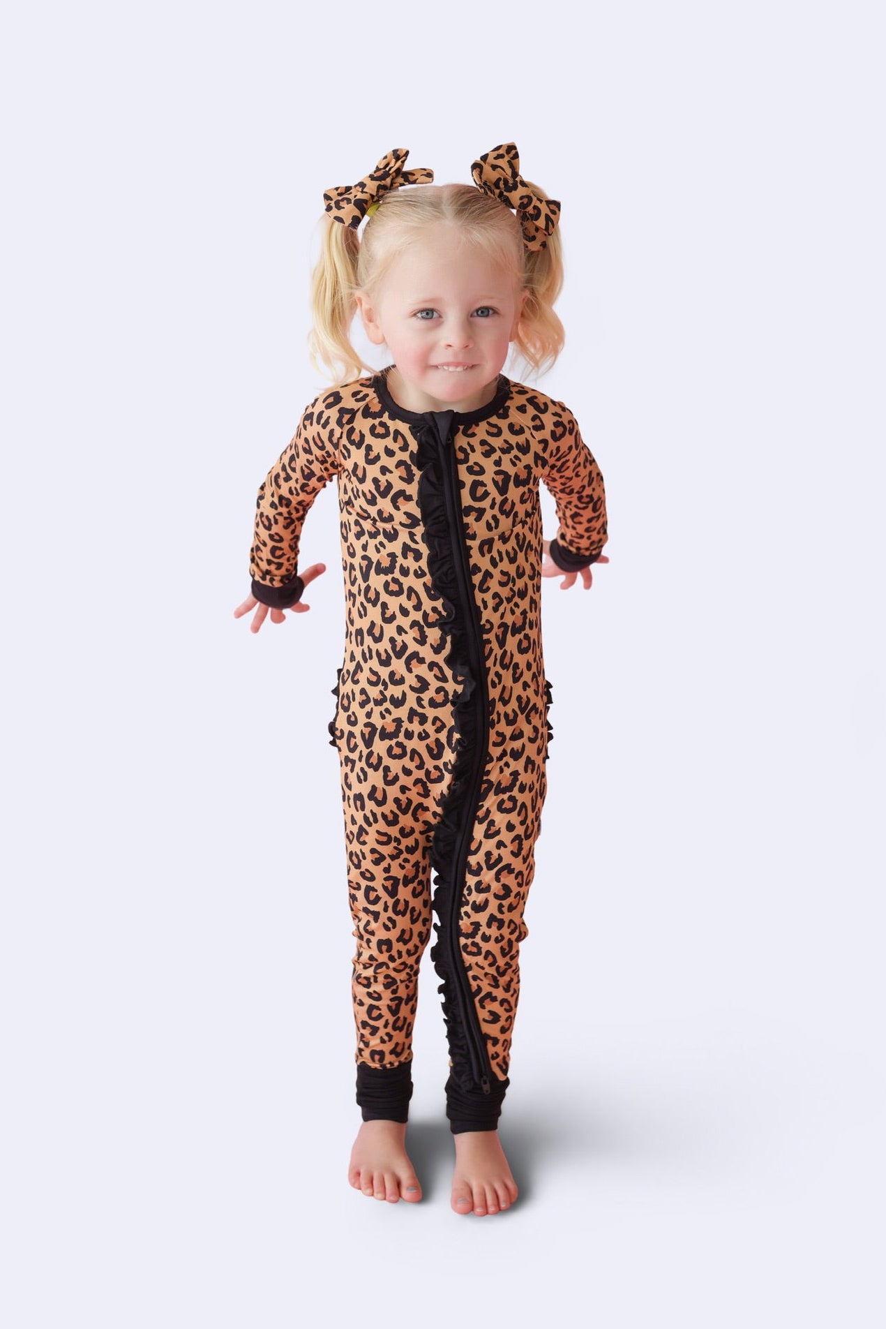 The Leopard Dream Ruffle Romper is made for little ones who love to stand out while staying oh-so cozy 🤎. Featuring a timeless leopard print with sweet ruffle detailing, this one-piece romper is crafted from our signature buttery-soft bamboo fabric for breathable, all-day (and night!) comfort—finished with playful ruffles for extra flair.