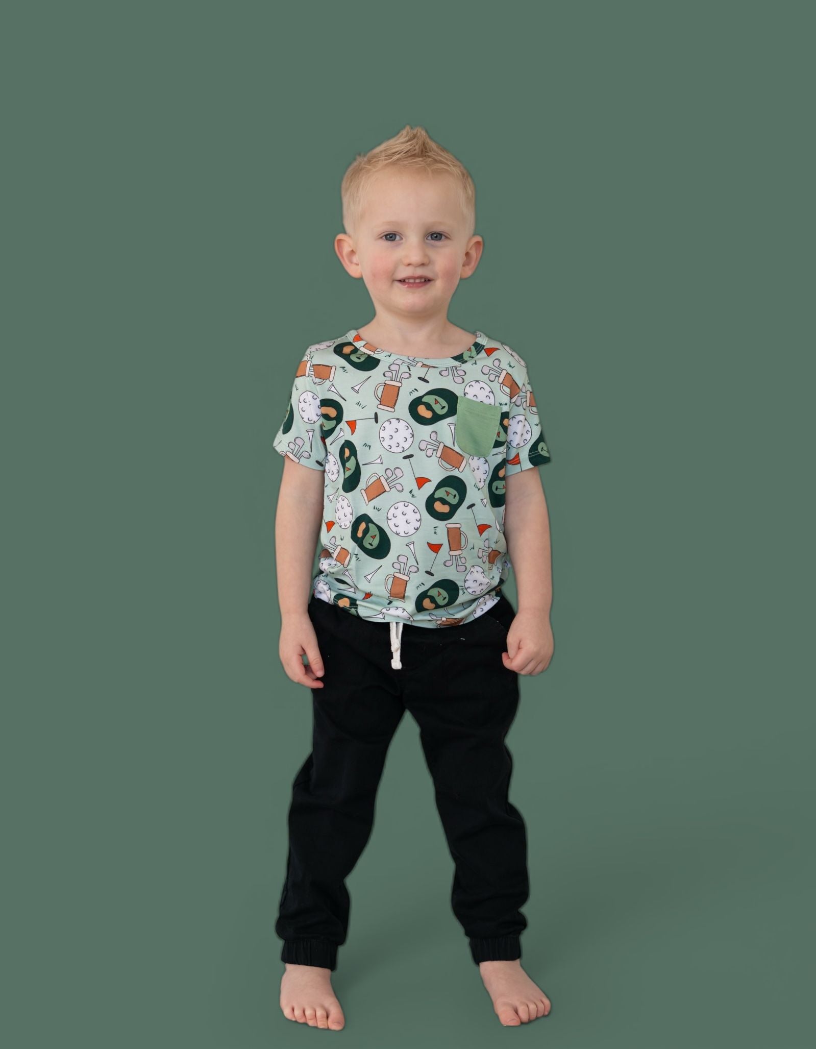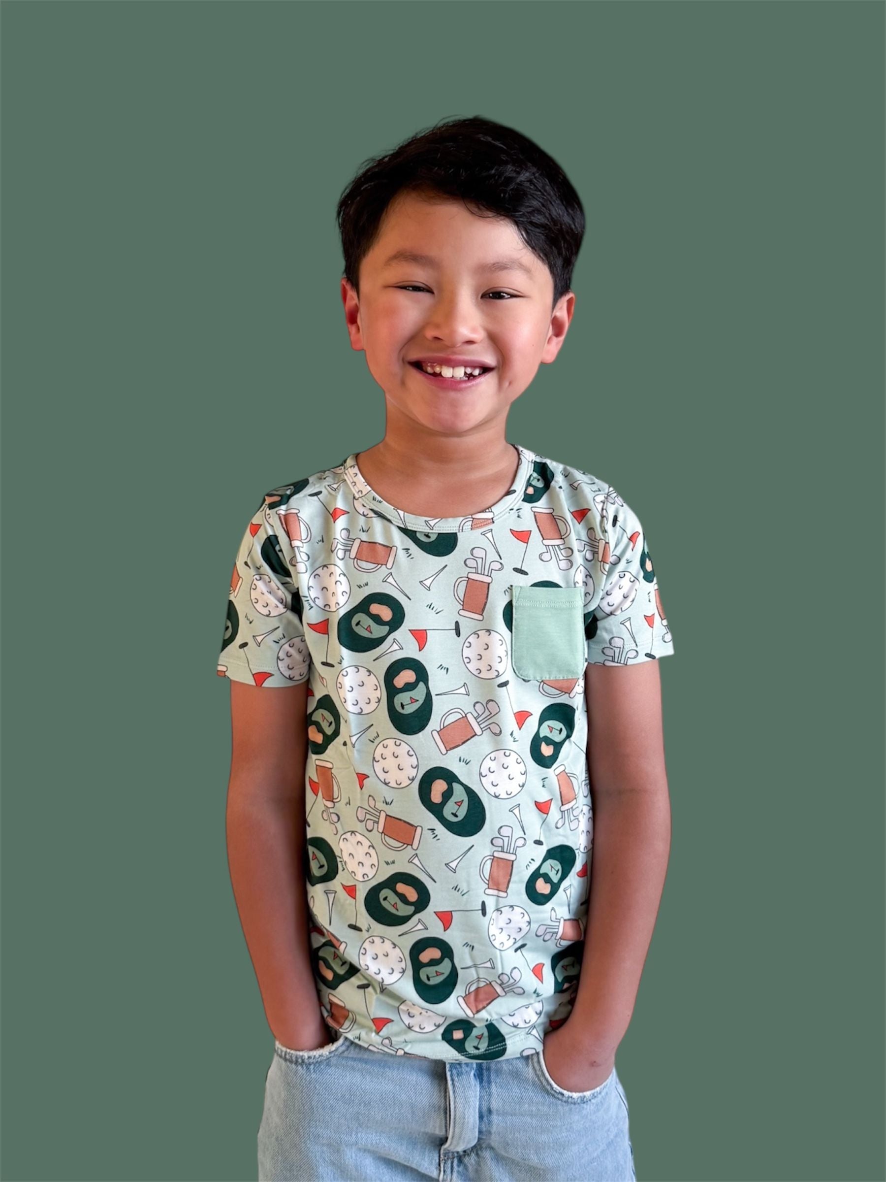 The Birdie & Bogeys Dream Pocket Tee is a laid-back essential with a playful, sporty twist. Featuring a charming golf-inspired print and a cute front pocket, this tee is crafted from our signature buttery-soft bamboo fabric for a breathable, ultra-comfy feel all day long. Perfect for play, lounging, and everyday adventures.