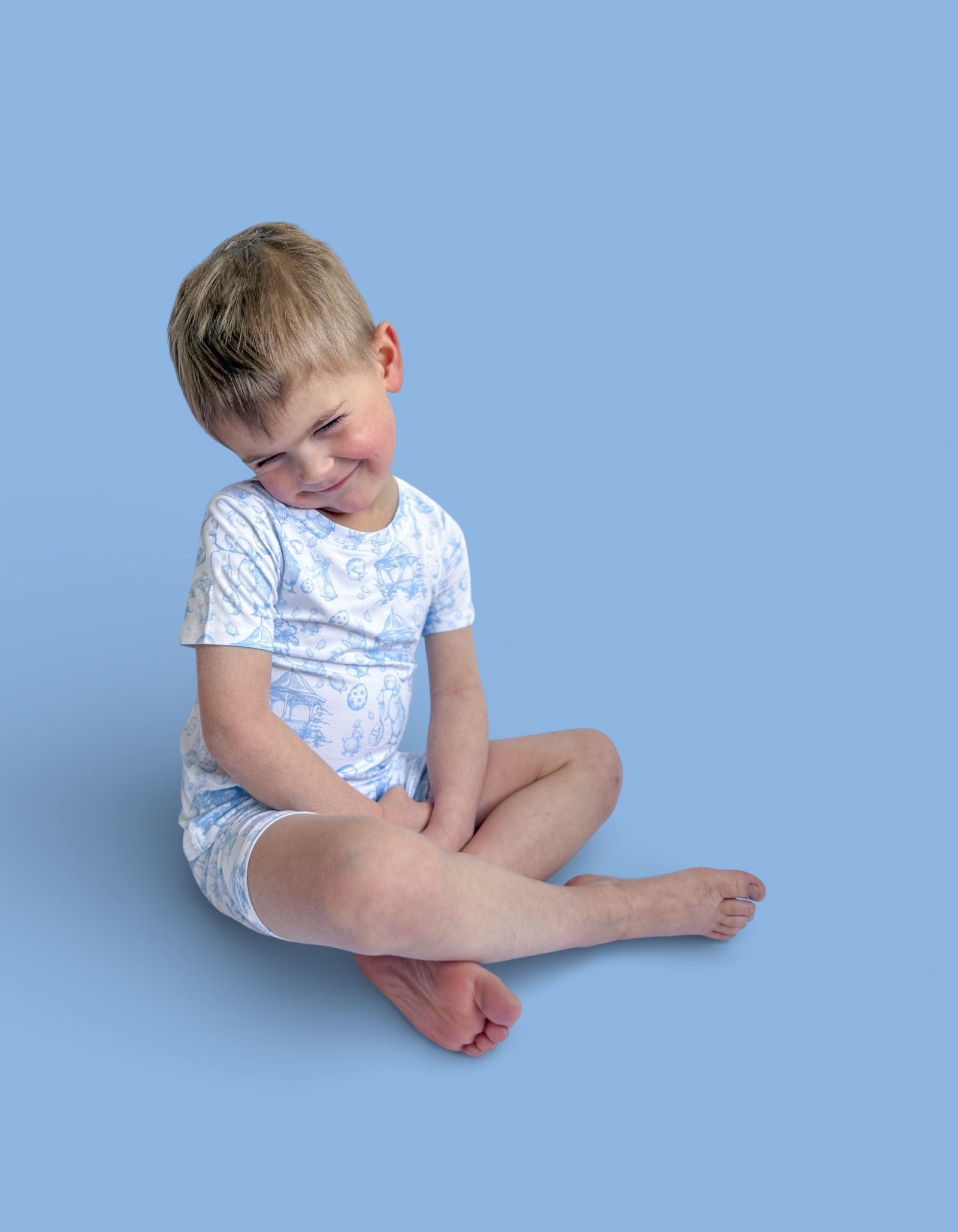 Elegant spring charm meets everyday comfort. Our Bluebell Easter Toile Dream Short Set features a classic toile-style print in soft blue, filled with bunnies, eggs, and whimsical Easter details — perfect for warm spring days, egg hunts, and memory-making moments. 🌿✨