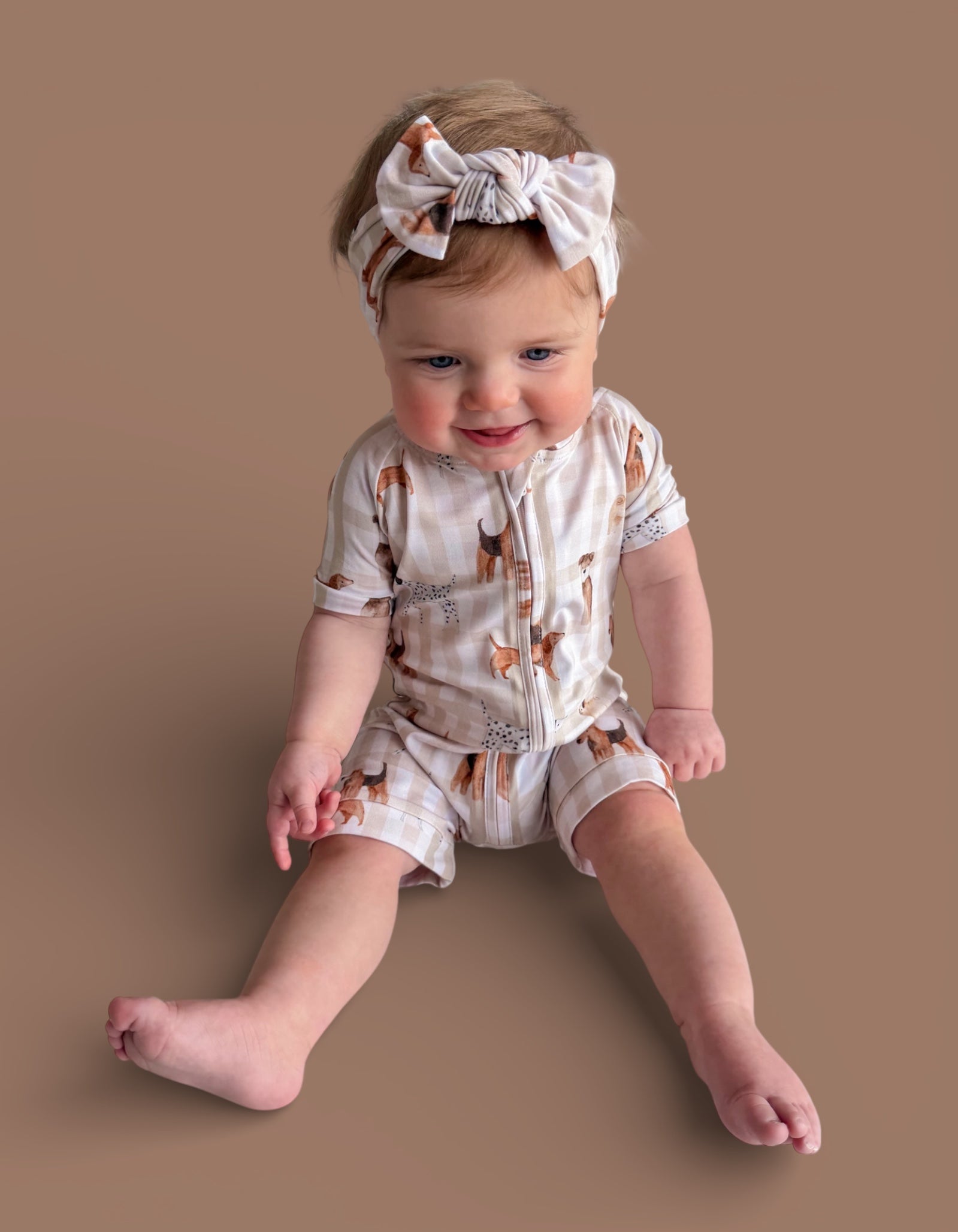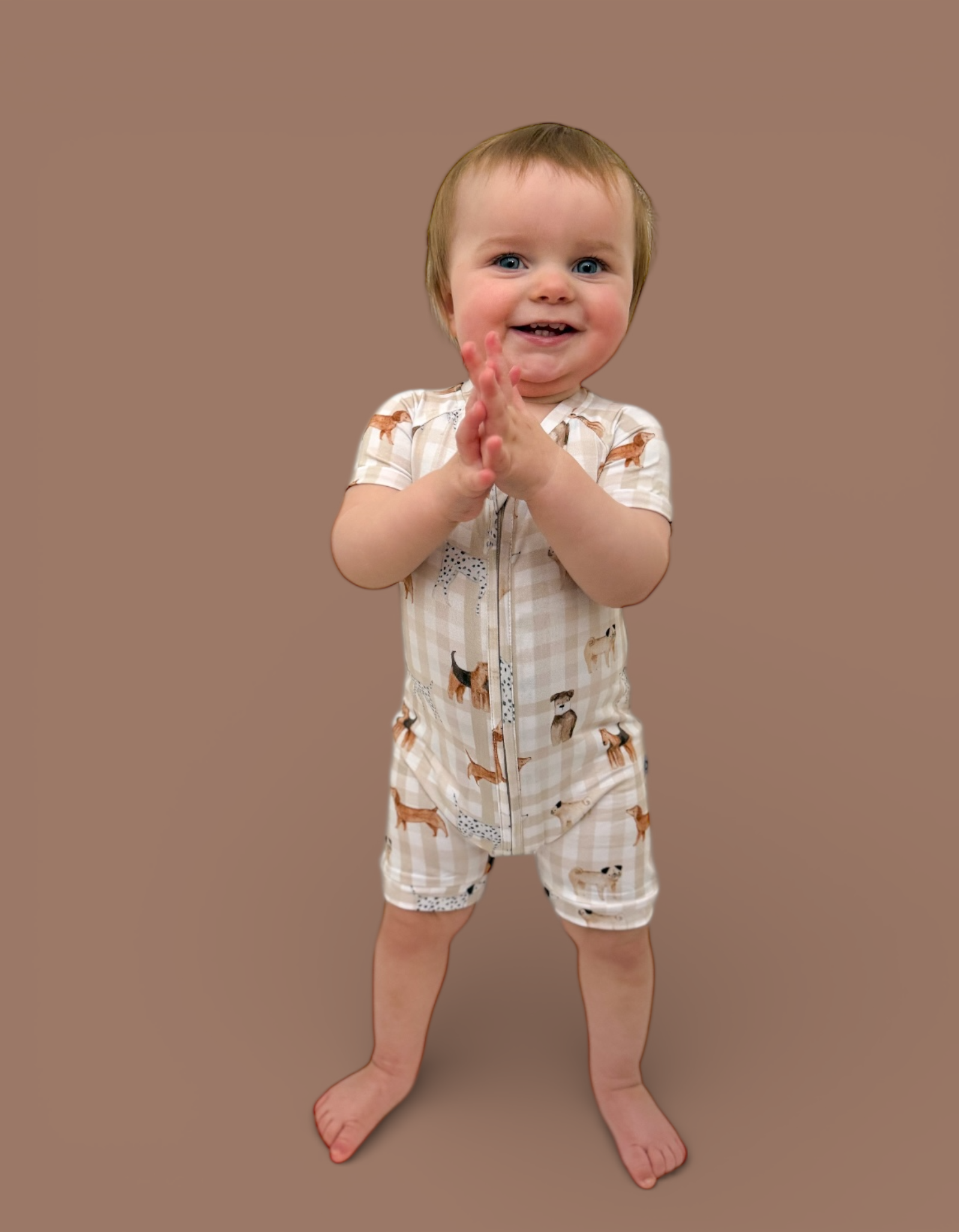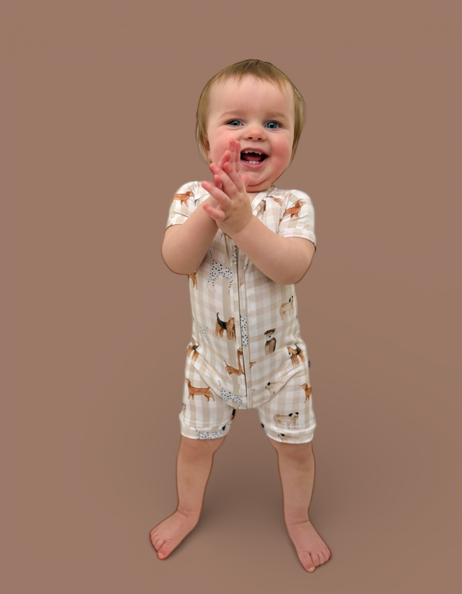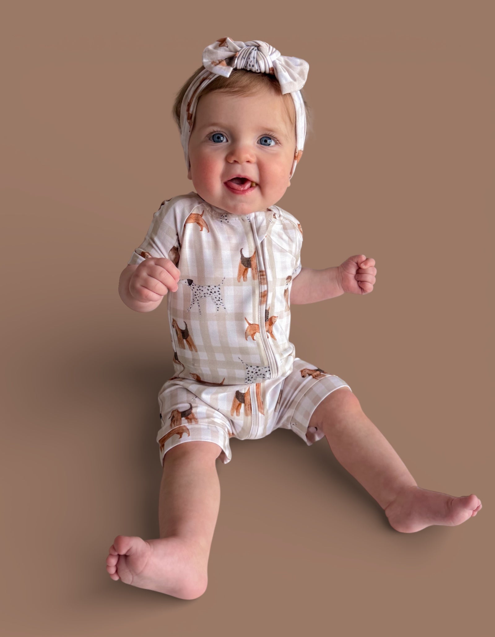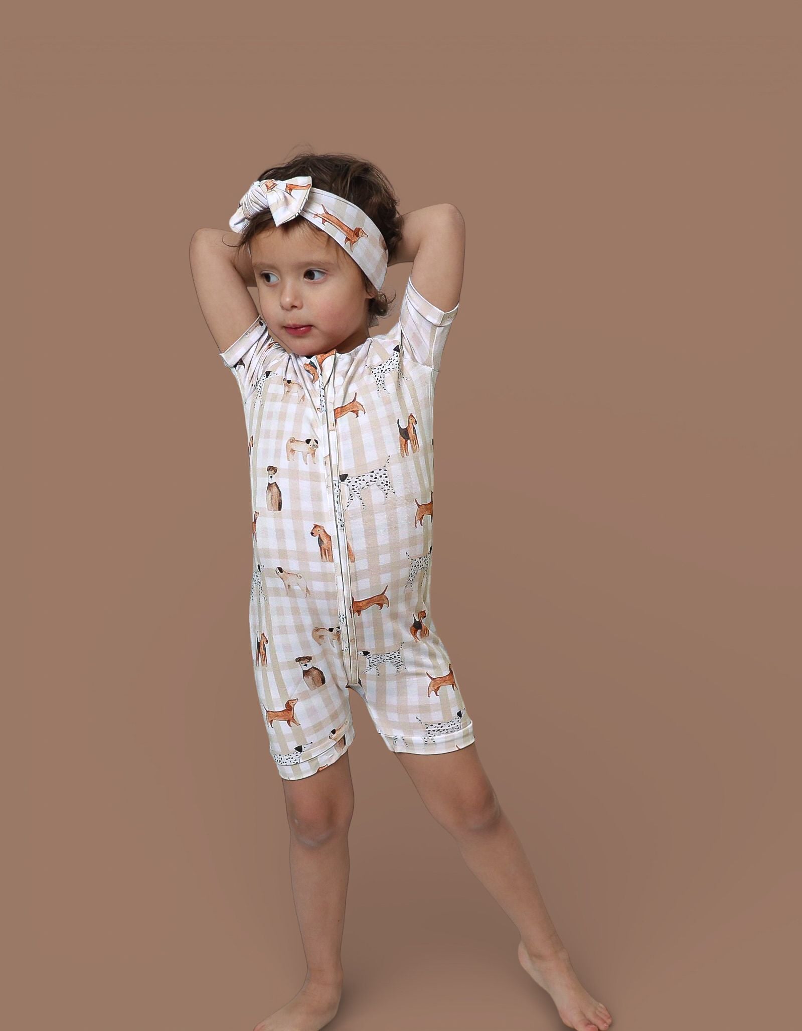 The Pawfect Pals Dream Shortie is a go-to favorite for play, sleep, and everything in between. Designed with our adorable Pawfect Pals puppy print on a classic neutral check, this one-piece shortie is made from our signature buttery-soft bamboo fabric for a breathable, cozy feel that keeps little ones comfy day and night.