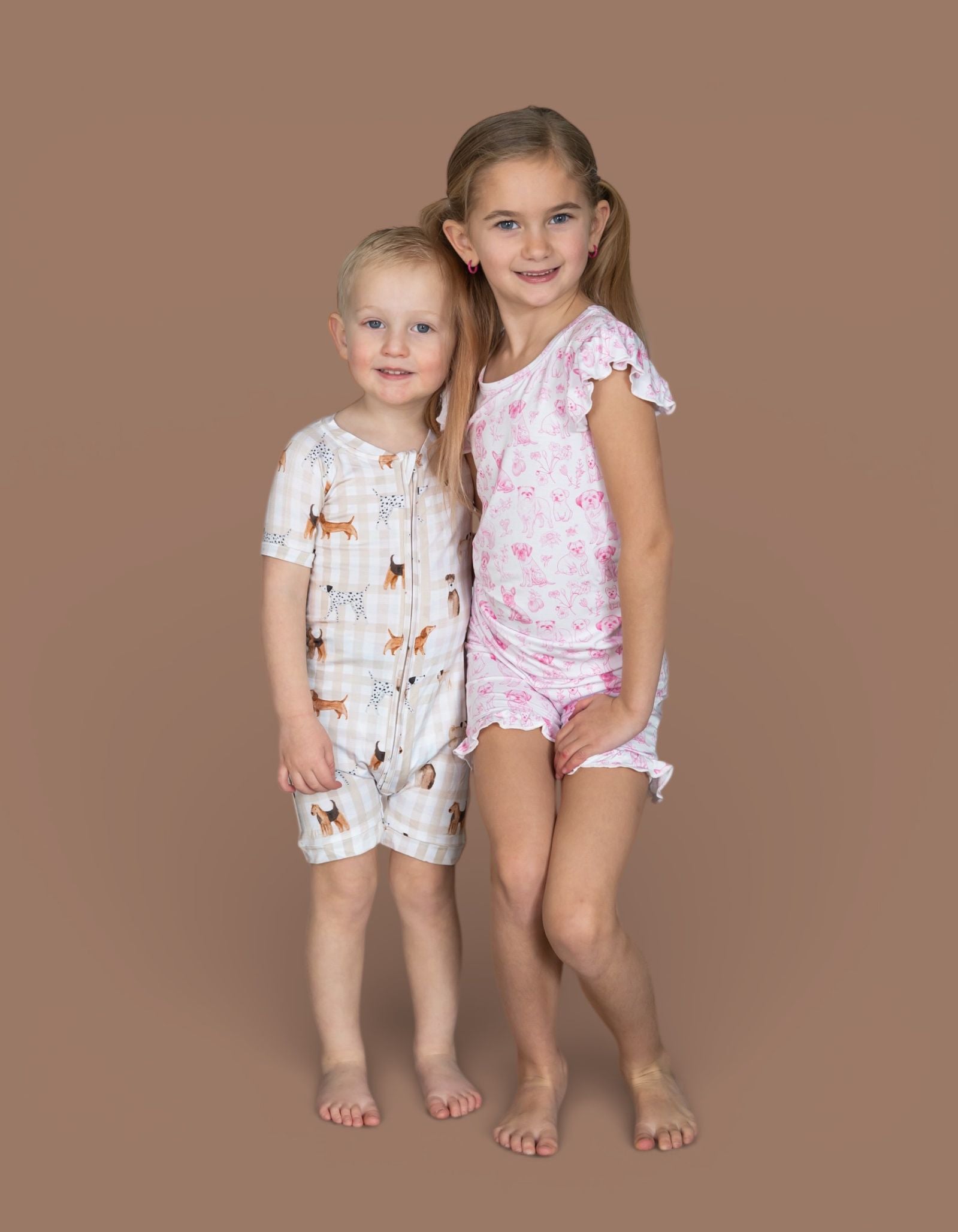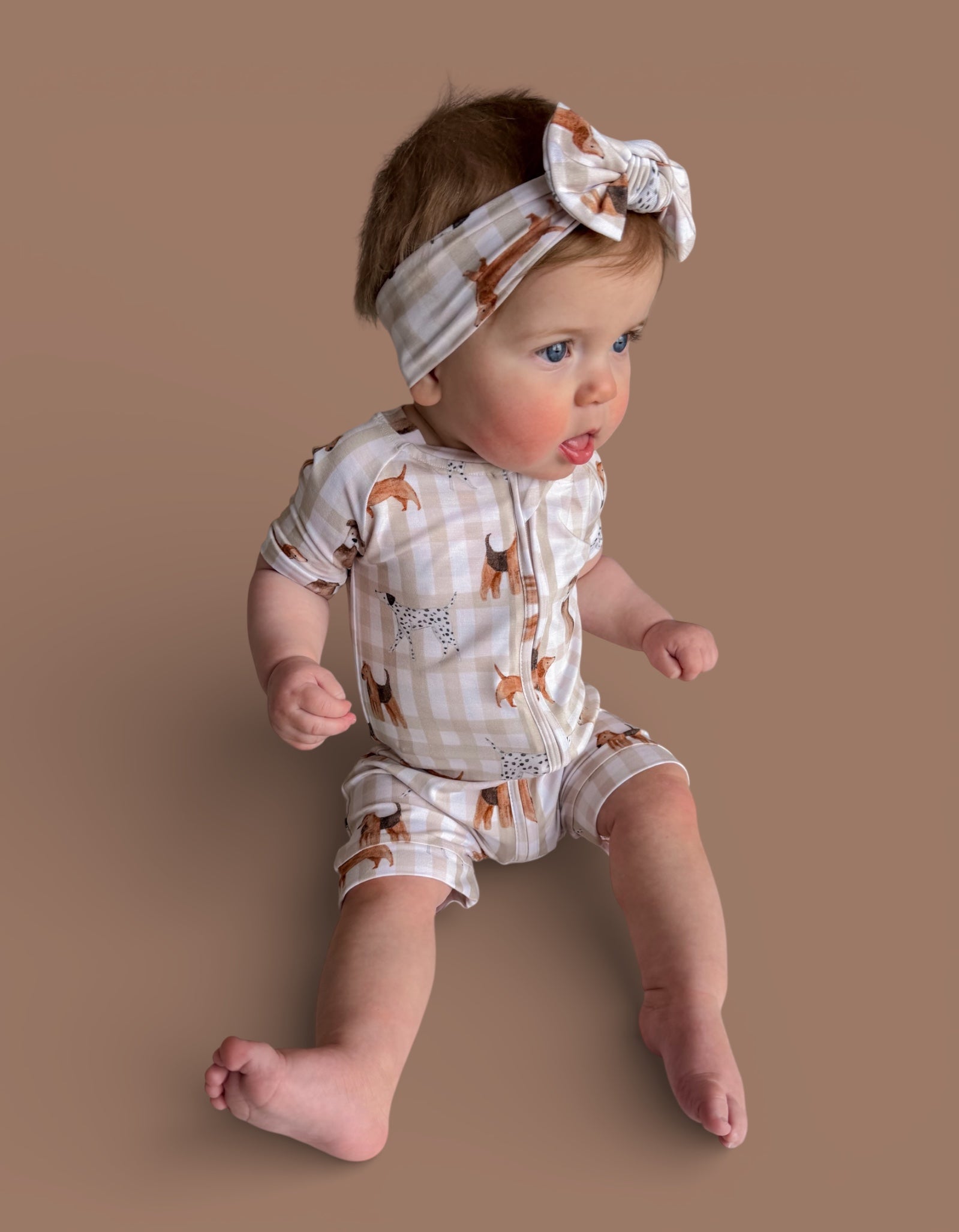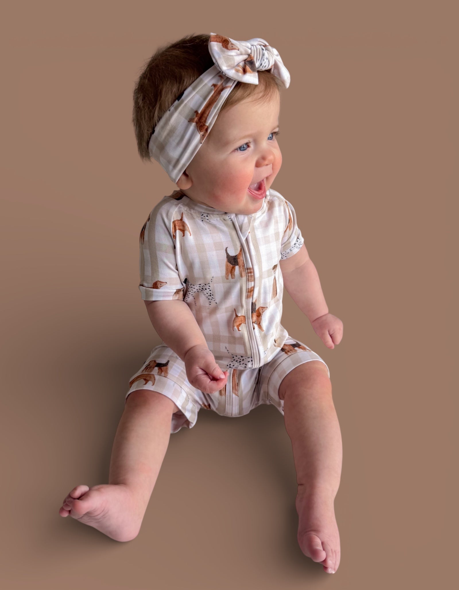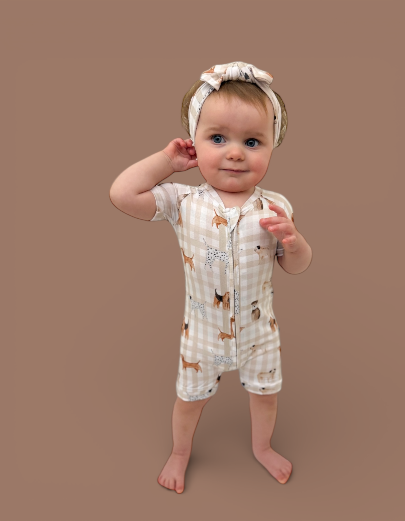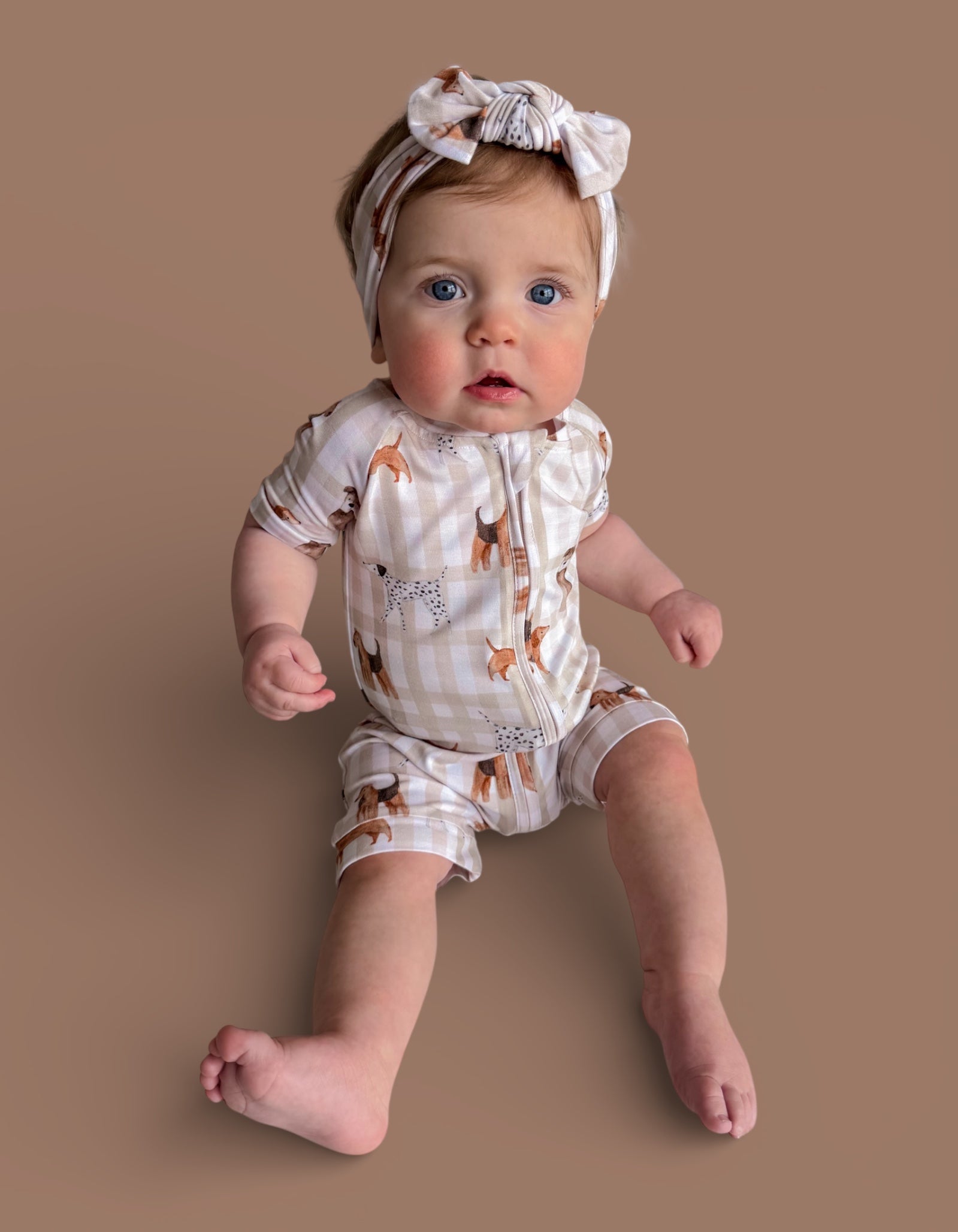 The Pawfect Pals Dream Shortie is a go-to favorite for play, sleep, and everything in between. Designed with our adorable Pawfect Pals puppy print on a classic neutral check, this one-piece shortie is made from our signature buttery-soft bamboo fabric for a breathable, cozy feel that keeps little ones comfy day and night.