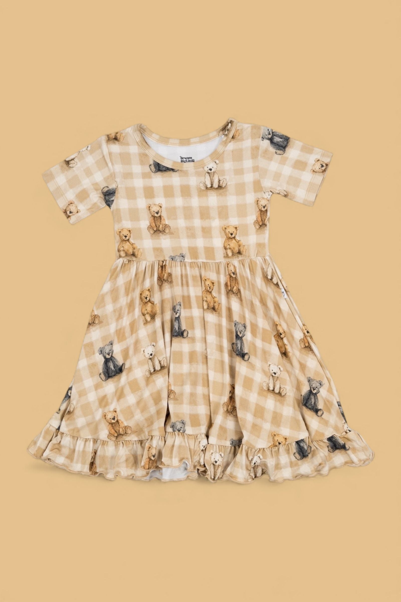 Checks, ruffles, and teddy bear charm! The Teddy Check Dream Ruffle Dress is made from our signature buttery-soft bamboo fabric and features an adorable teddy bear + gingham print. Finished with delicate ruffle details and a flowy fit, it’s perfect for playdates, picture days, or twirling into sweet dreams.