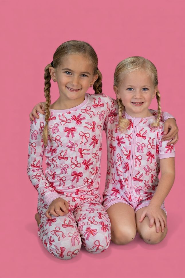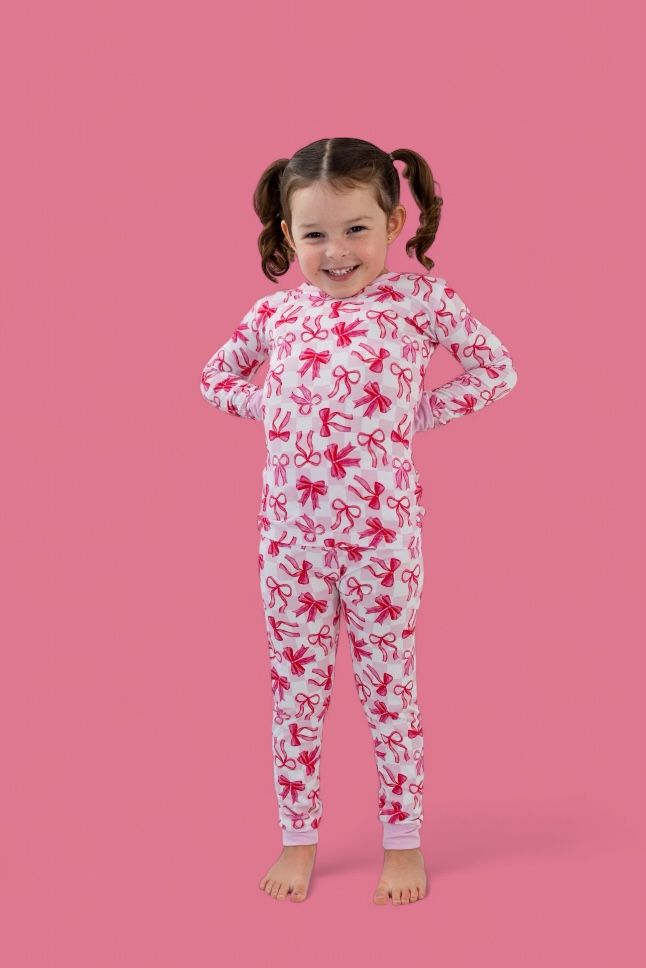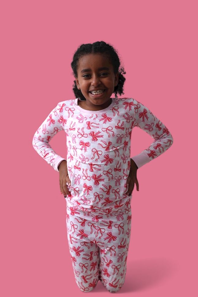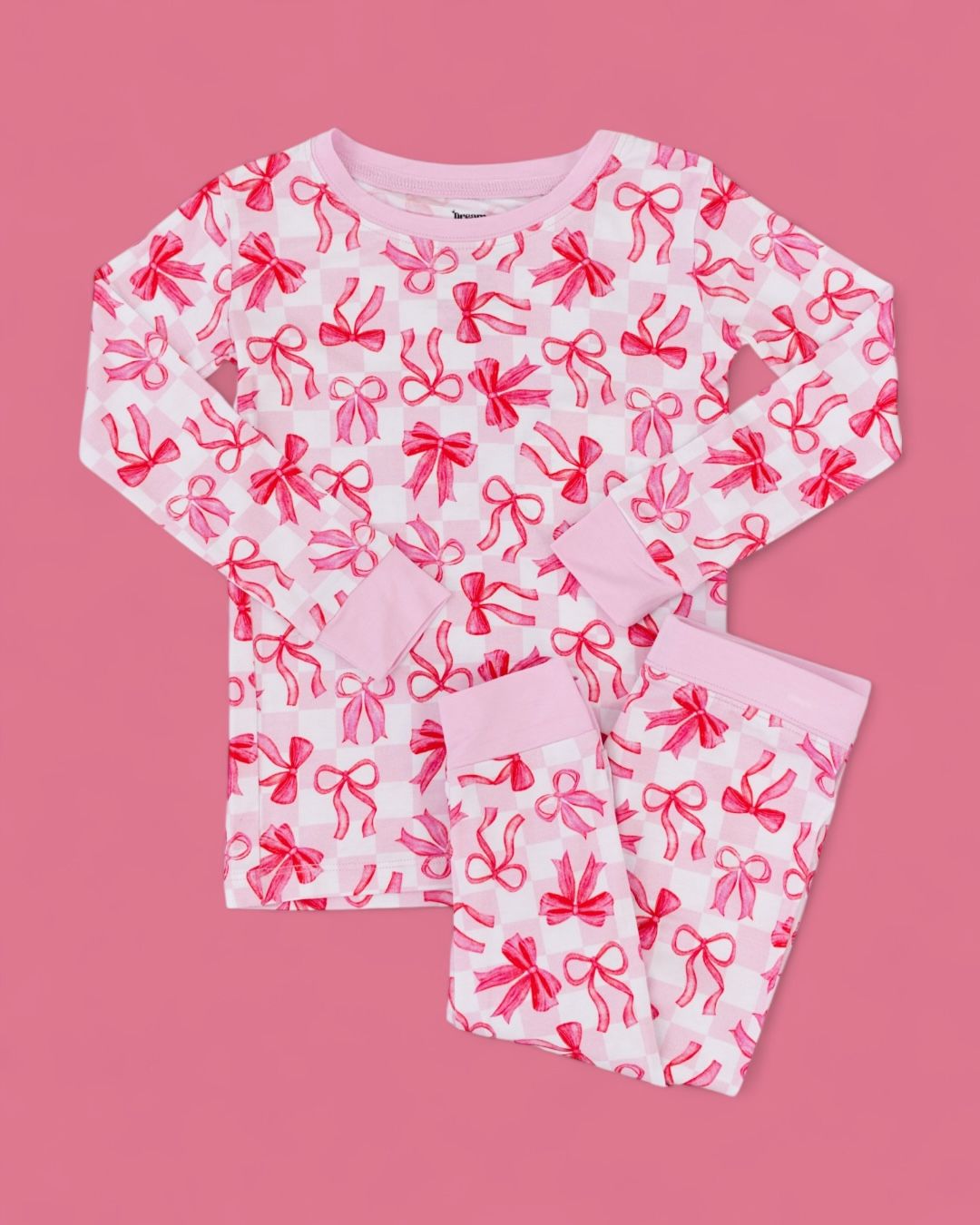 Pretty in pink and ready for sweet dreams! The Bow Checkered Charm Dream Set features an all-over bow print in cheerful pink tones, bringing a playful twist to bedtime. Made from our buttery-soft, breathable bamboo fabric, this set is as cozy as it is cute.