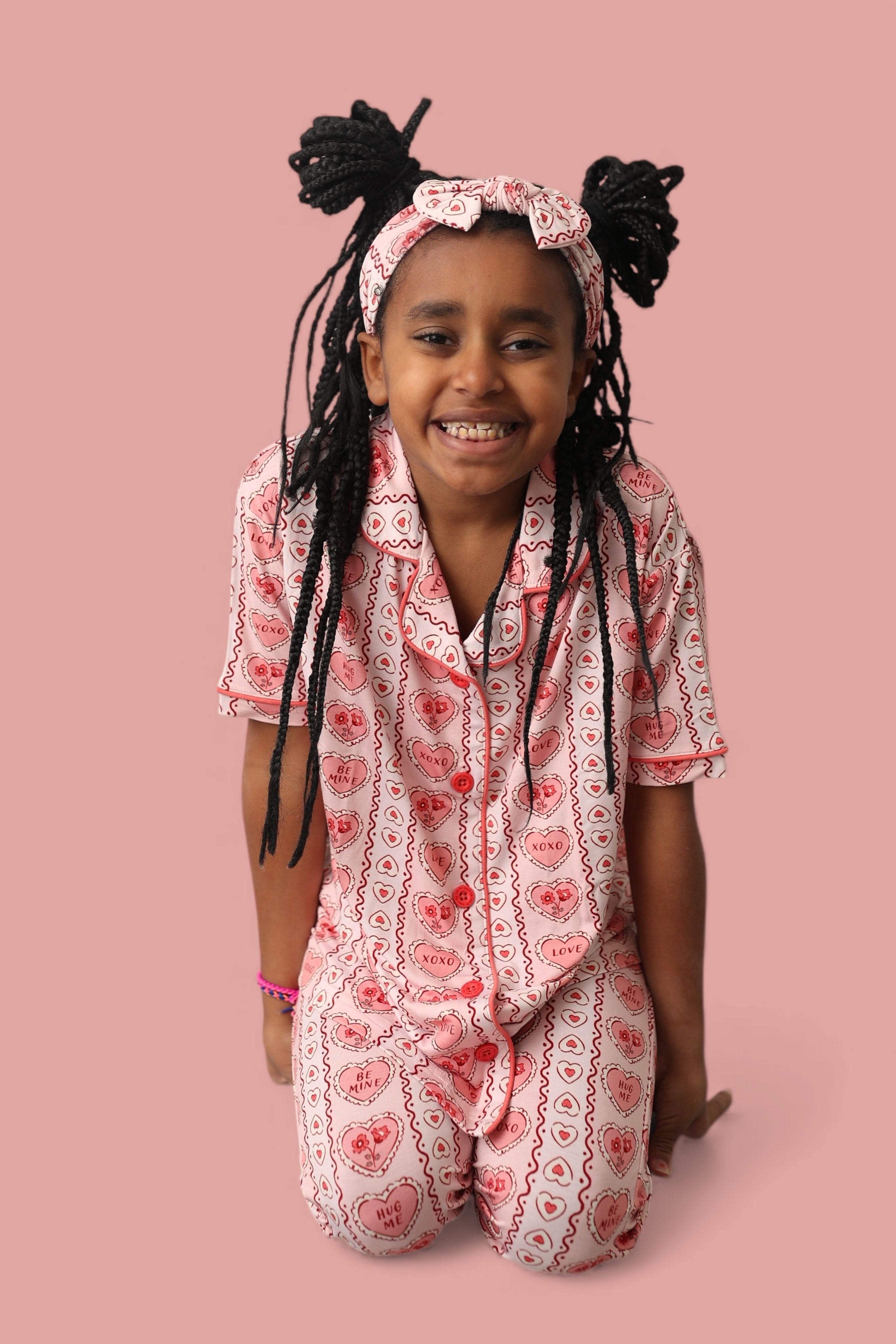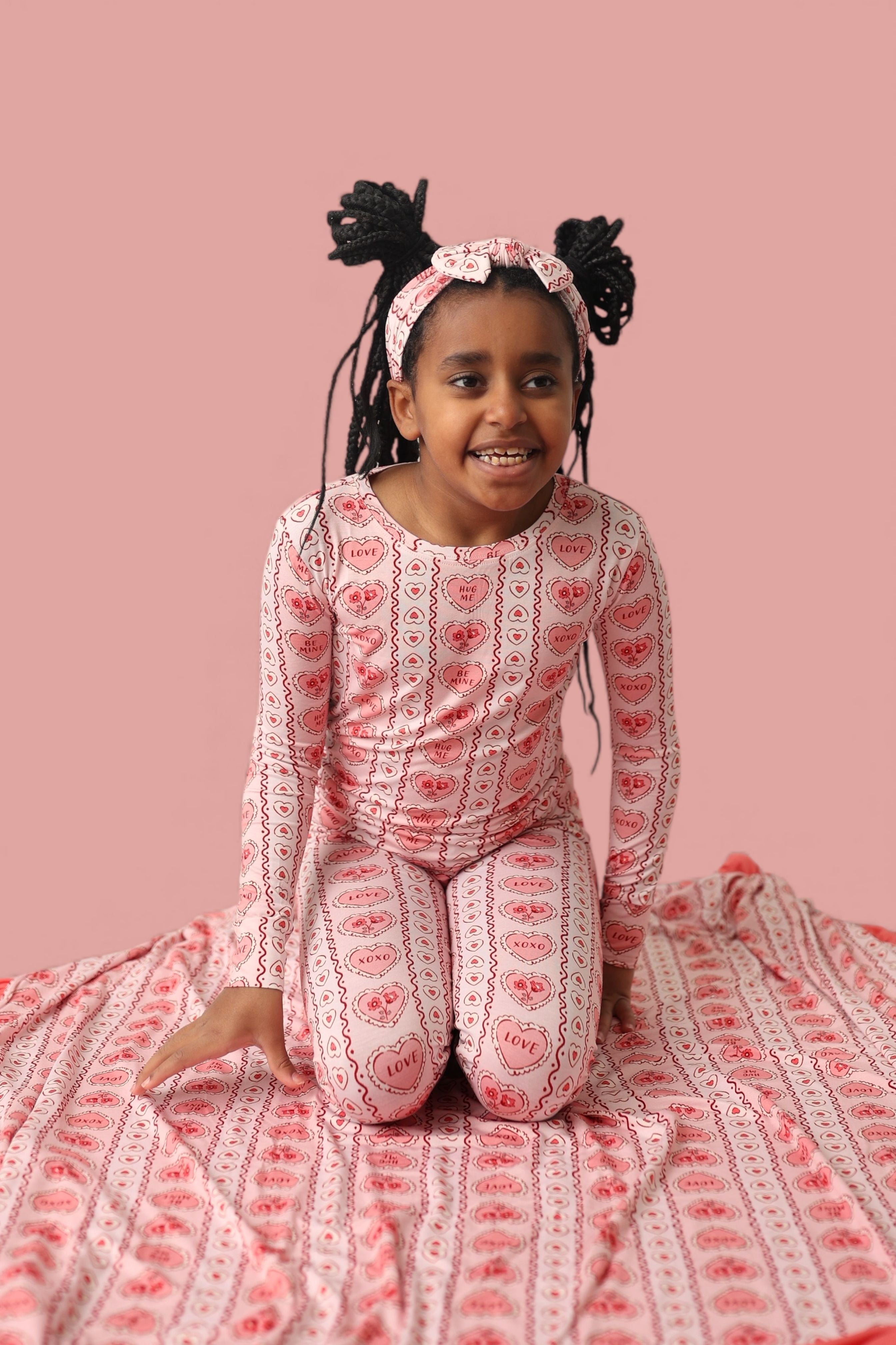 Top off your little one’s look with the sweetest accessory! The Candy Hearts Dream Bow features our playful pastel candy-heart print with sayings like “Love,” “XOXO,” and “Be Mine” on buttery-soft fabric.