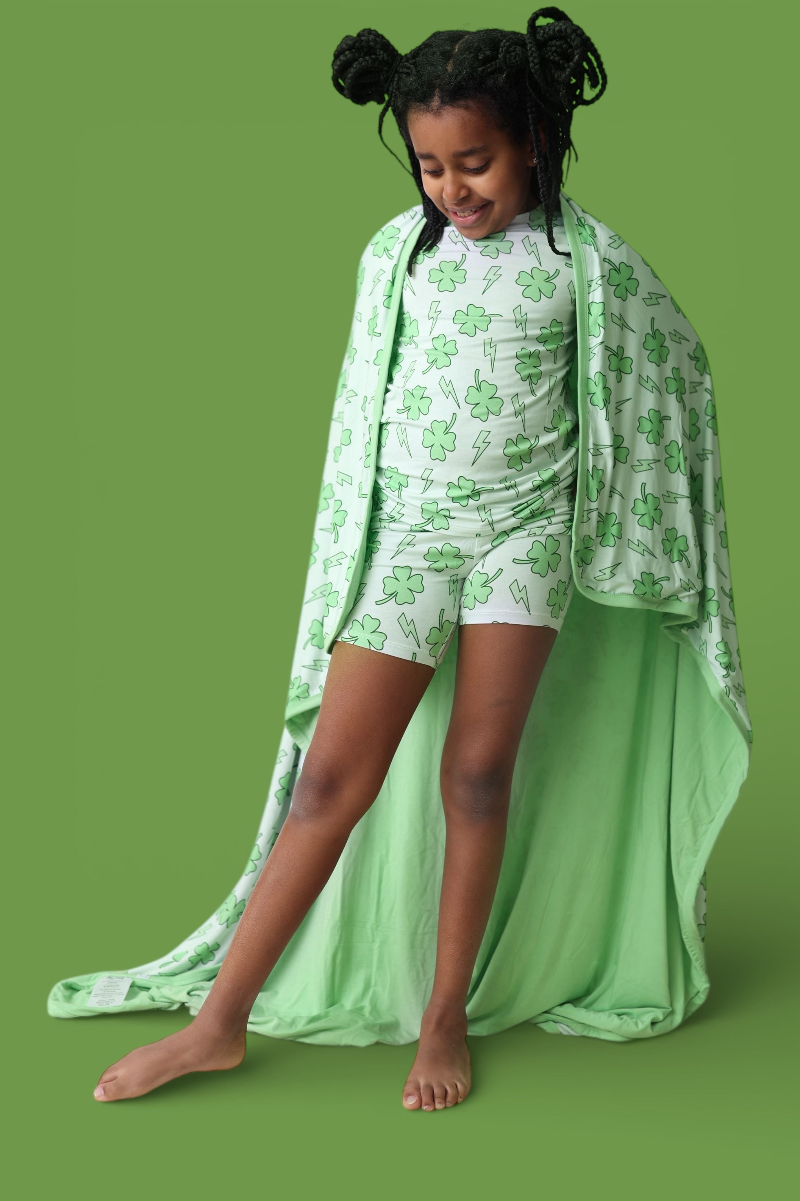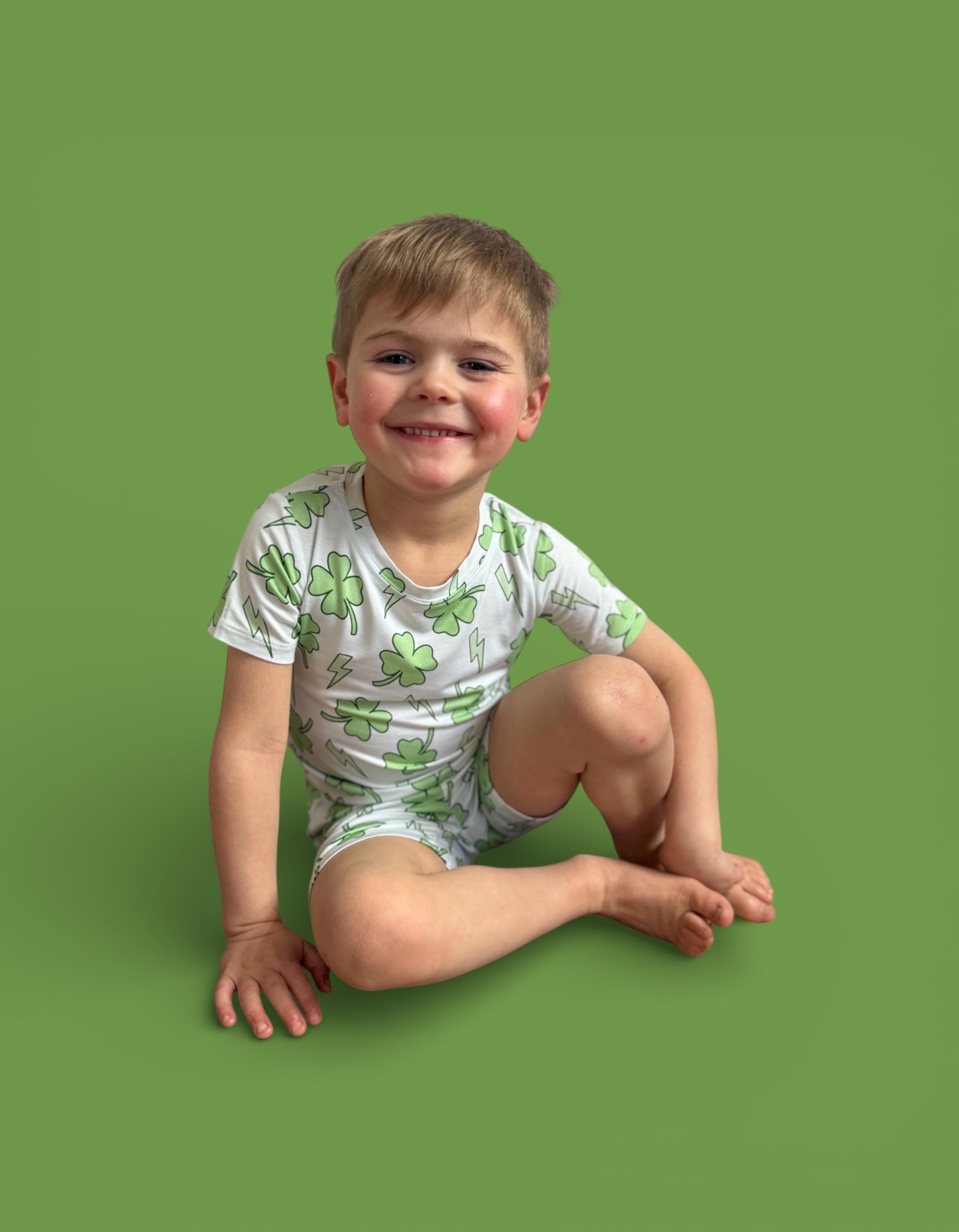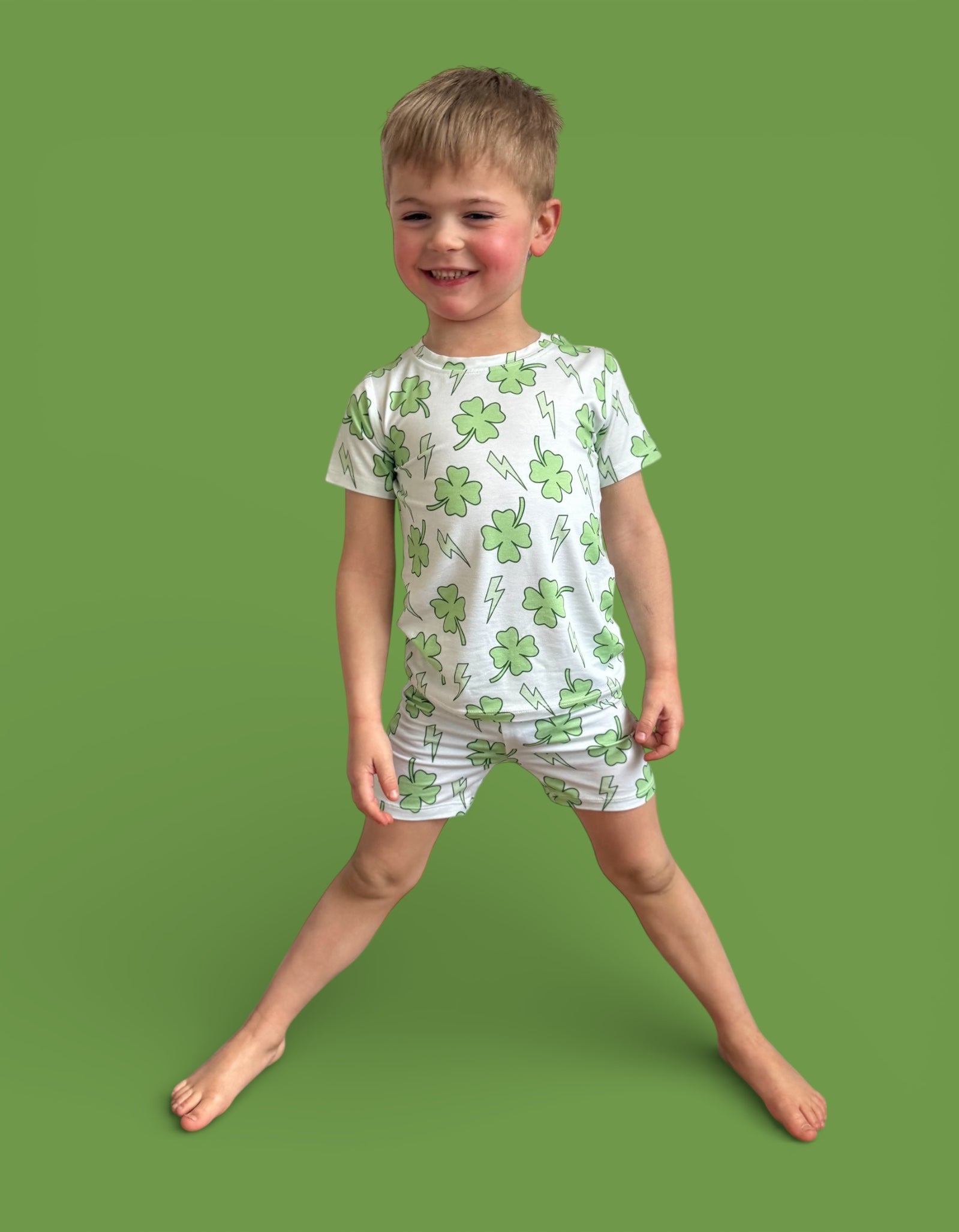 Fresh, fun, and full of lucky vibes! The Shamrock Shock Dream Short Set features matching top-and-short pieces covered in bold shamrocks and lightning bolts, creating the perfect warm-weather look for St. Patrick’s Day, playtime, and everyday comfort. Soft, breathable, and stretchy, this set keeps your little one cool, comfy, and ready for all the fun. 💚