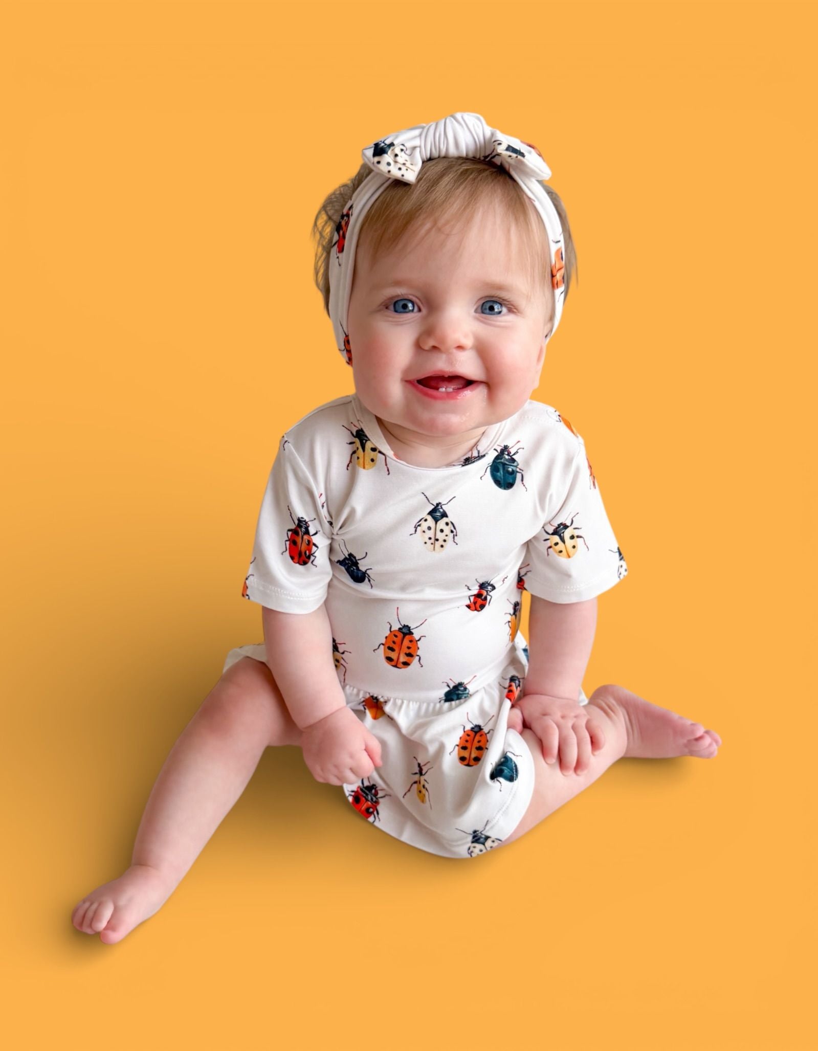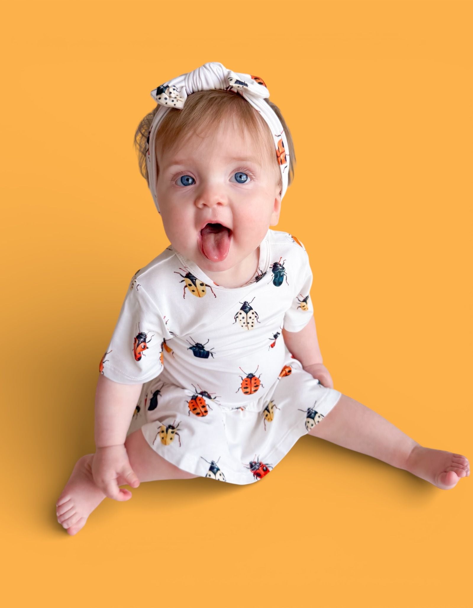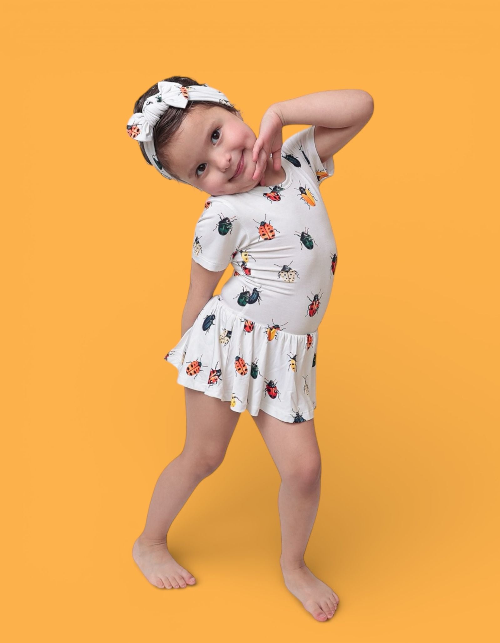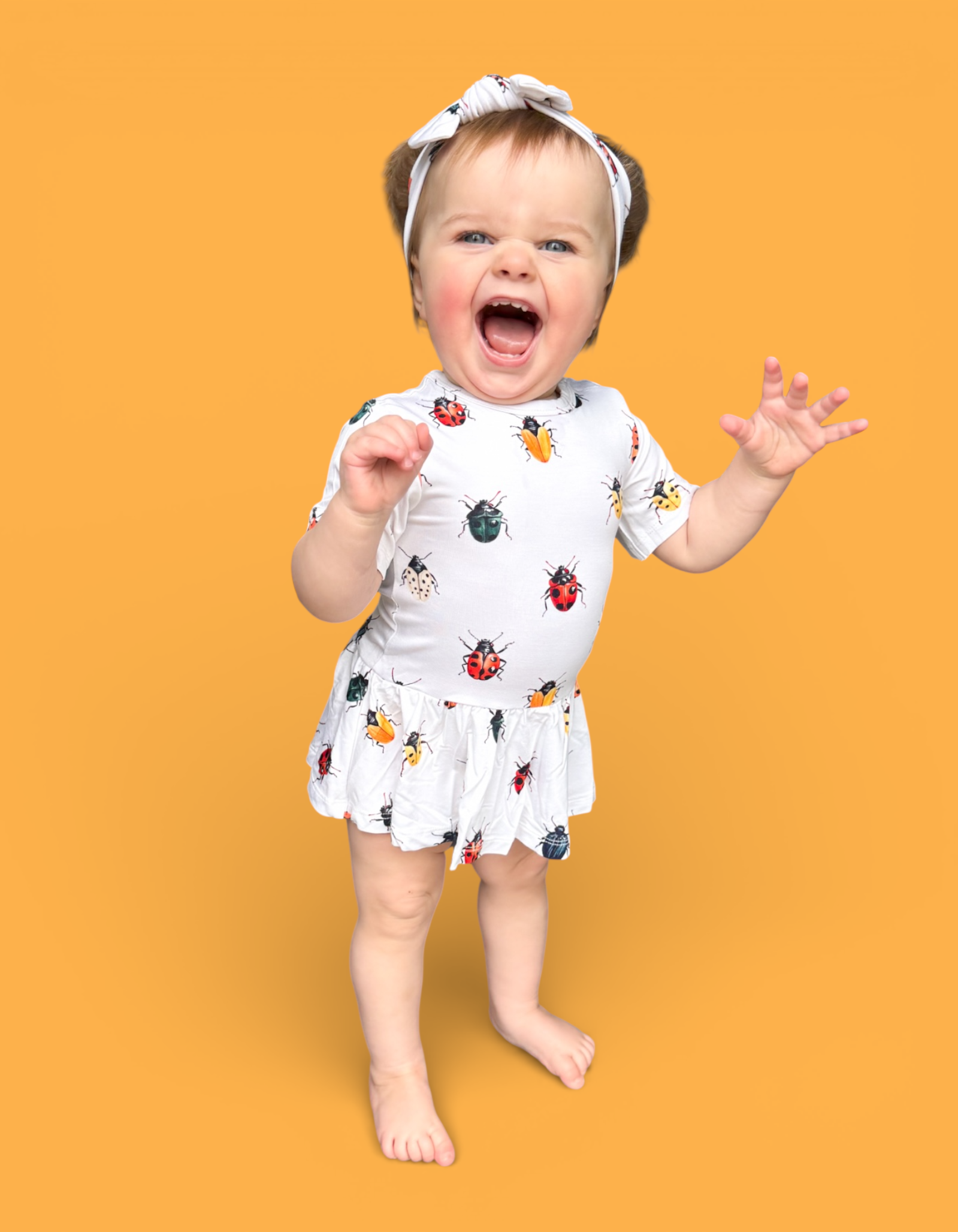 The Bug Life Dream Bodysuit Dress blends playful charm with everyday comfort for curious little explorers. Featuring our whimsical bug print and a dress-style silhouette with a comfy bodysuit base, this one-piece is crafted from signature buttery-soft bamboo fabric for a breathable, gentle feel all day long.