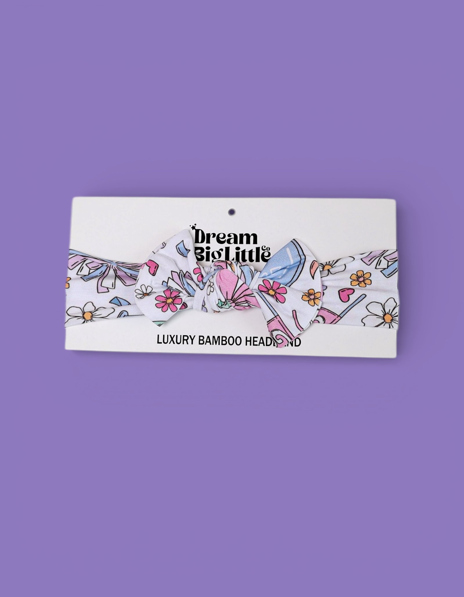 The Pom Power Dream Bow adds the cutest burst of fun to any outfit 💖. Featuring a playful pom-pom, bow, and cheer-inspired print, this soft bow is made from our signature buttery-soft bamboo fabric for a gentle, comfy fit that stays sweet all day long ✨.