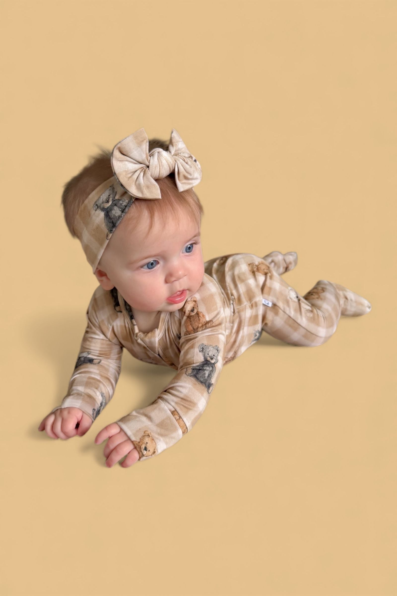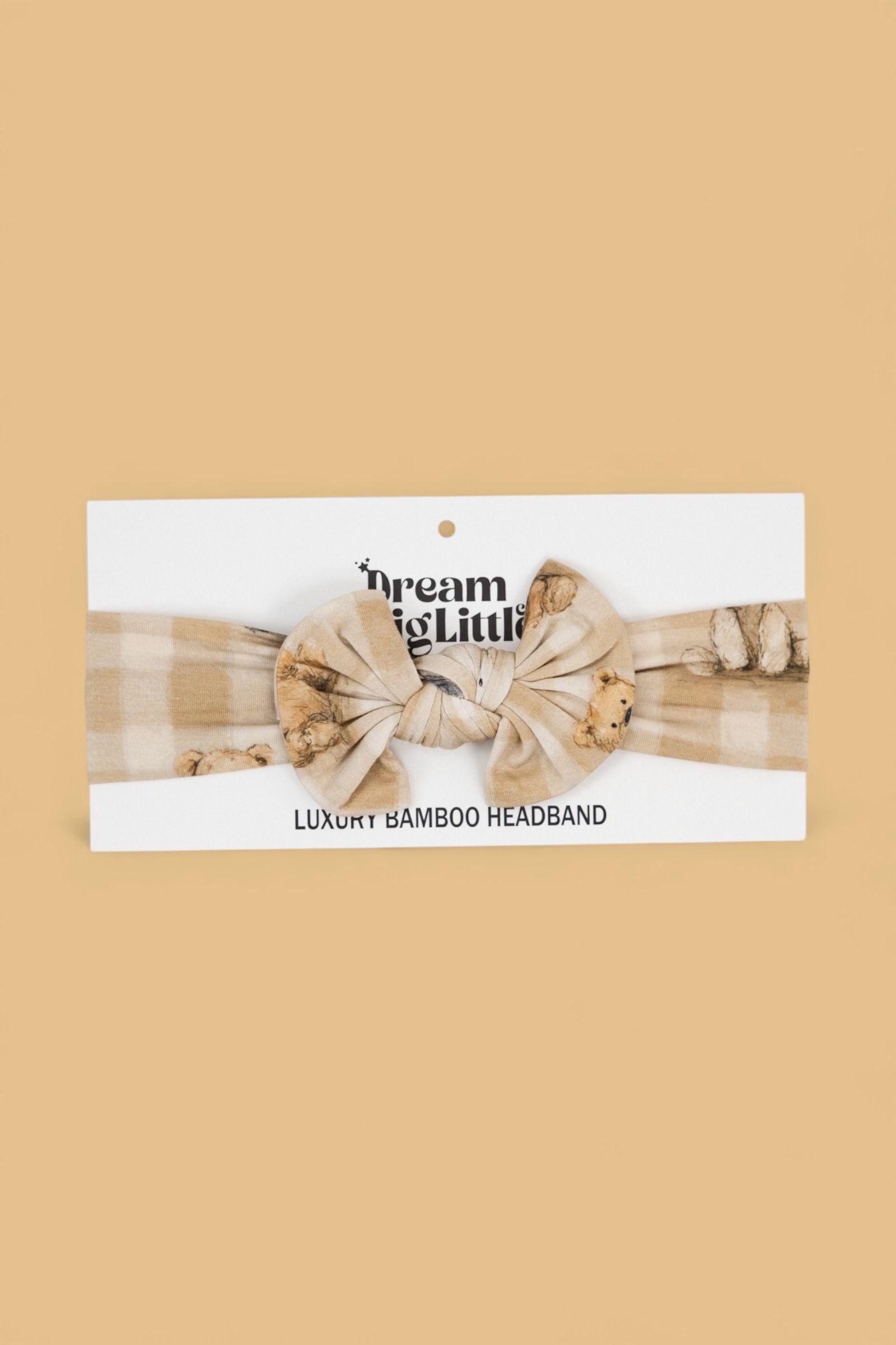 The perfect finishing touch for every bear-y cute look! The Teddy Check Dream Bow features our darling teddy bear + gingham print on buttery-soft bamboo fabric. It’s soft, secure, and oh-so sweet for everyday wear or special moments.