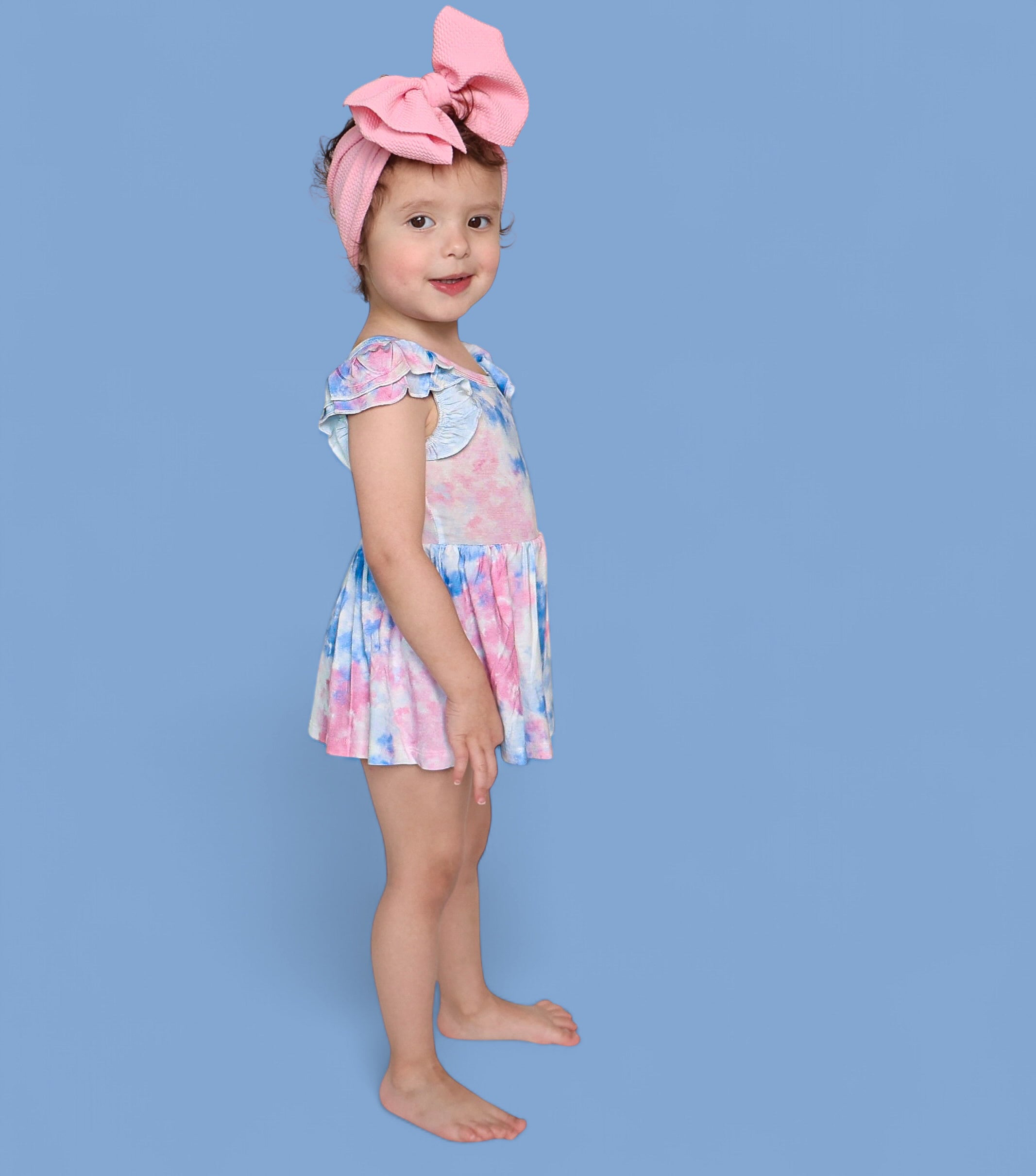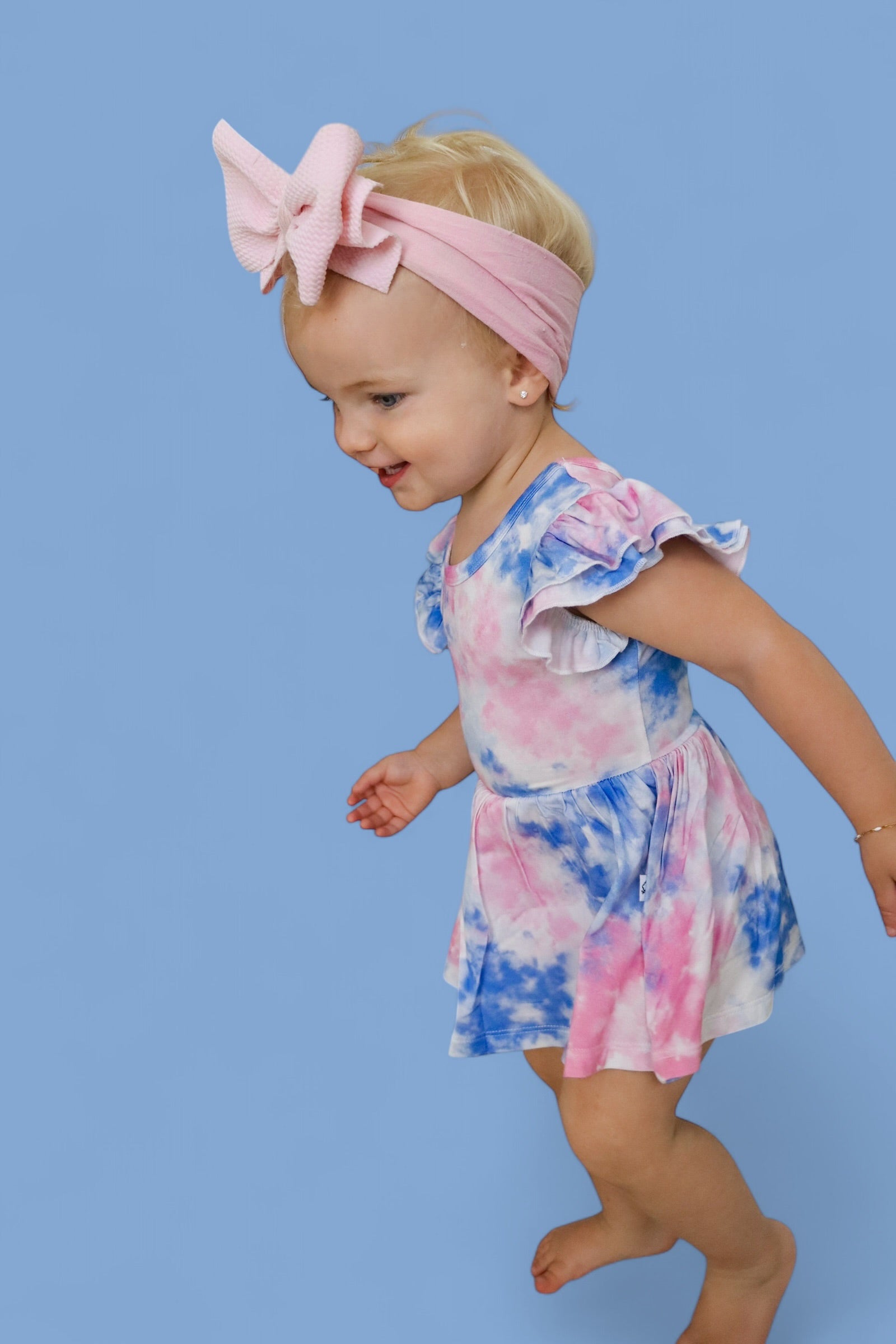 Dress your babe in soft, pastel perfection with our Cotton Candy Tie Dye Dream Cap Sleeve Bodysuit Dress. Made from our signature bamboo viscose, this dress is incredibly soft, breathable, and gentle on sensitive skin—designed for all the cuddles, twirls, and tummy time moments.