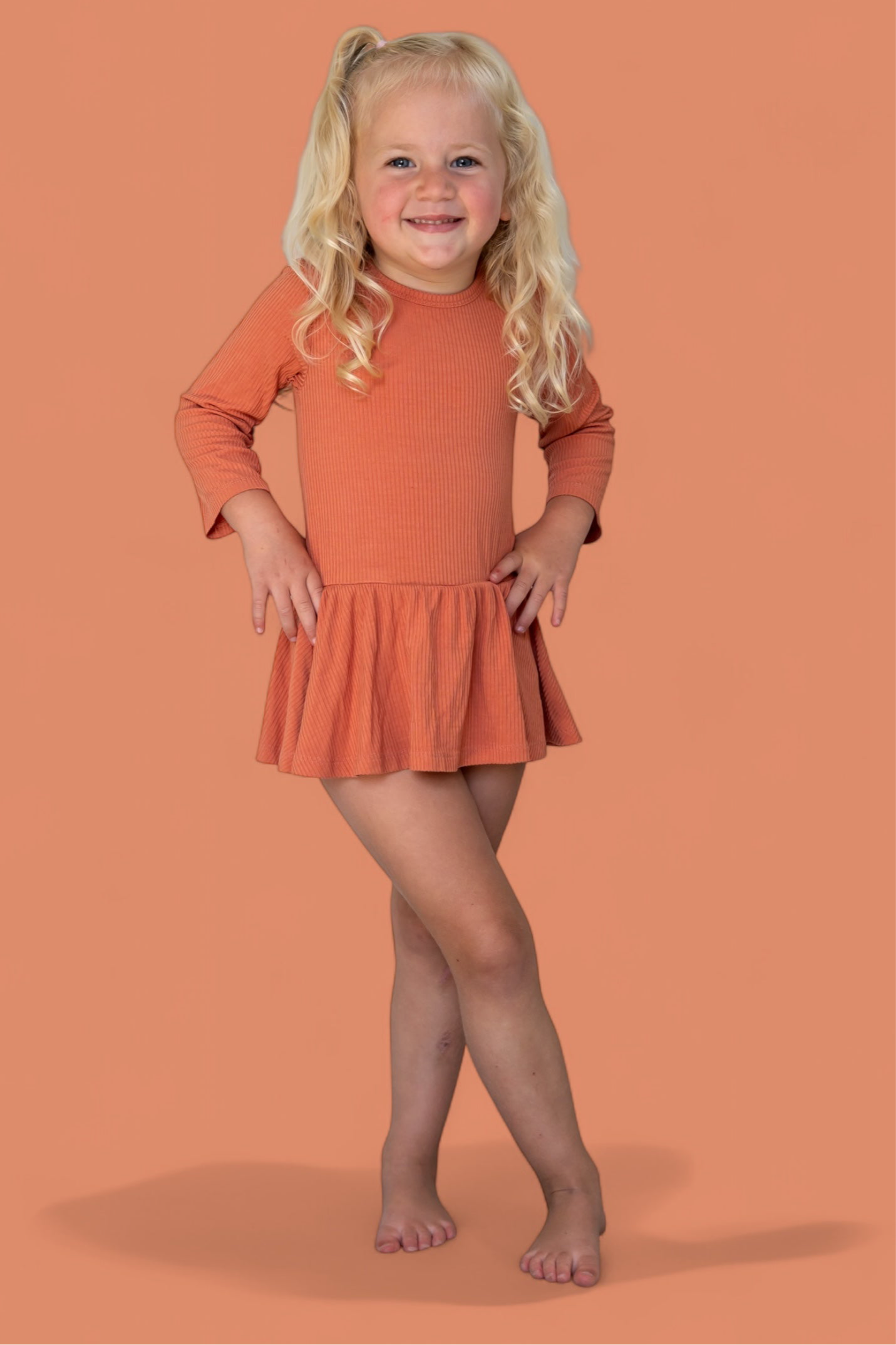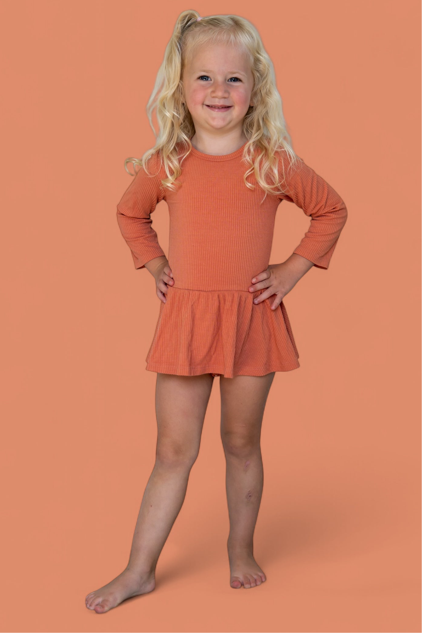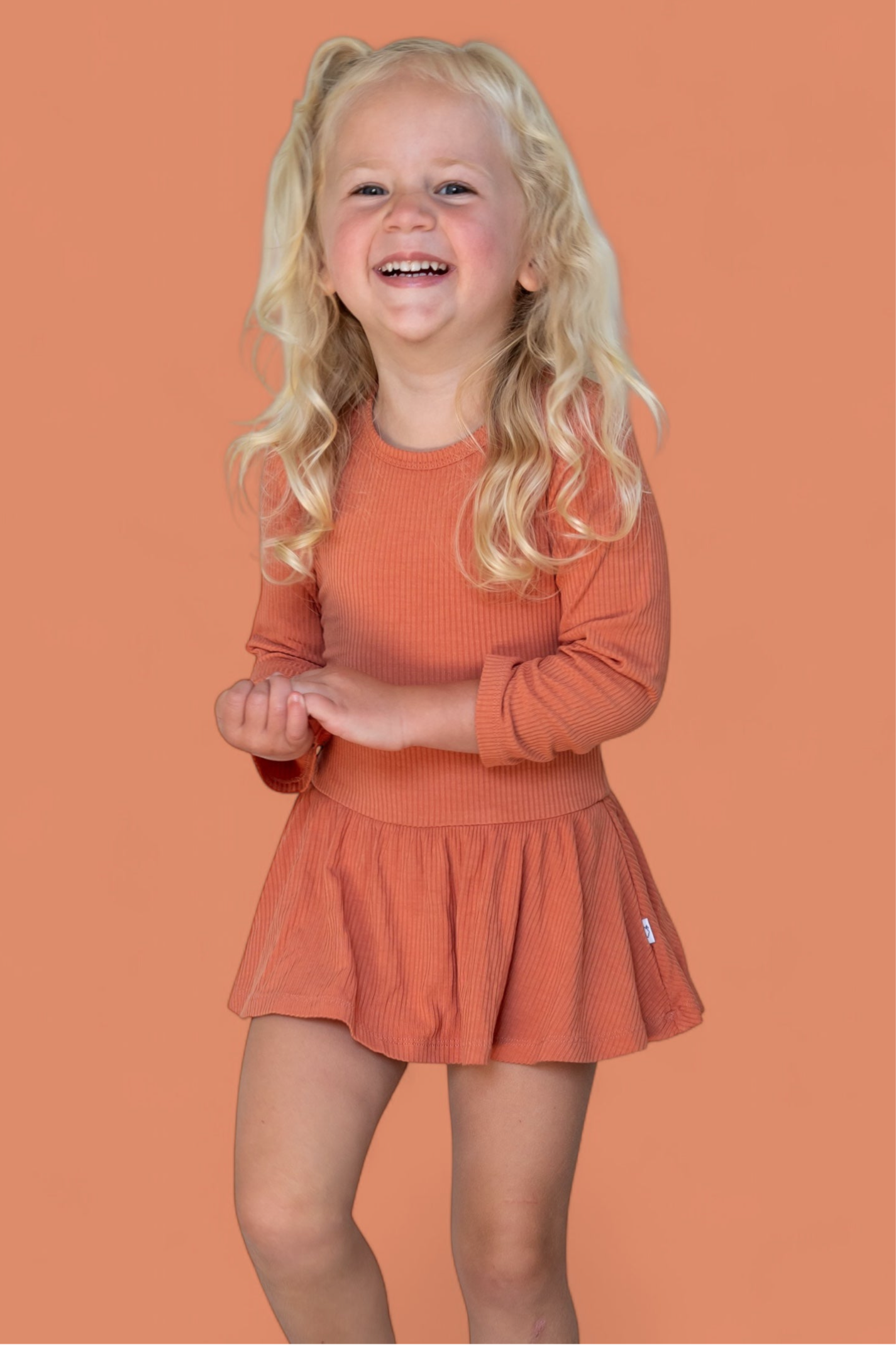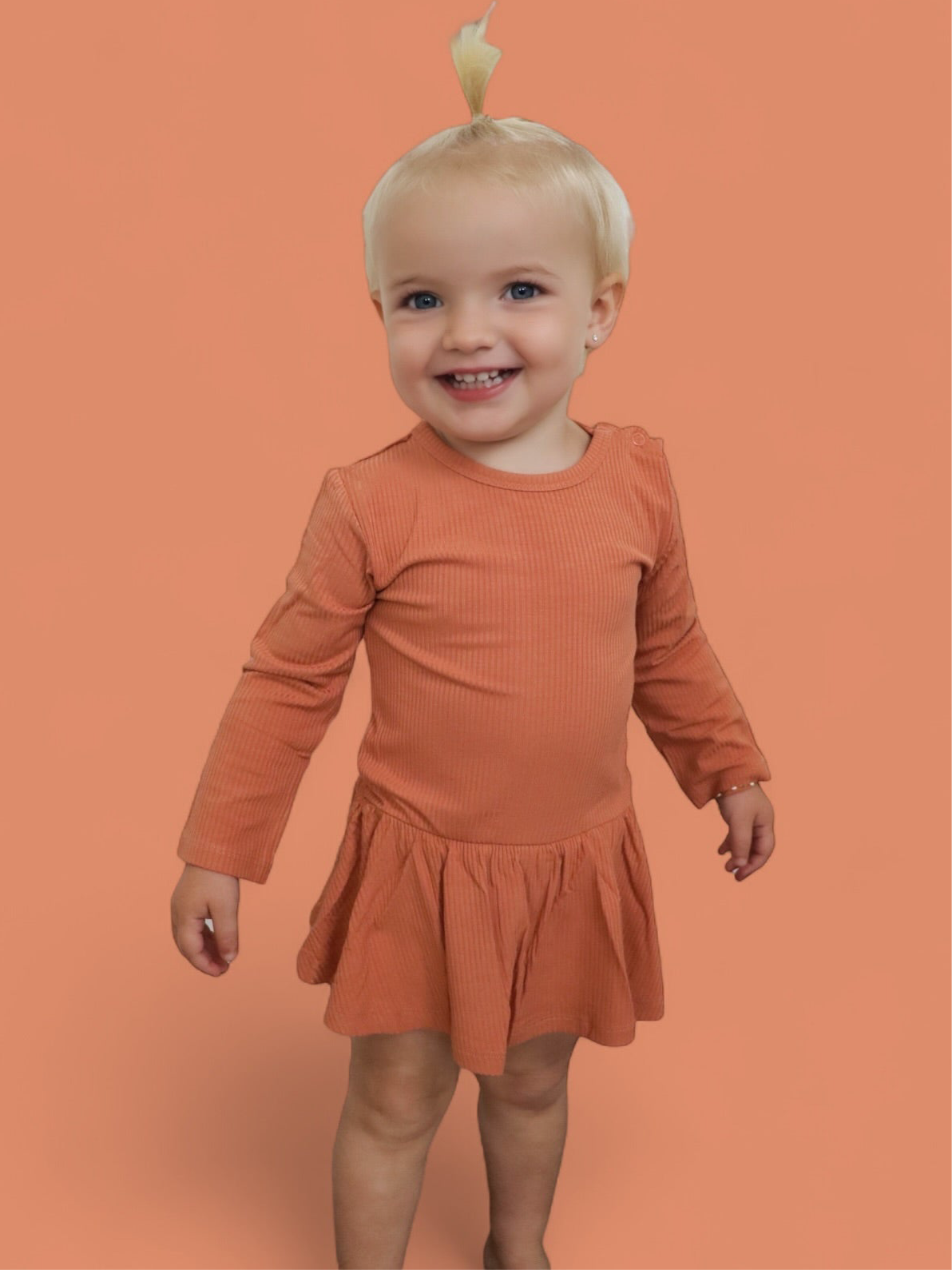 Simple, sweet, and made for fall fun—the Rust Long Sleeve Dream Bodysuit Dress is a cozy favorite for your little one. With a soft, twirl-worthy skirt and built-in bodysuit, it blends everyday comfort with timeless style. The rich rust hue adds a warm seasonal touch, making it perfect for pumpkin patch adventures, cozy cuddles, and picture-perfect moments.