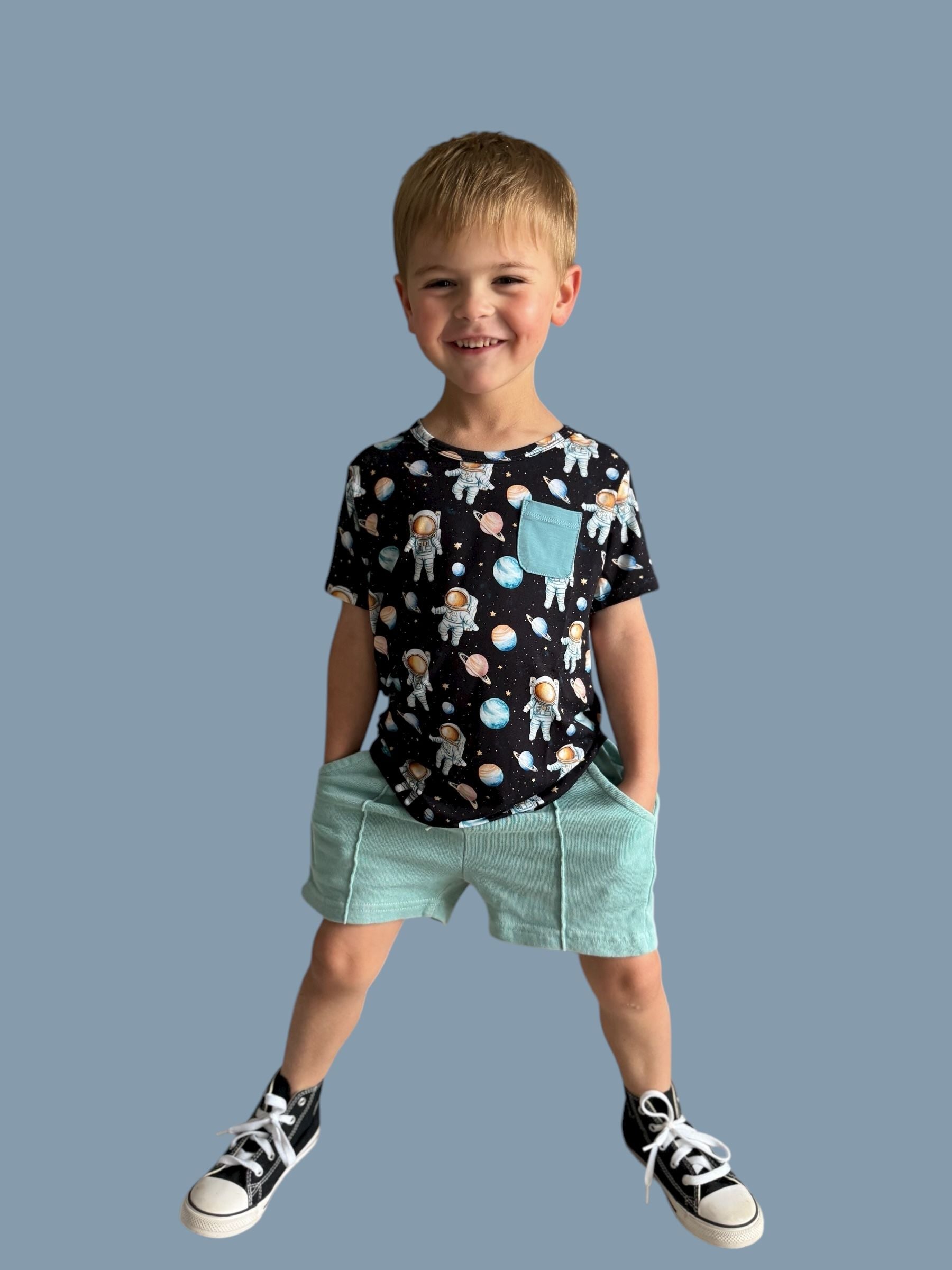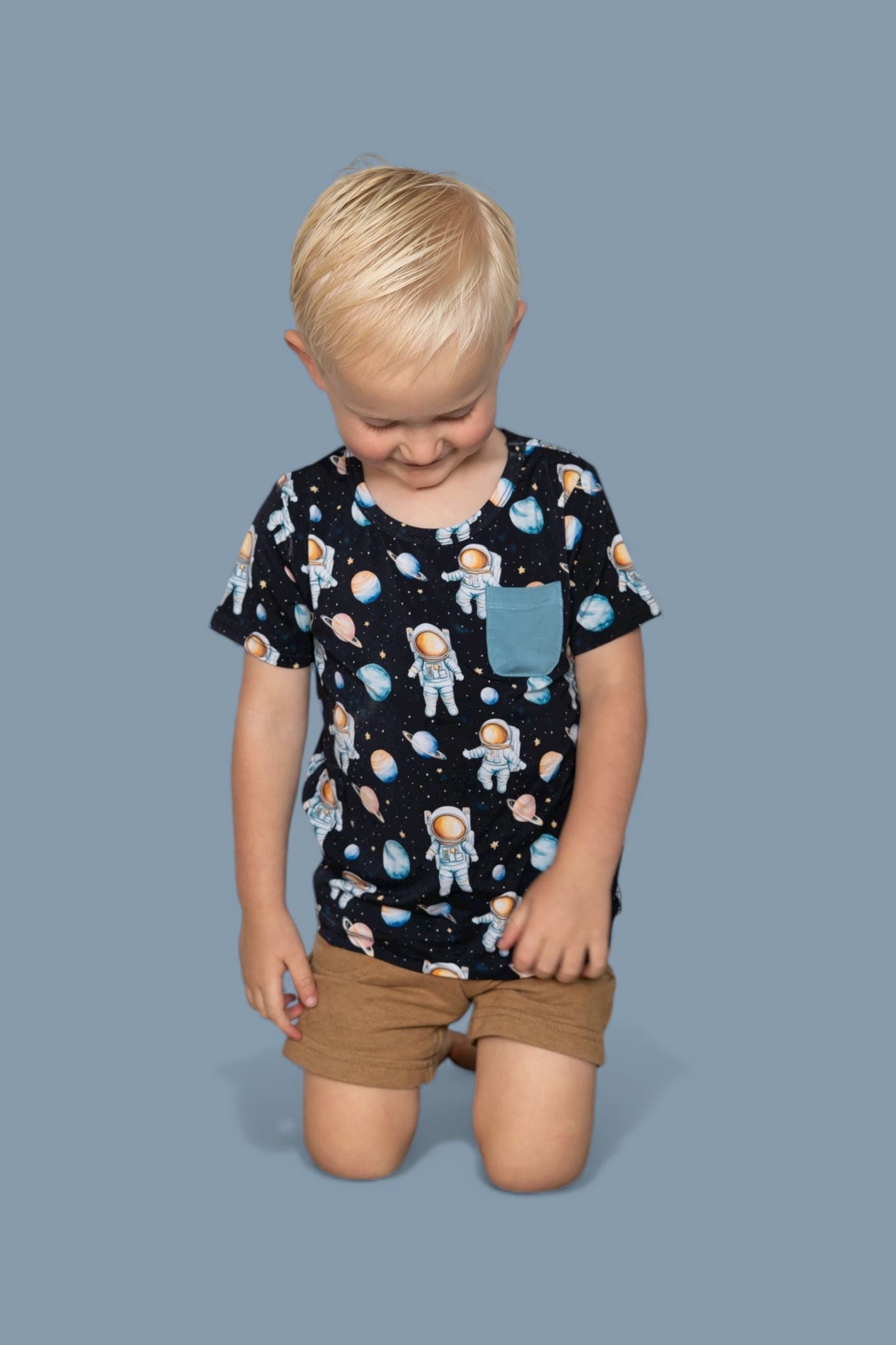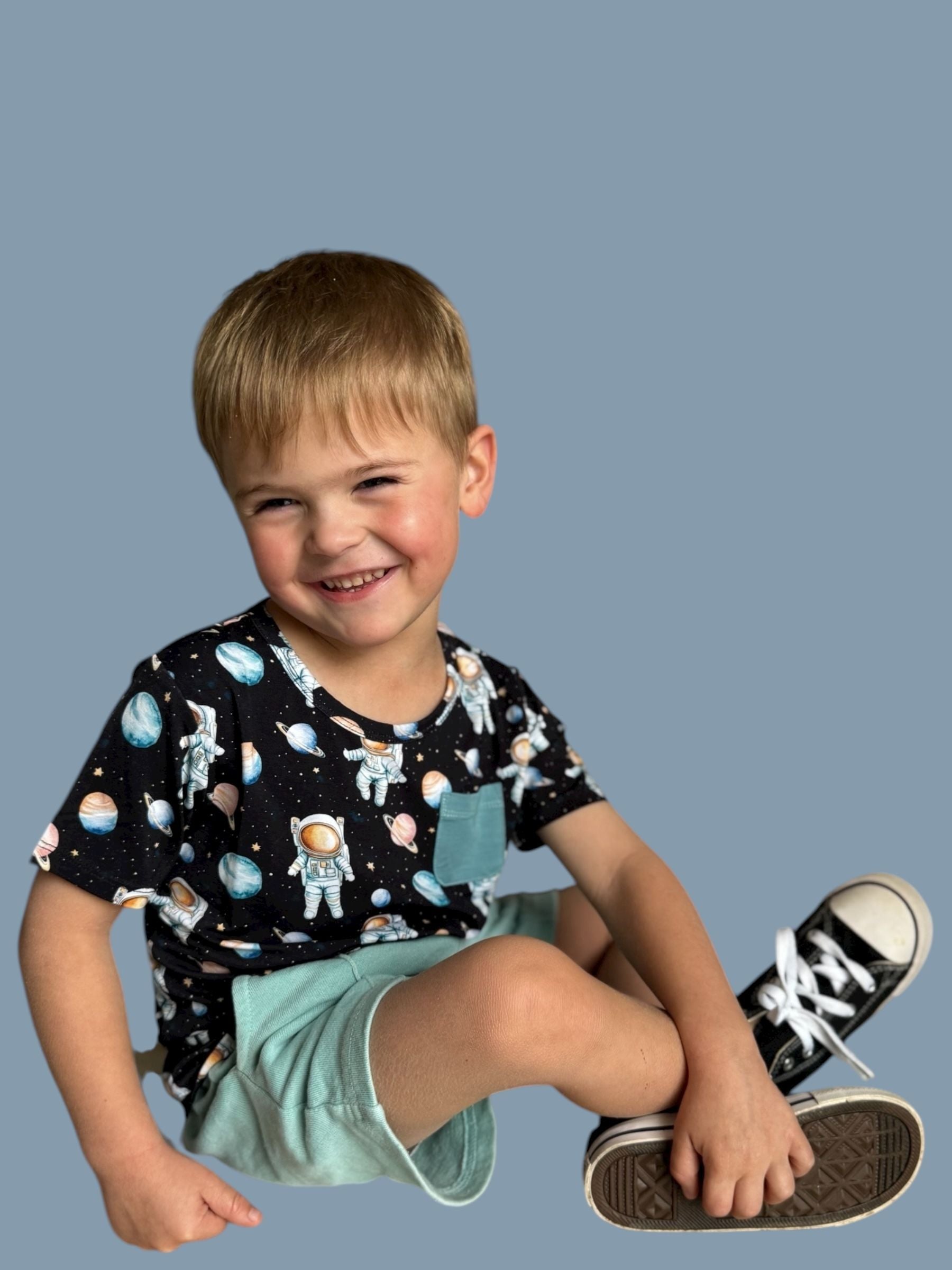 Our Moonwalk Magic Dream Pocket Tee brings a galaxy of fun to their everyday wardrobe! 🚀🌟 With a playful all-over print of astronauts, planets, and stars, this tee is perfect for little adventurers who love to dream big. The chest pocket adds a cool touch (and a handy spot for tiny treasures), while the soft fabric keeps things comfy for all-day exploring—whether they’re orbiting the playground or launching into imagination! 👩🚀🌌