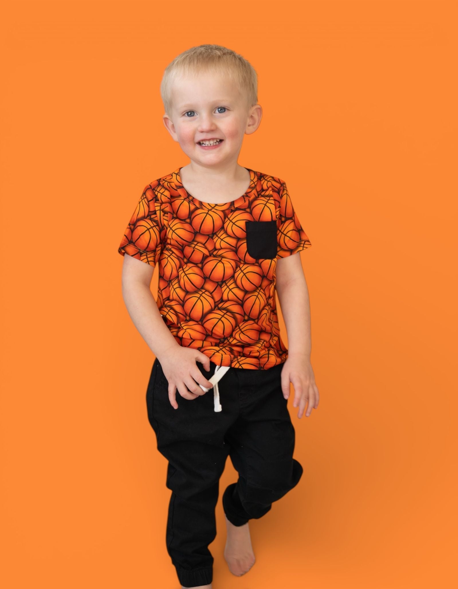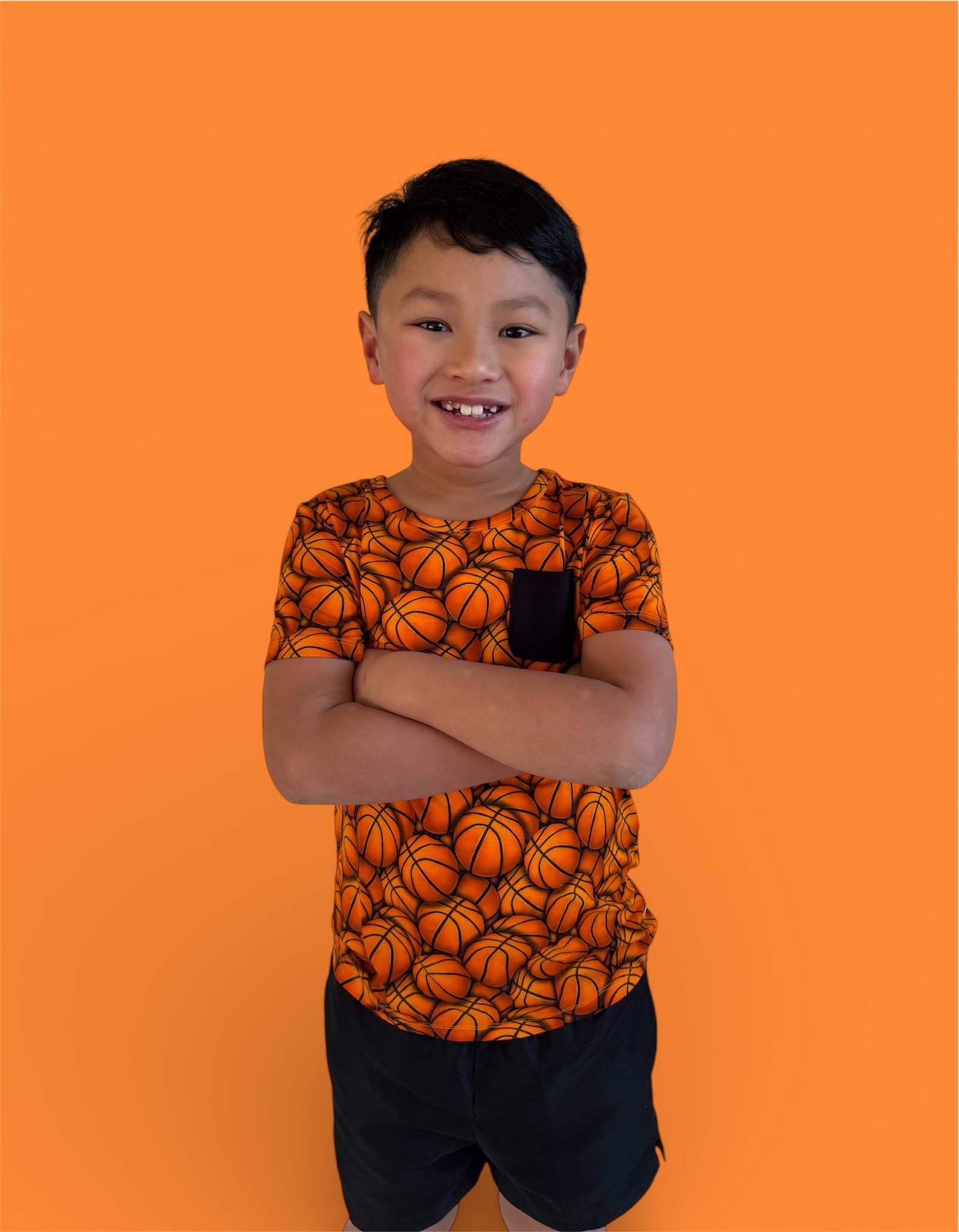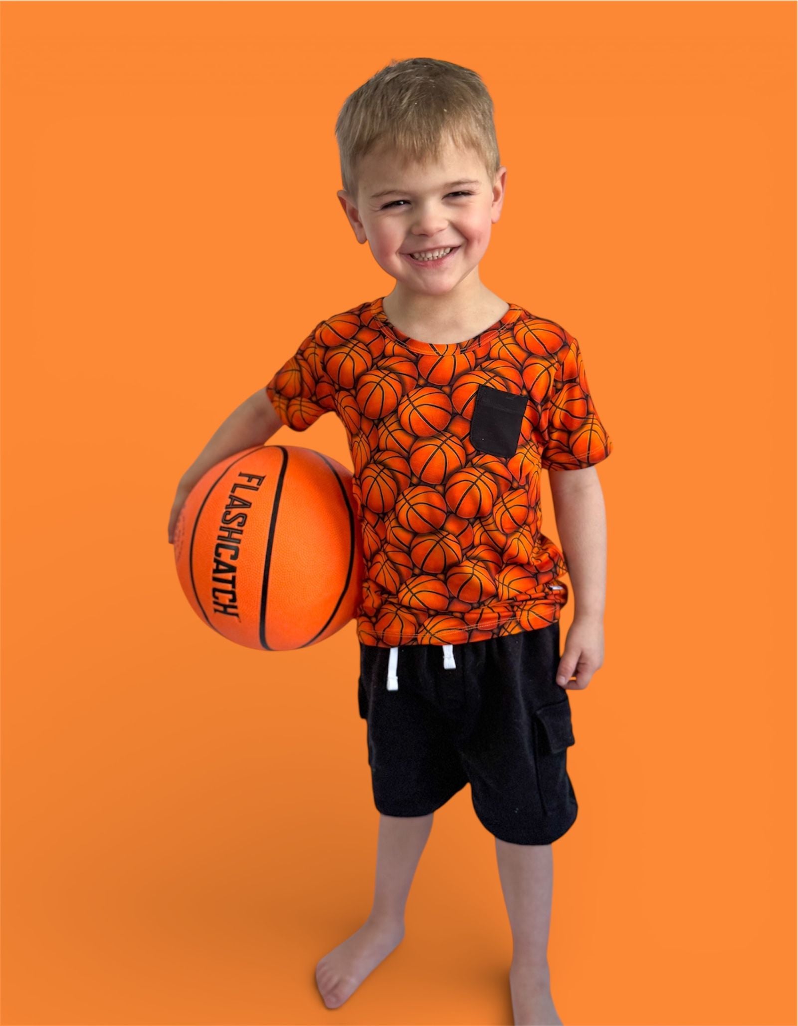 🏀 All-over basketball print with classic pocket detail