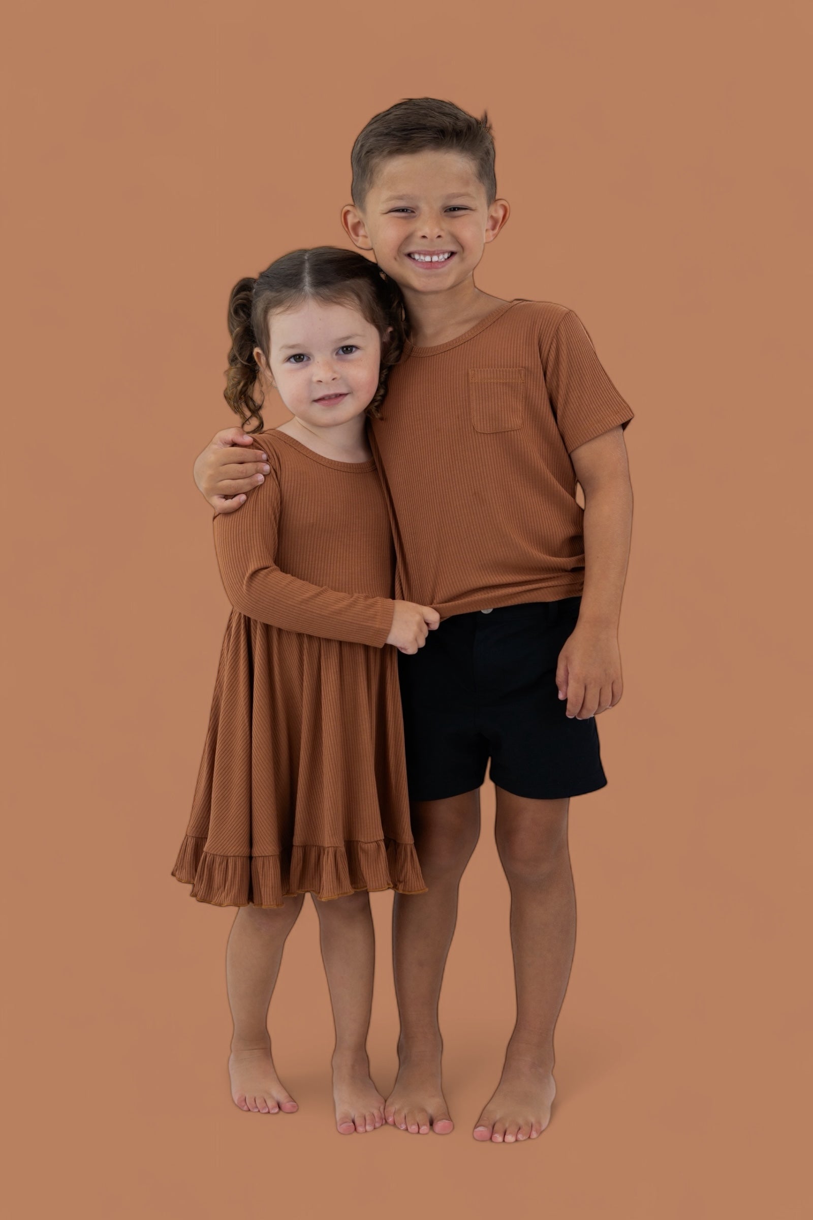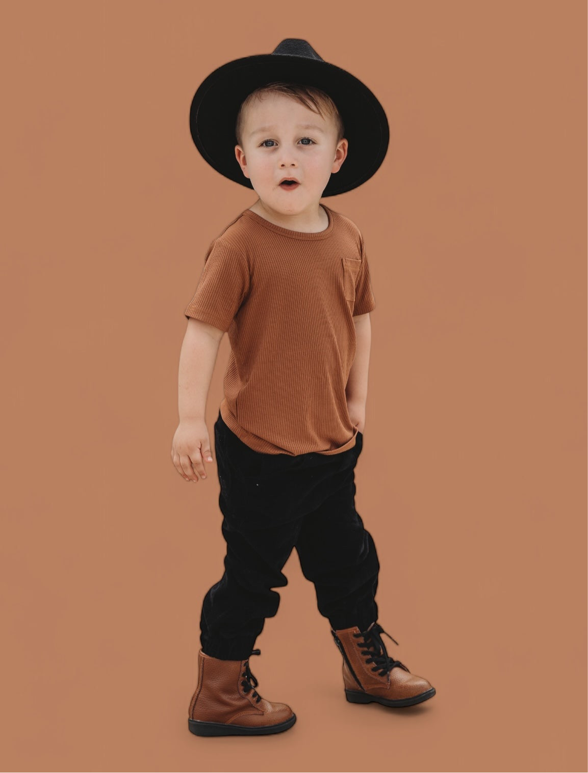 Easy, effortless, and oh-so-soft—the Espresso Dream Pocket Tee is the everyday essential your little one will live in. Made from our signature buttery-soft fabric in a rich espresso hue, this tee features a classic crewneck, relaxed fit, and a cute little chest pocket for added charm. Perfect for playtime, lounge time, and everywhere in between!