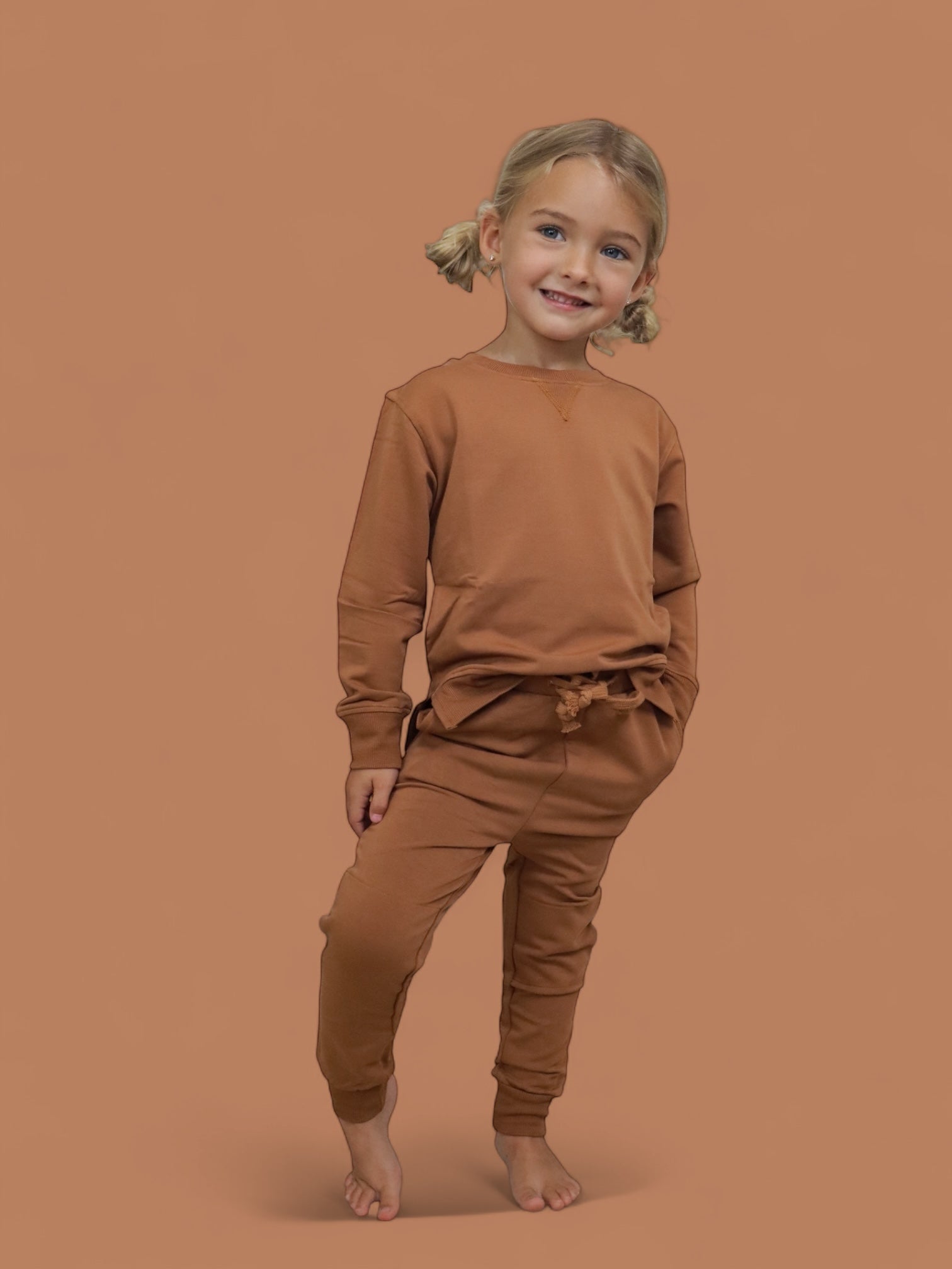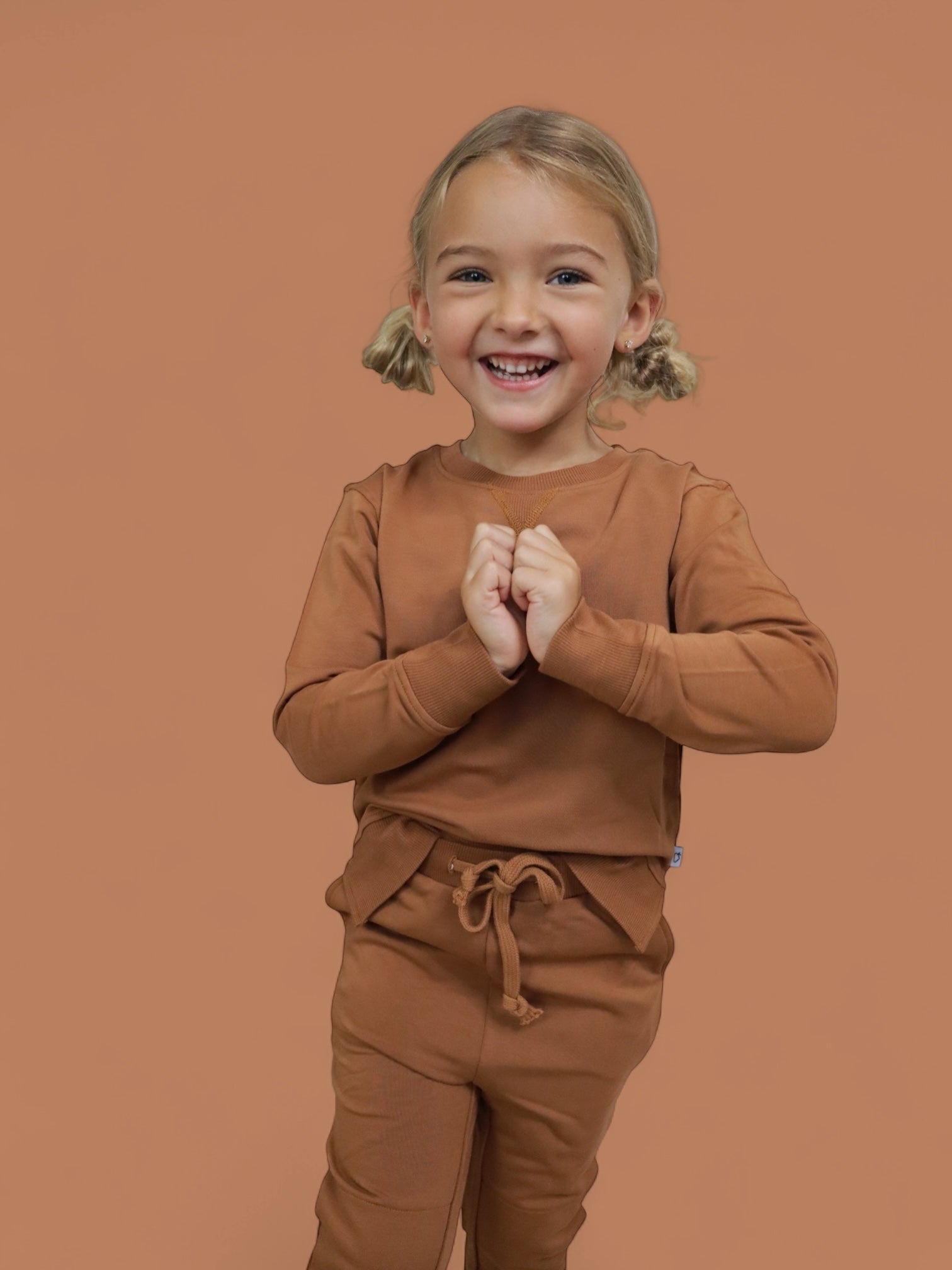 Snuggle-ready and full of style, the Espresso Dream Pullover for kids is the perfect everyday layer! Made from buttery-soft fabric in a warm, chocolatey tone, this pullover keeps your little one comfy from playdates to storytime. With a relaxed fit and ribbed cuffs, it’s made for easy movement and extra cozy cuddles.