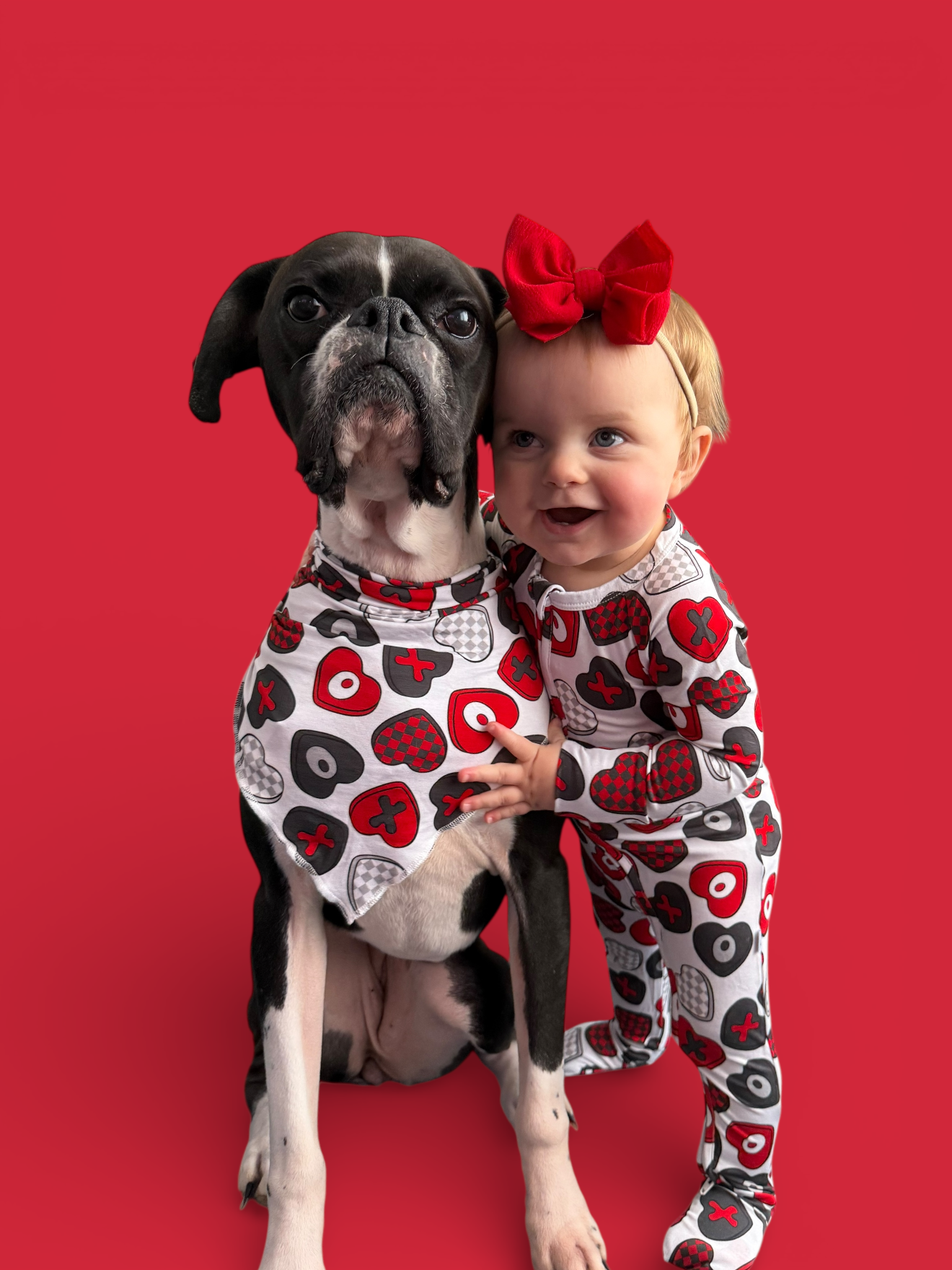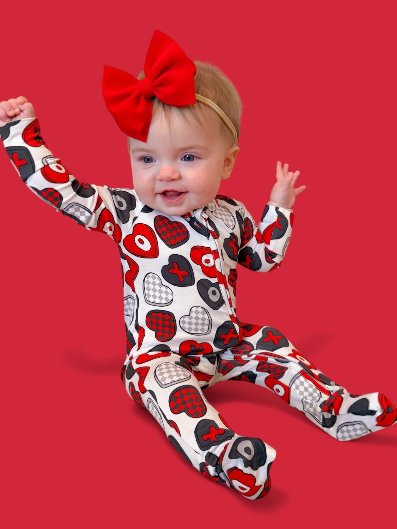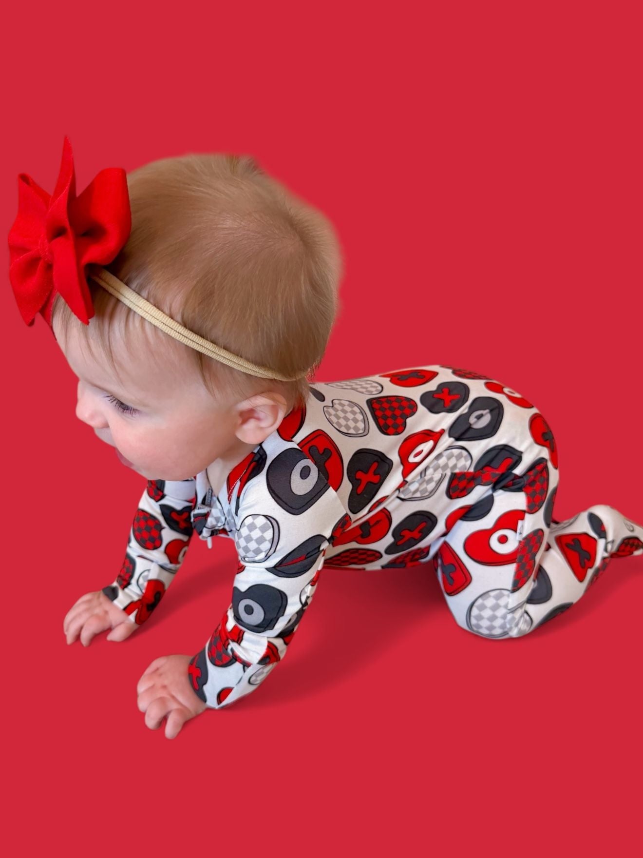 Playful hearts, cozy dreams! The Cross My Heart Dream Romper features a fun all-over print of hearts and X’s in shades of red, black, and white. Made from our signature buttery-soft bamboo fabric, it’s stretchy, breathable, and perfect for cuddles, naps, and playtime. With a two-way zipper for quick changes and a snug fit for all-day comfort, it’s as practical as it is adorable.