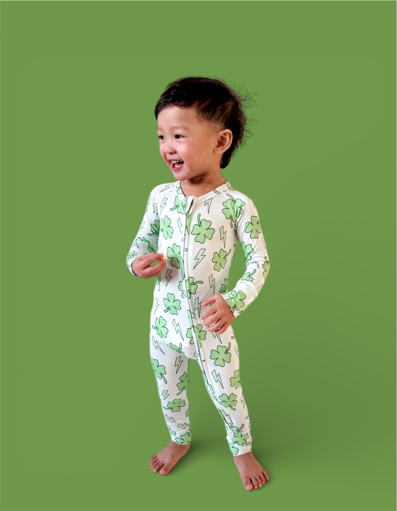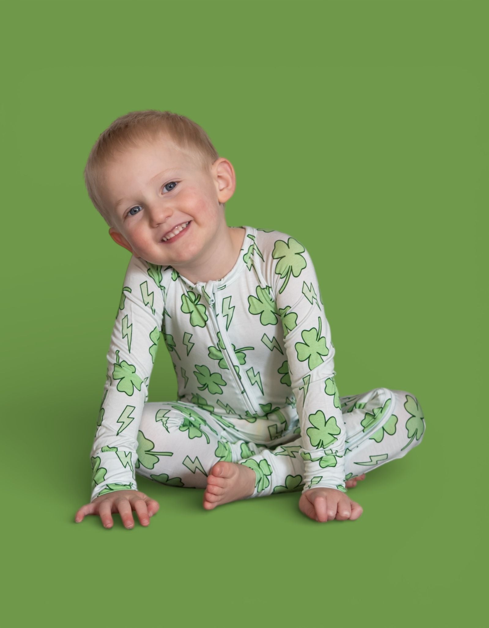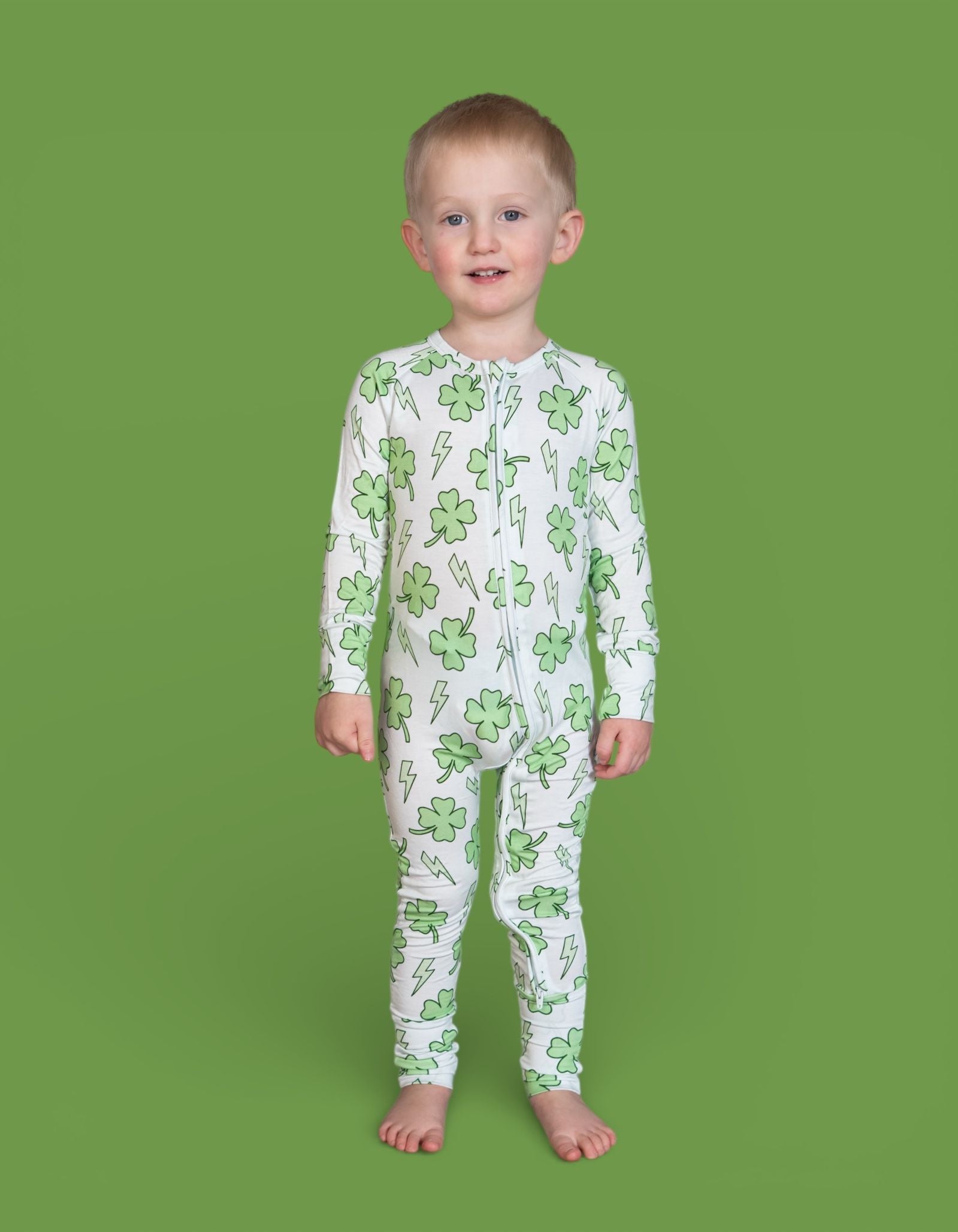 Bright, bold, and full of lucky energy! The Shamrock Shock Dream Romper features an all-over mix of vibrant shamrocks and lightning bolts, creating the perfect festive look for St. Patrick’s Day and beyond. Soft, stretchy, and designed for easy movement, this romper keeps your little one comfy from playtime to naptime while bringing all the fun, spirited vibes. 💚