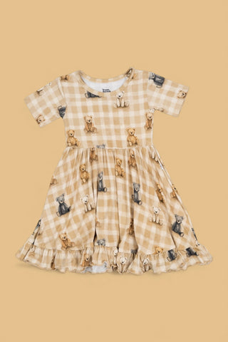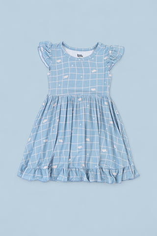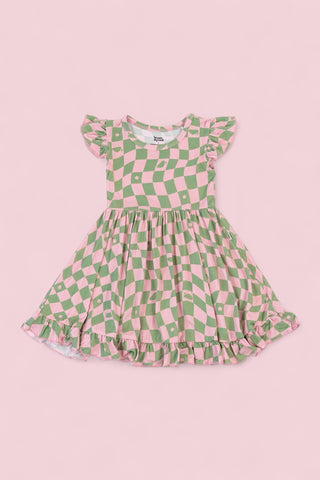 Dream Big Little Co x CoComelon JJ RAINBOW CHECKERS SHORT SLEEVE DREAM RUFFLE DRESS