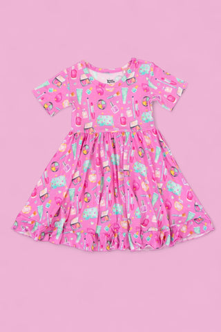 Dream Big Little Co x CoComelon SPRINGTIME MELON SHORT SLEEVE DREAM RUFFLE DRESS