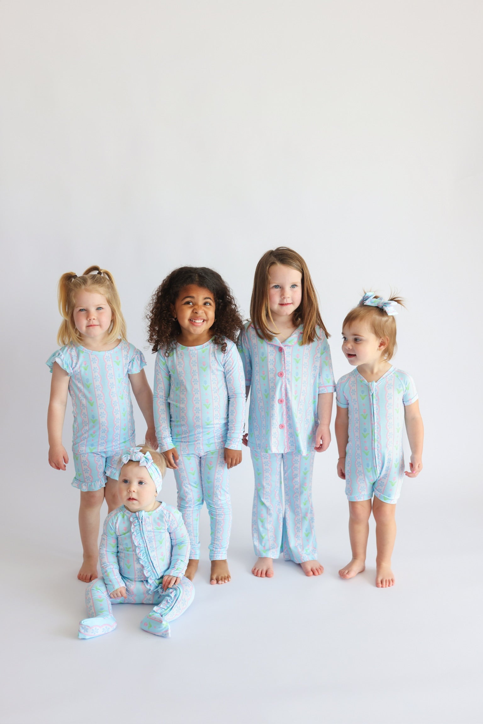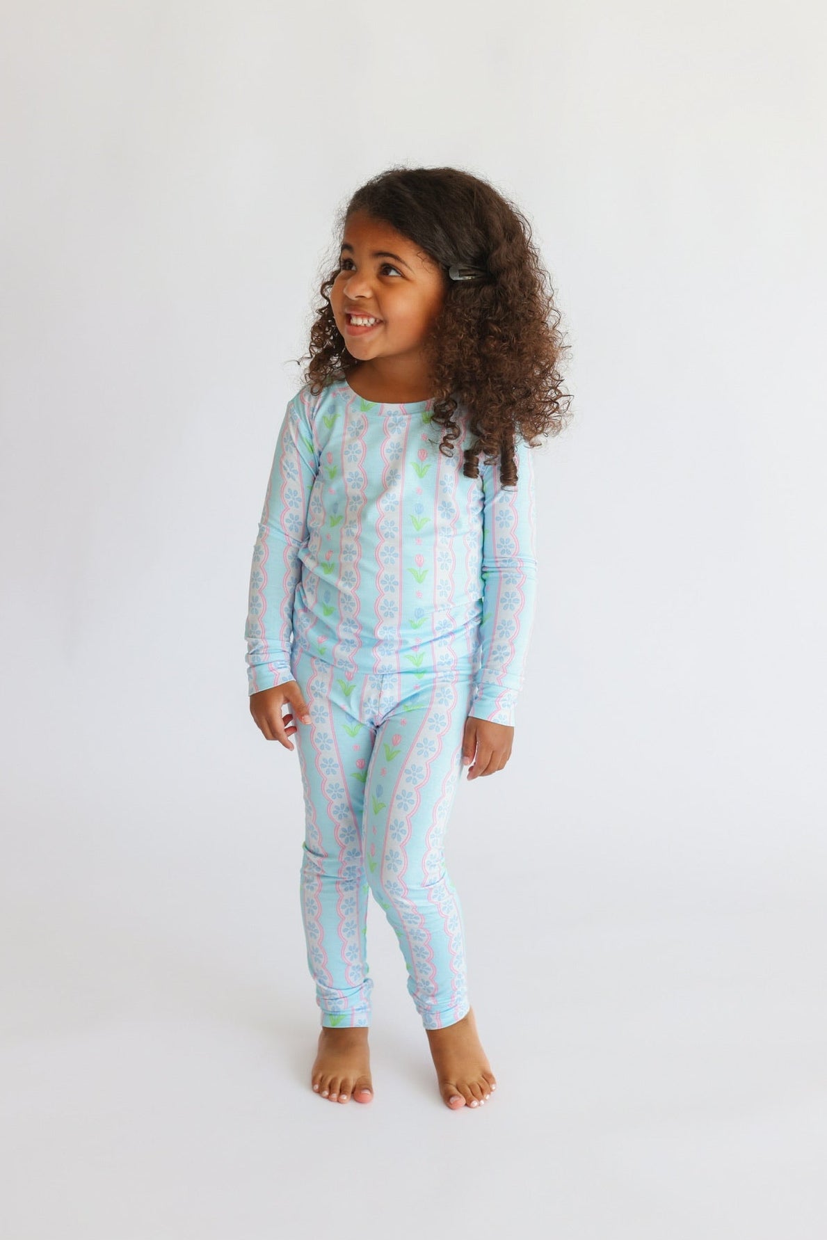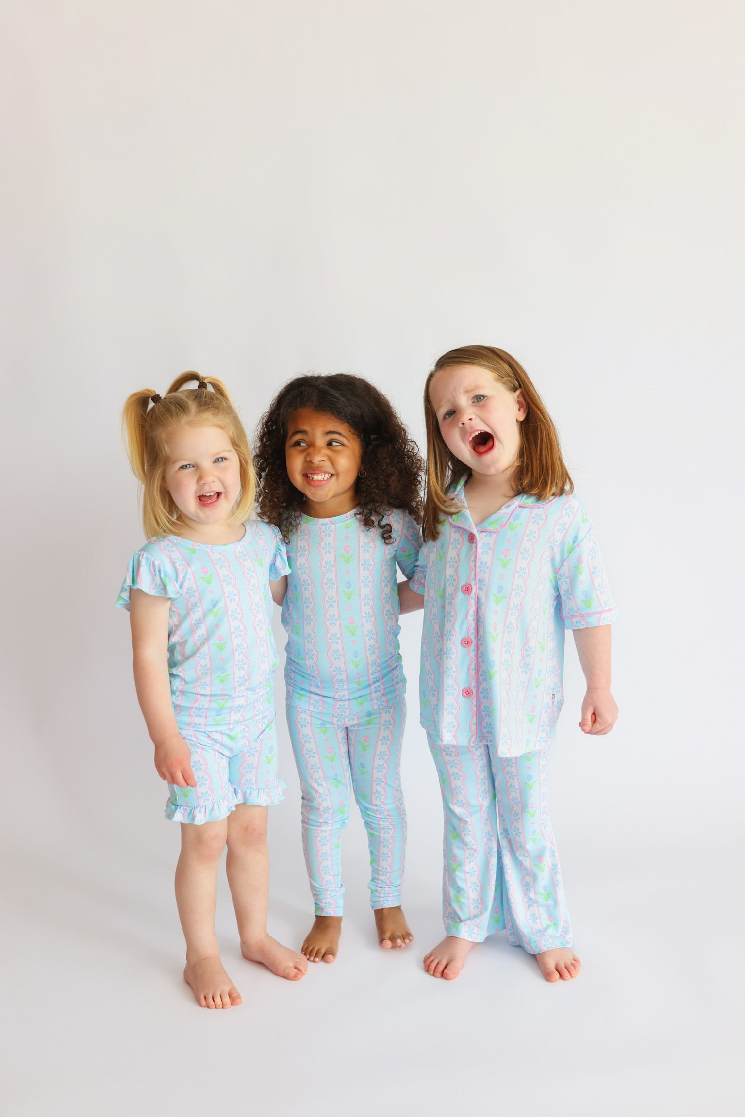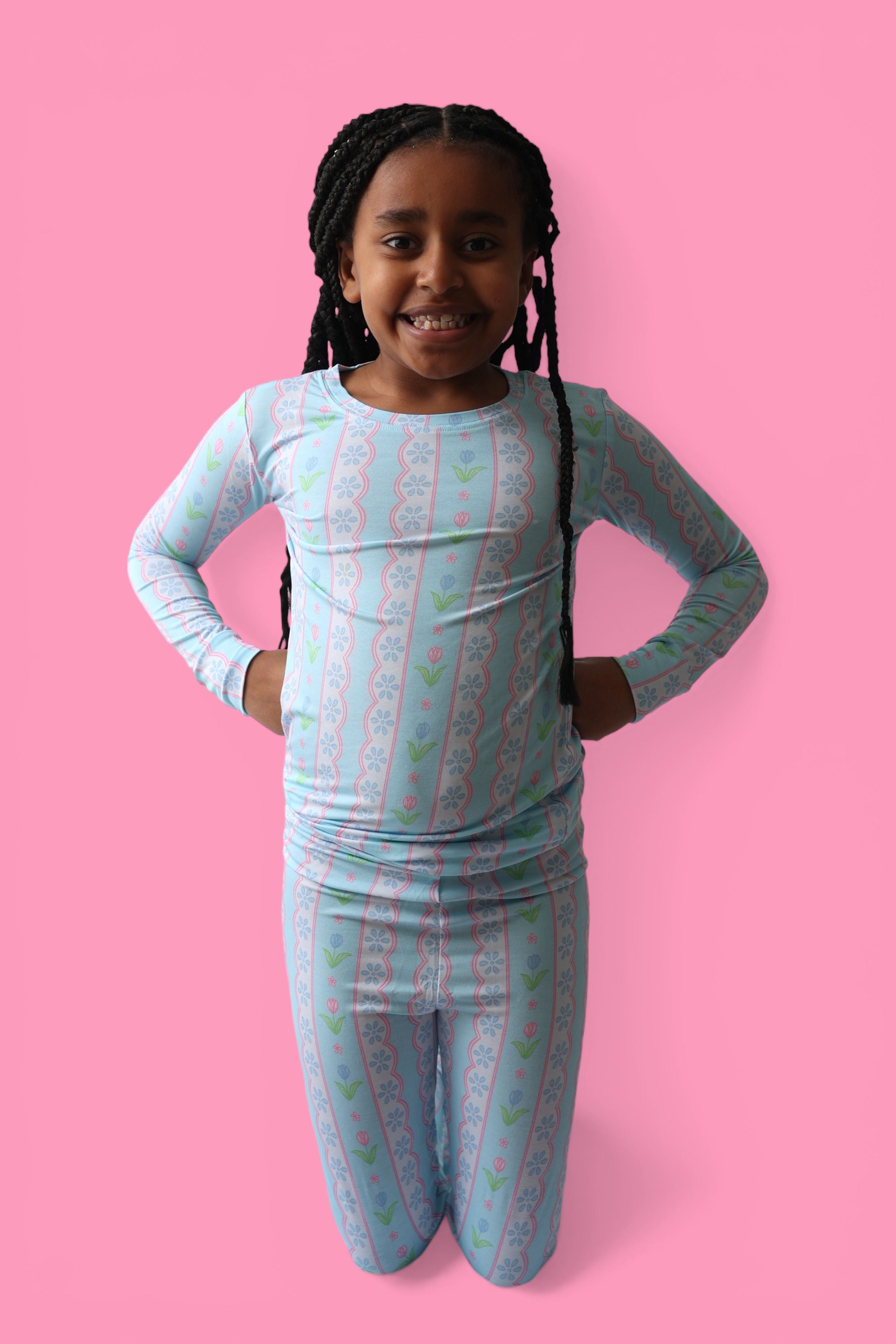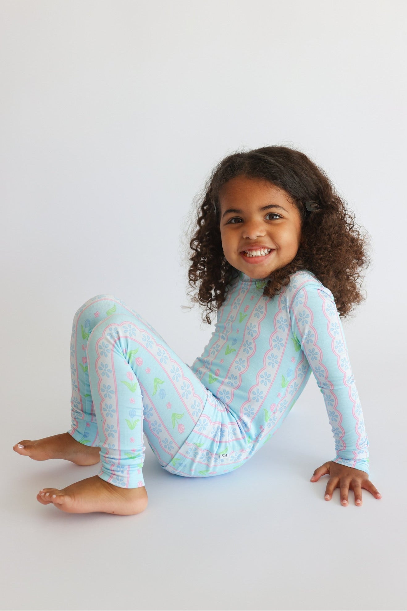 The Whimsy Tulip Dream Set brings soft florals and cozy charm to your little one’s everyday routine. Featuring a delicate tulip stripe print, this two-piece set is made from our signature buttery-soft bamboo fabric for a breathable, gentle feel that’s perfect for play, lounging, and sleep.