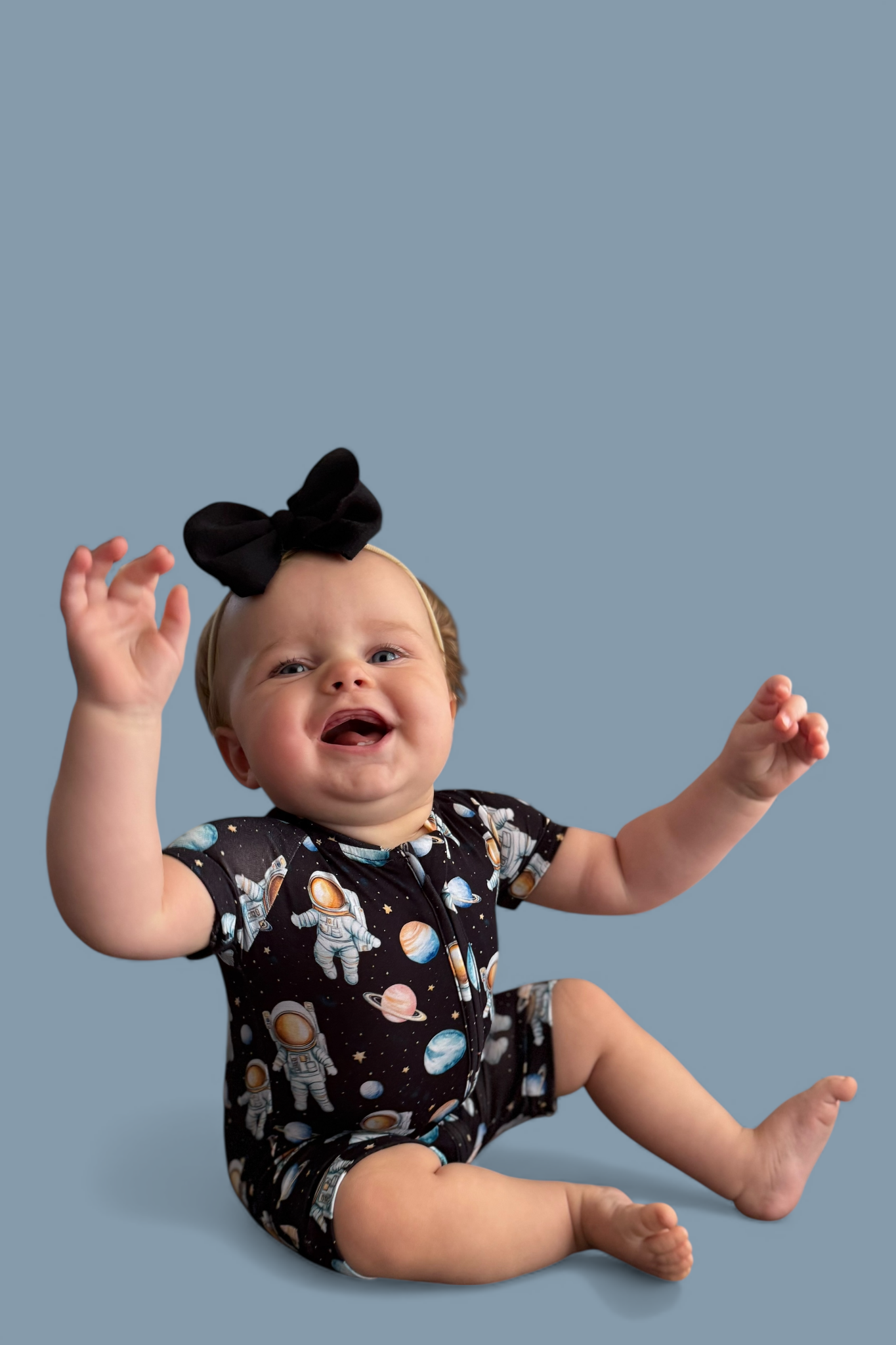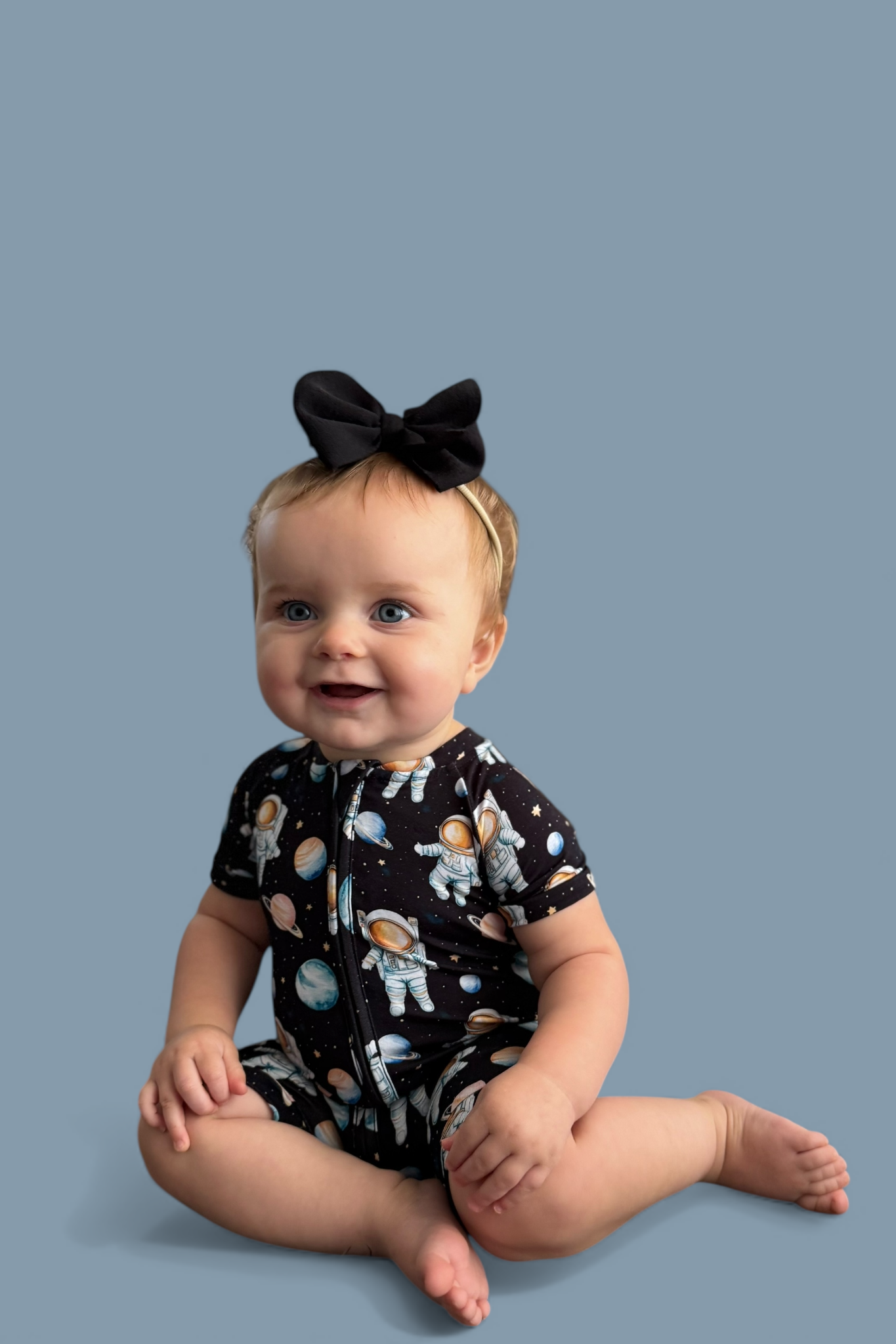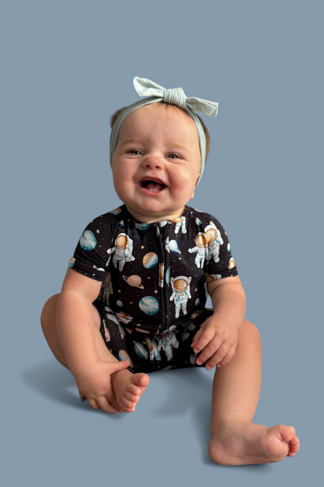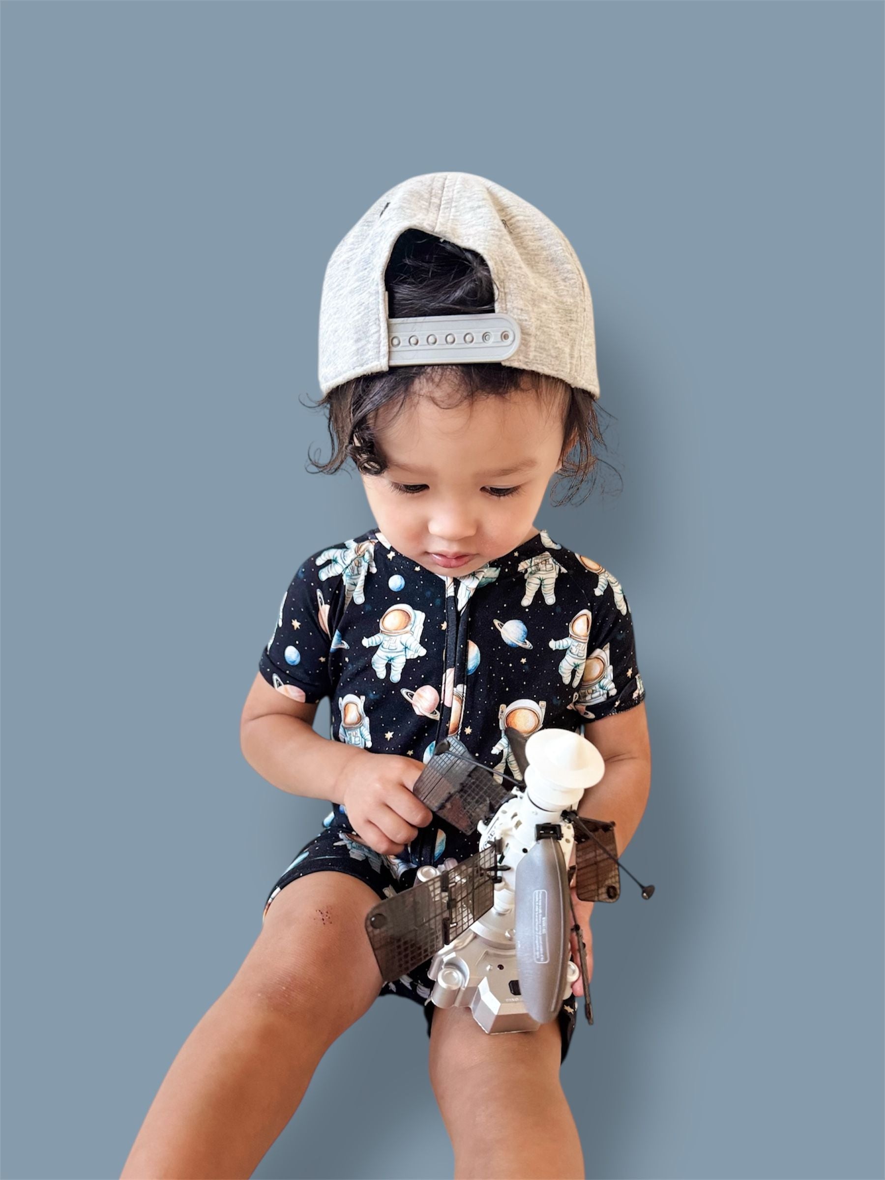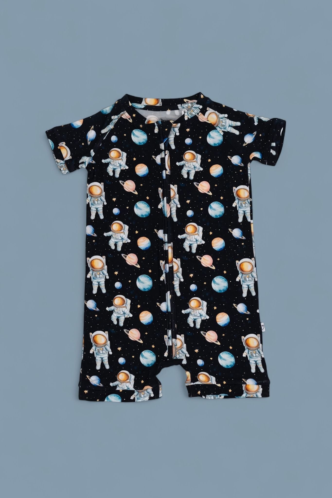 The Moonwalk Magic Dream Shortie is perfect for little astronauts ready for out-of-this-world adventures—day or night! 🌙🪐 Featuring a fun, all-over print of planets, stars, and spacewalking astronauts, this one-piece has short sleeves, short legs, and a full-length zipper for easy on-and-off. Made from soft, stretchy fabric for ultimate comfort, it’s the go-to outfit for warm nights, nap time missions, and cosmic playtime fun! 🌌👶