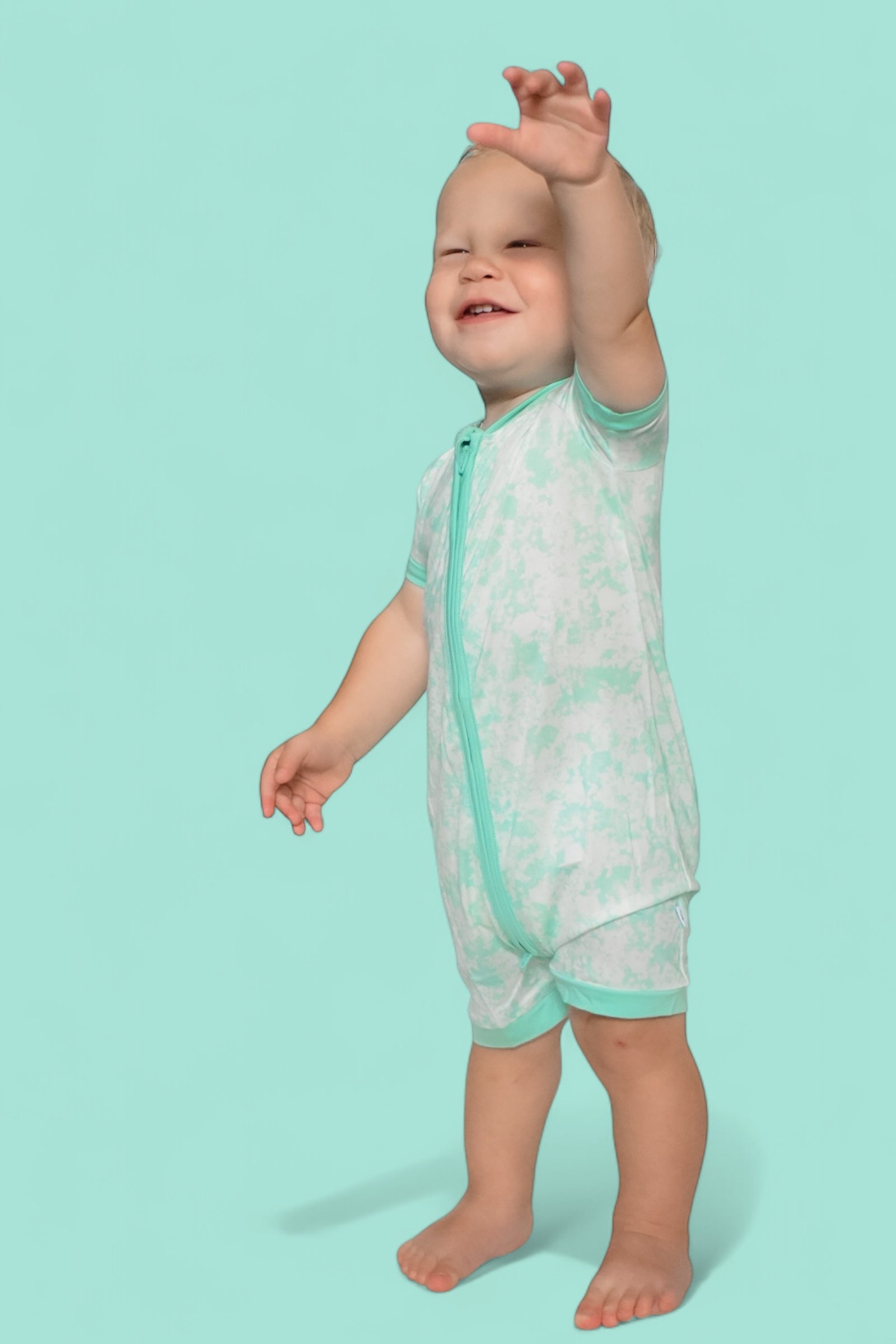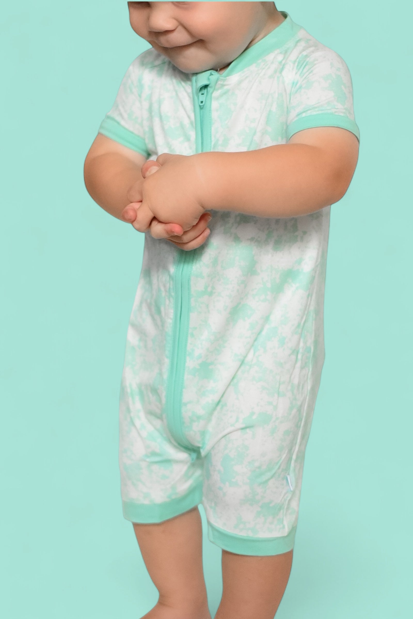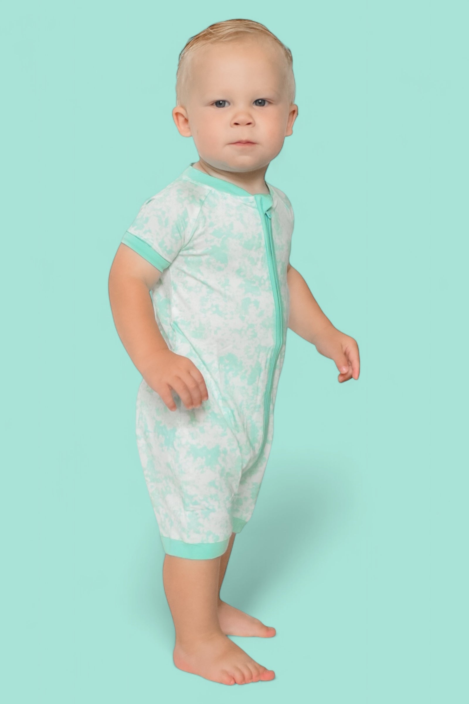 Meet the Seafoam Dream Shortie—your go-to romper for warm-weather comfort and effortless style. With its relaxed seafoam green and white tie dye pattern, this shortie brings soft coastal vibes to your little one’s wardrobe.