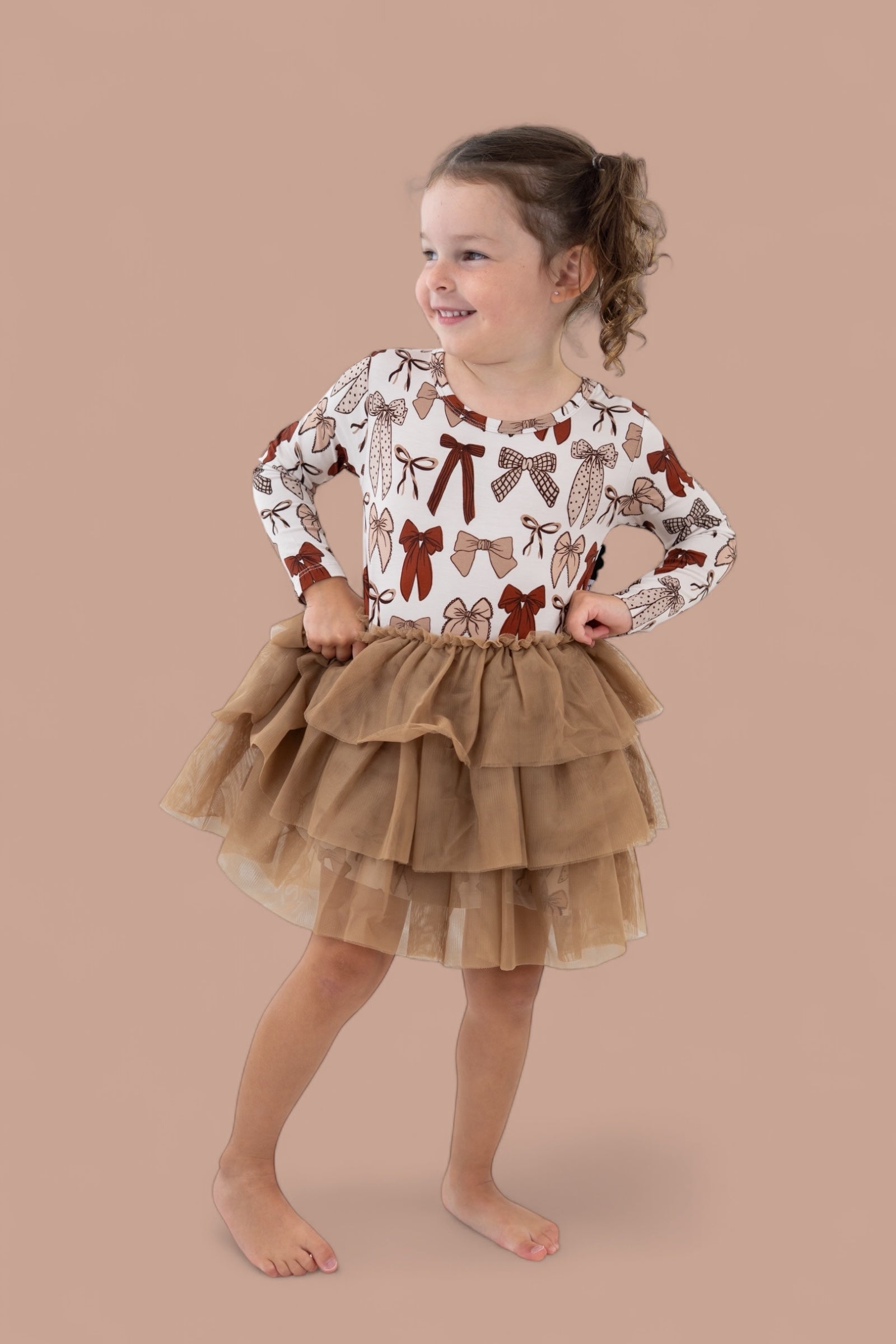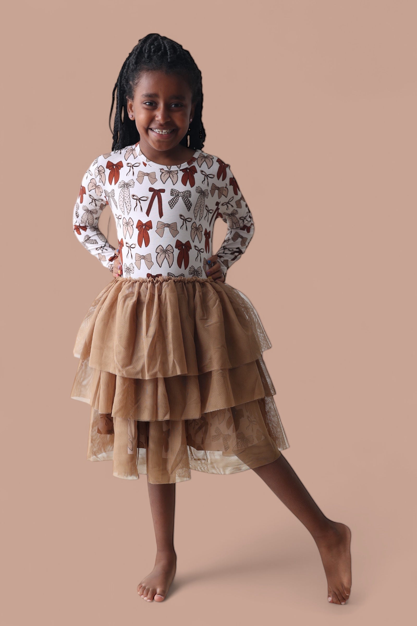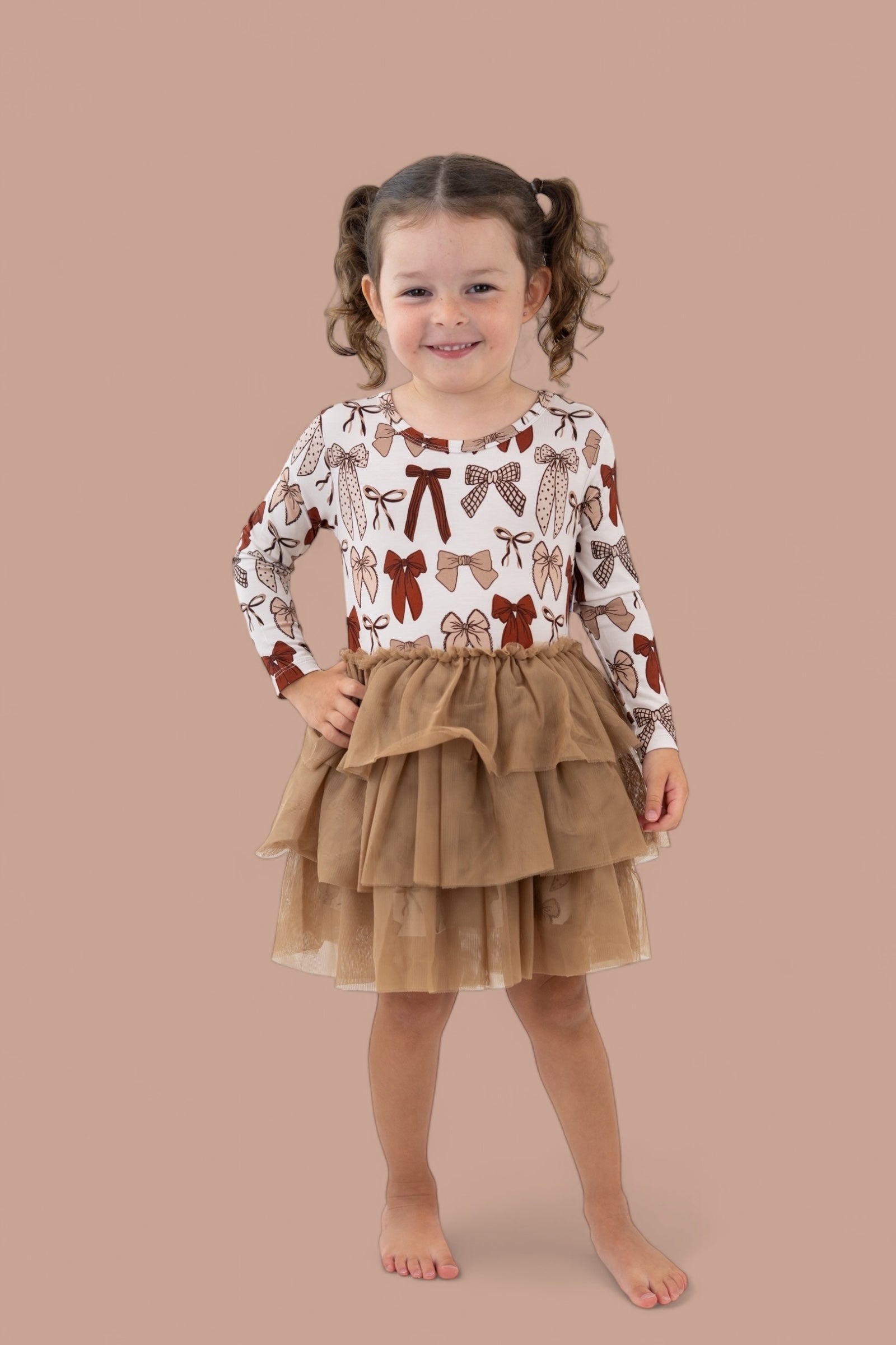 Let your little one twirl through the season in our Fall Fancy Long Sleeve Dream Tutu Dress! Featuring a sweet array of bows in rich autumn tones and a soft, flowy tulle skirt, this dress is made for all things fall—family photos, festive outings, and cozy celebrations. Crafted from our buttery-soft bamboo fabric, it’s equal parts comfy and charming, with just the right amount of fancy flair!
