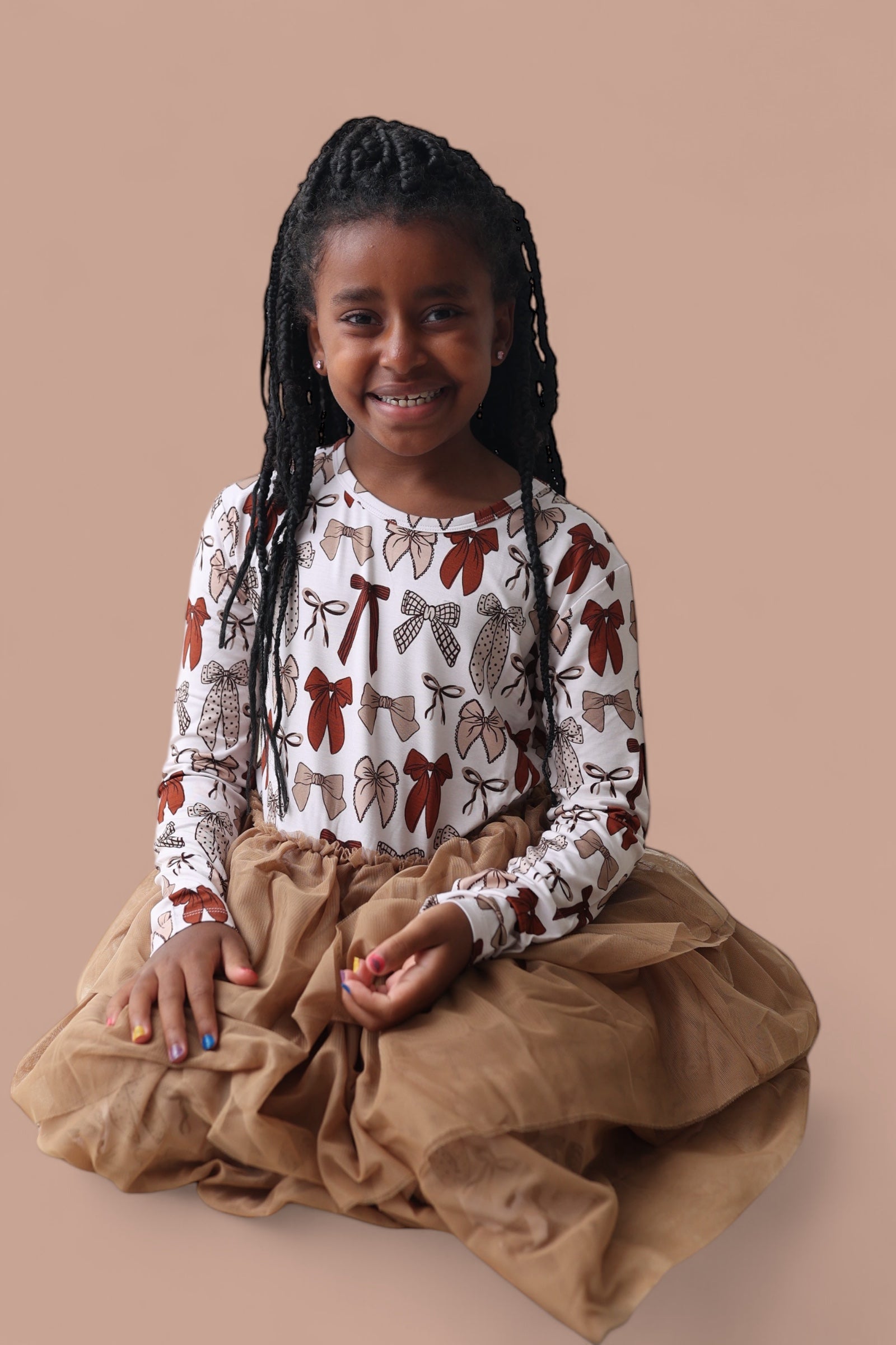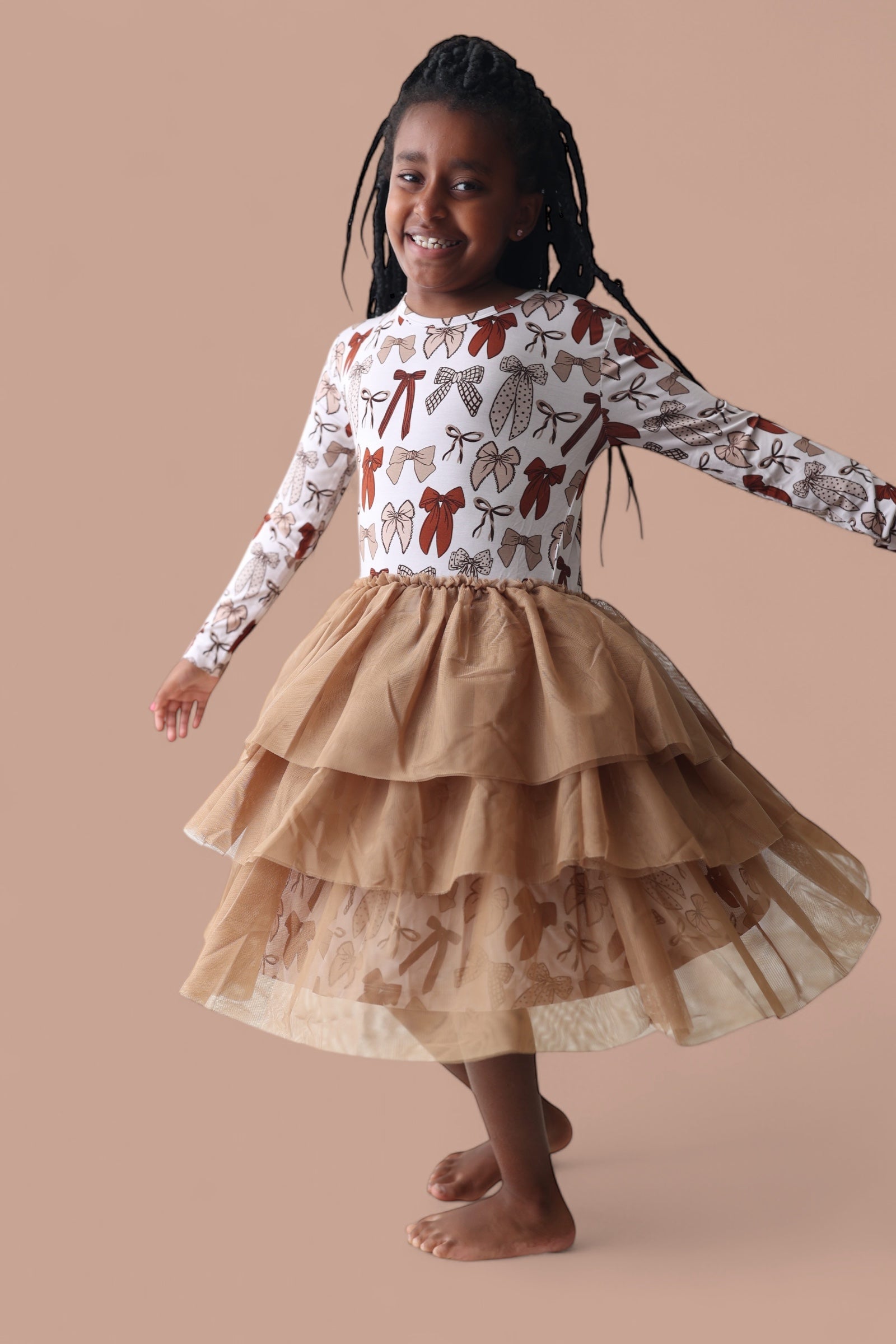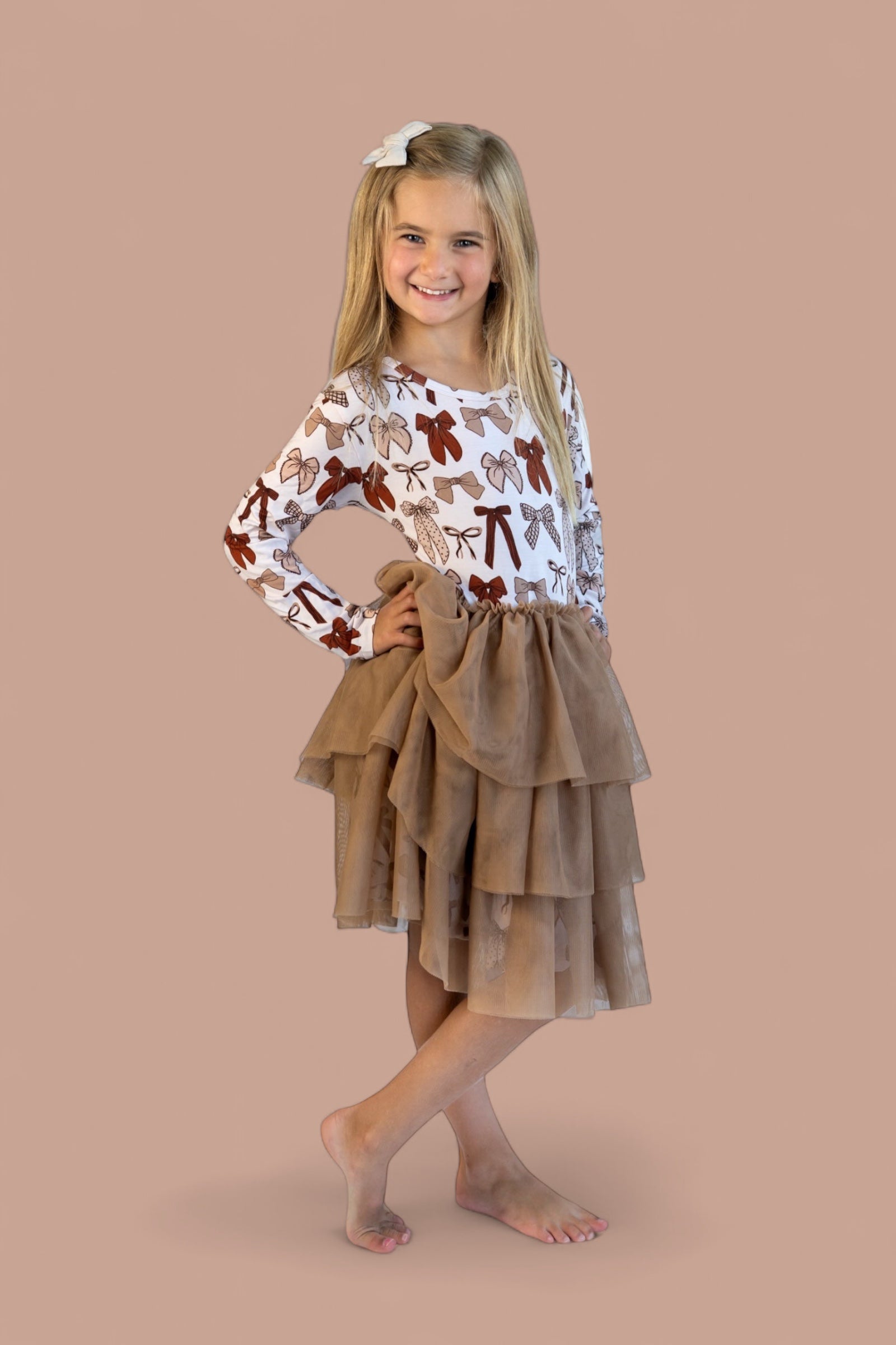 Let your little one twirl through the season in our Fall Fancy Long Sleeve Dream Tutu Dress! Featuring a sweet array of bows in rich autumn tones and a soft, flowy tulle skirt, this dress is made for all things fall—family photos, festive outings, and cozy celebrations. Crafted from our buttery-soft bamboo fabric, it’s equal parts comfy and charming, with just the right amount of fancy flair!