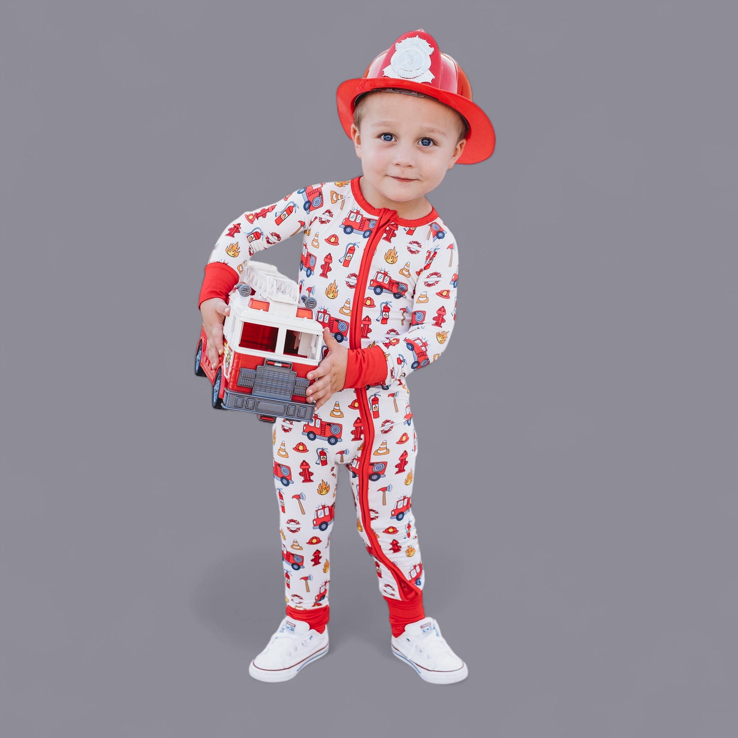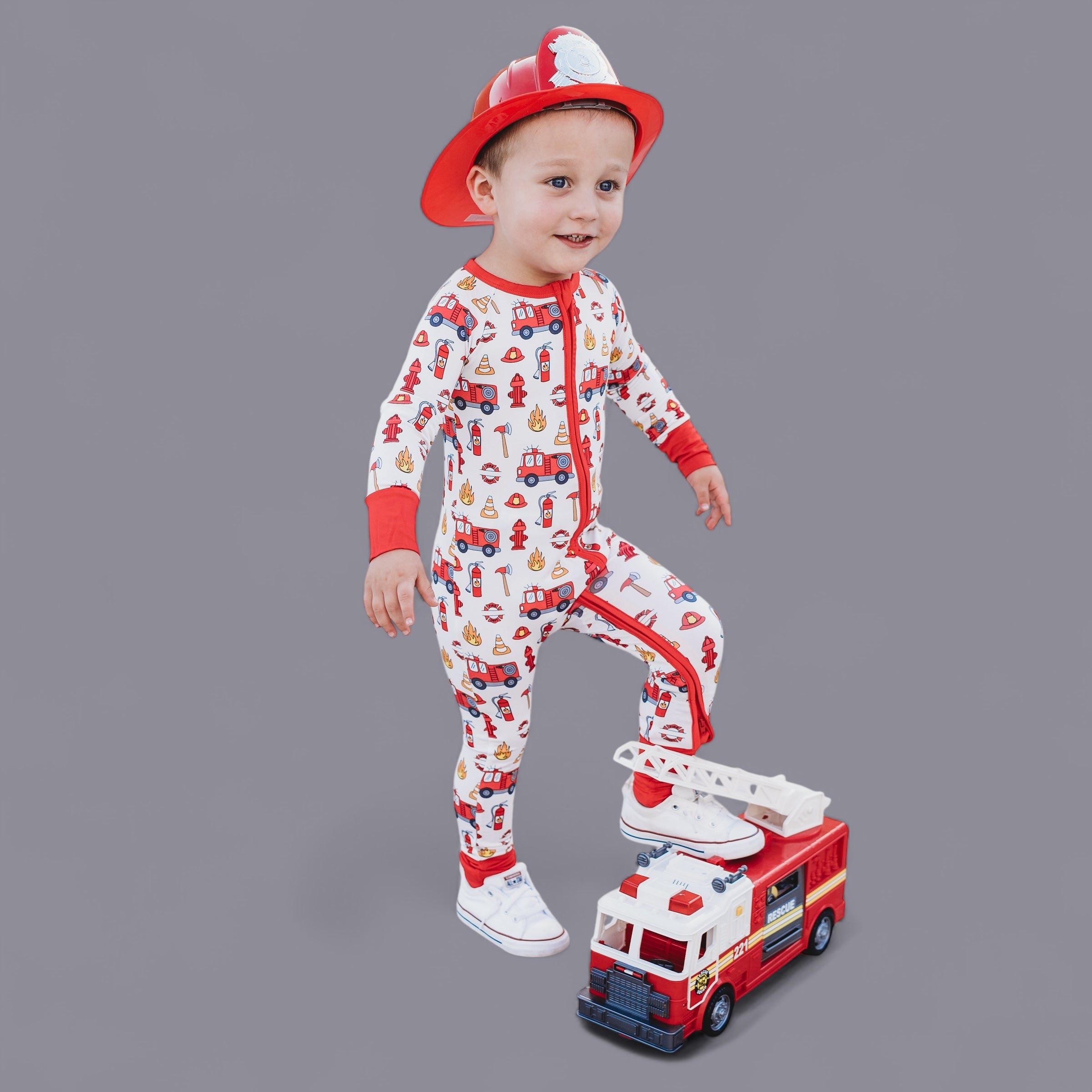 Sound the alarm for cozy comfort! The Firehouse Heroes Dream Romper is ready for action.