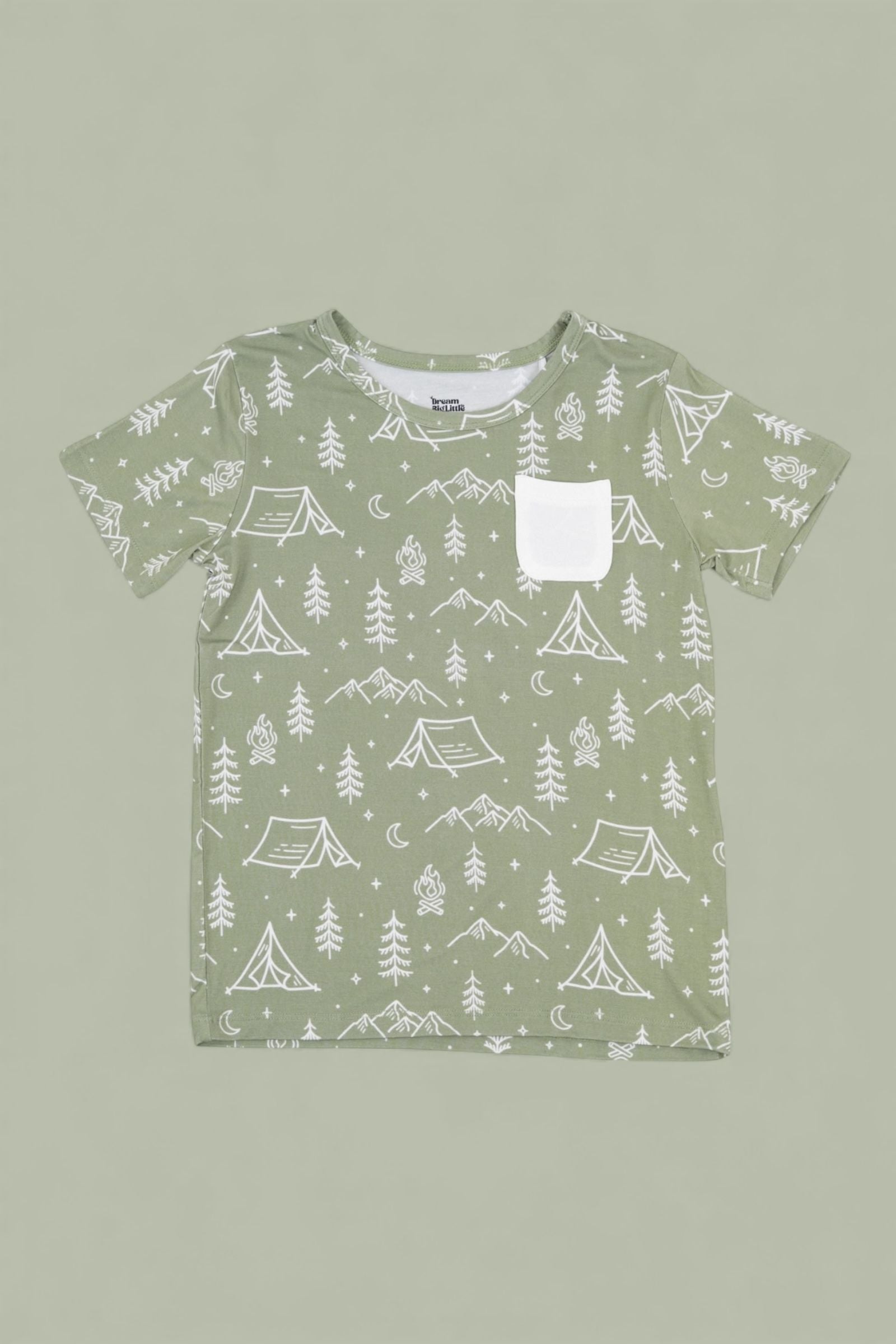 Everyday comfort meets adventure style! The Wilderness Wonder Dream Pocket Tee features a playful outdoors print of tents, mountains, campfires, and stars—bringing cozy camping vibes wherever your little one goes. Made from our buttery-soft bamboo fabric and finished with a functional chest pocket, it’s perfect for pairing with joggers, shorts, or layering for year-round wear.