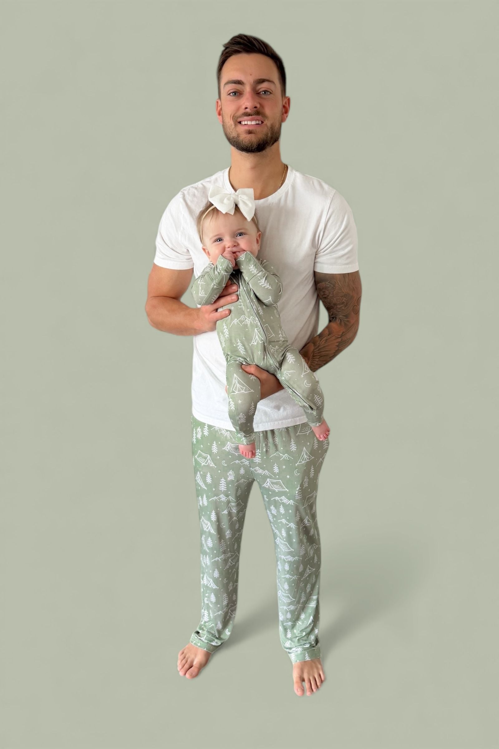 • 🌲 Outdoors-inspired print with tents, trees, & mountains
