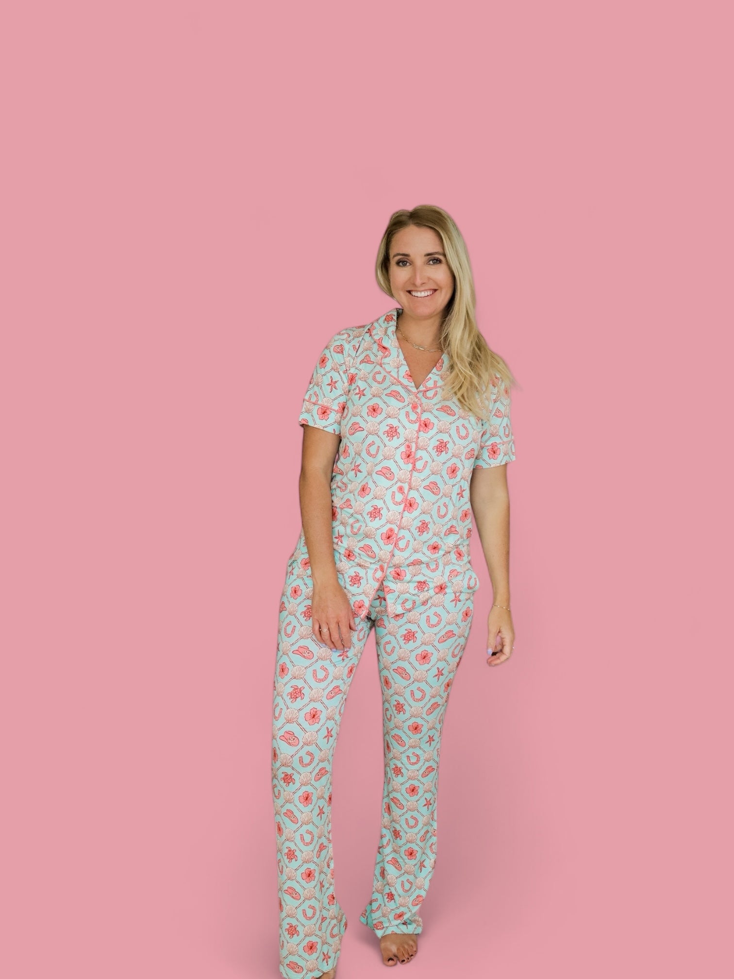 Whether you're chasing littles or soaking up a slow sunrise, the Coastal Cowgirl Women’s Relaxed Flare Dream Set brings breezy cowgirl vibes to every cozy moment.